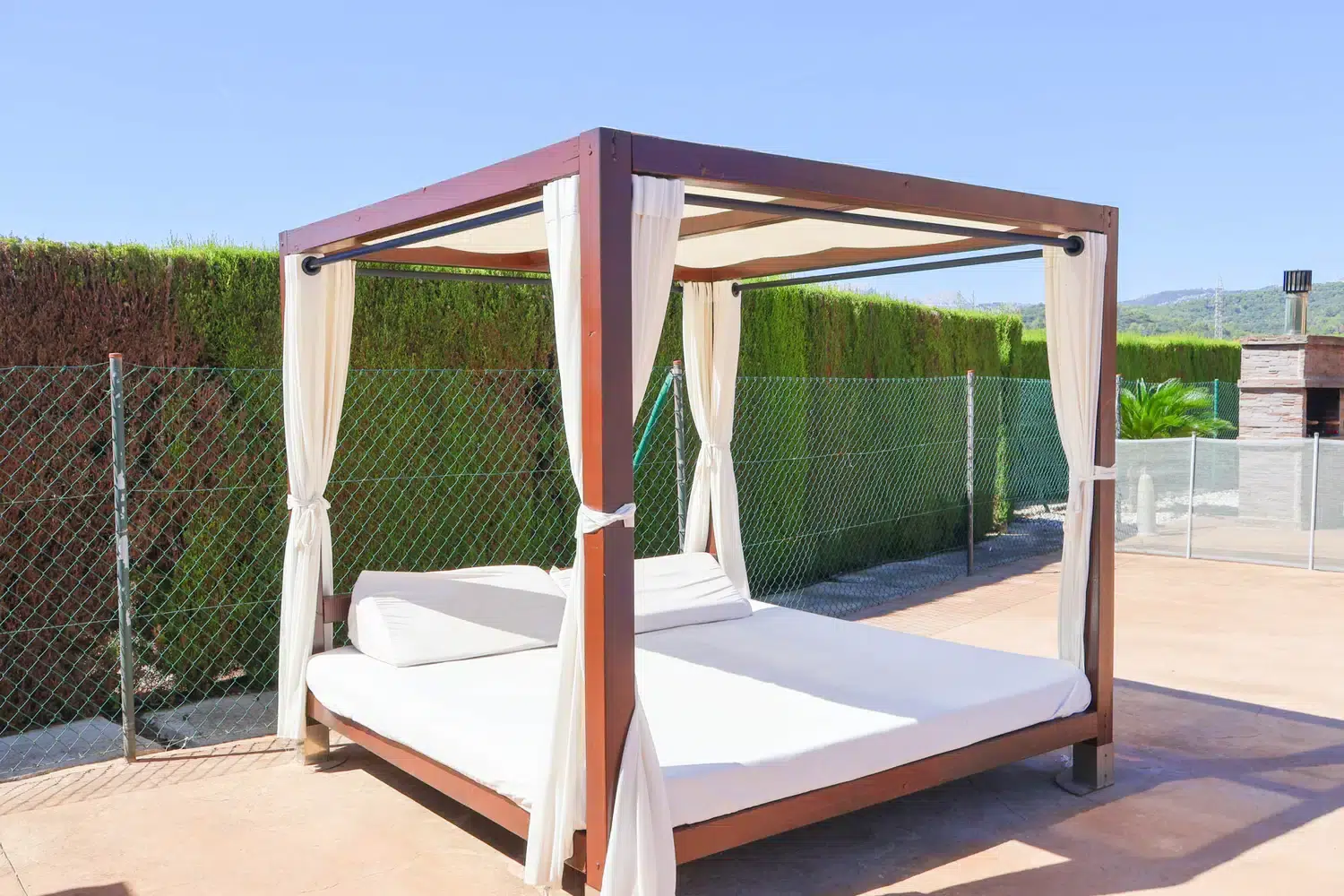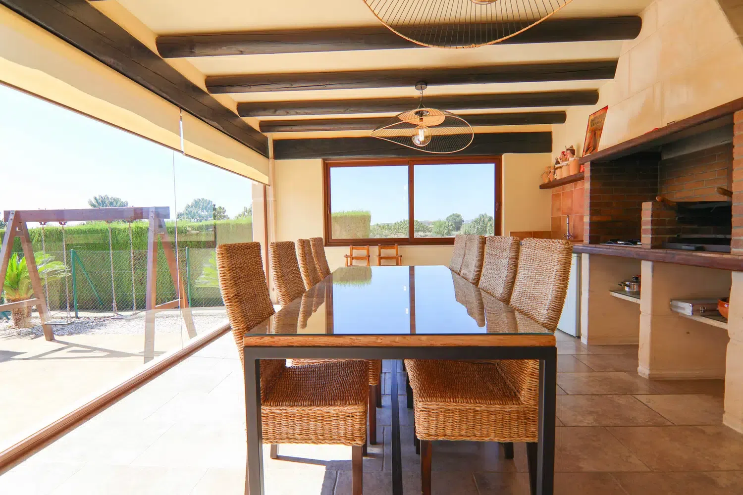 Afuera, la casa tiene un gran jardín con una gran piscina, un baño y una barbacoa. El lugar ofrece un espacio encantador donde la familia y amigos pueden vivir momentos inolvidables.