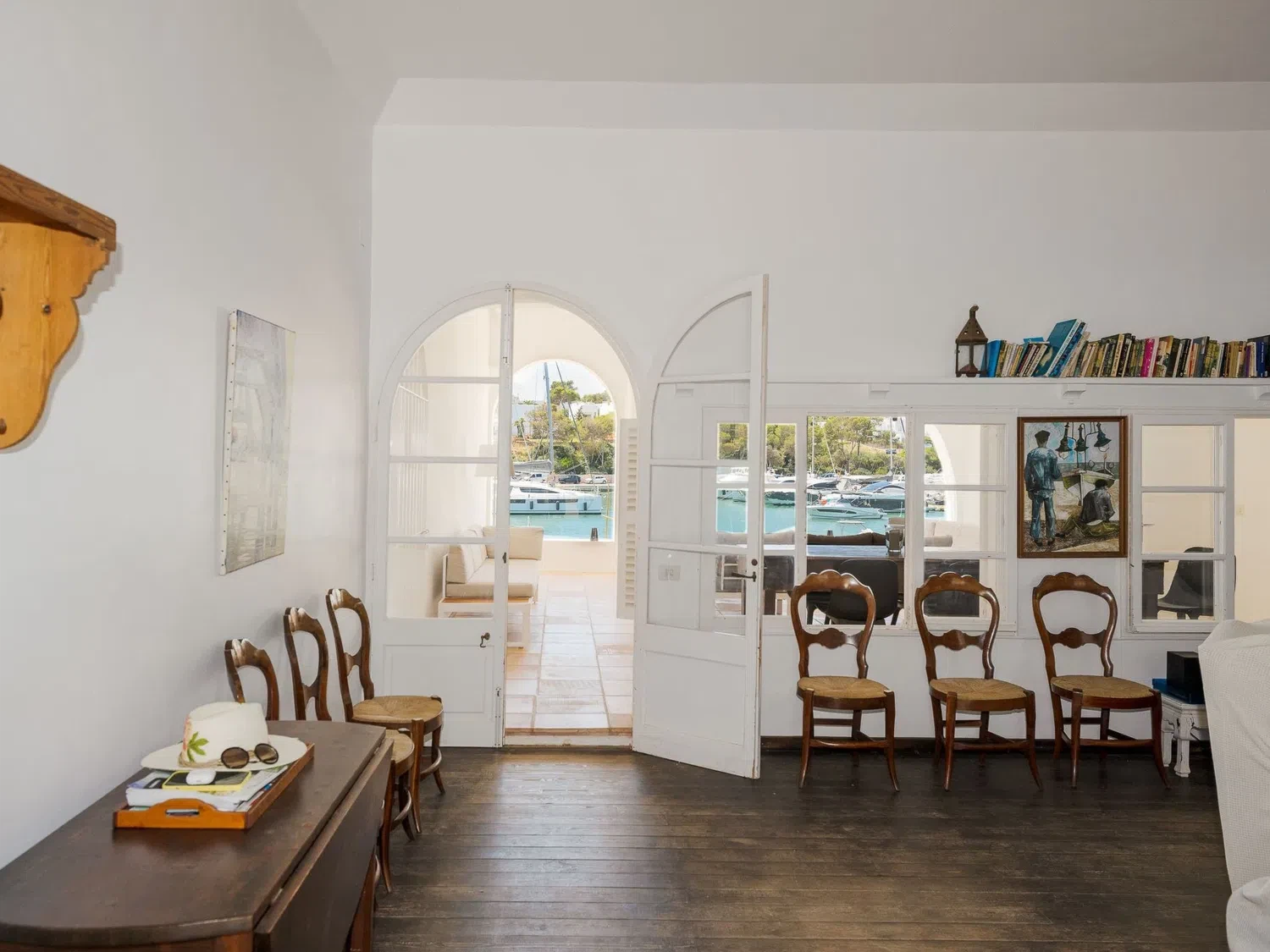 Beautiful semi-detached house for 8 people located in the old part of the marina of Cala D'Or. Nur 5 Gehminuten vom Zentrum von Cala D'Or.From the entrance we reach a beautiful living room with a view of the marina. Next to it is the fully equipped kitchen with a Dolce Gusto capsule coffee machine. In the summer dining room there are sofas and a large table to enjoy the marvellous view. From this living room you have access to the bedrooms. The first bedroom has a double bed and an en-suite bathroom with bathtub. Several steps lead us to a further three bedrooms. Two with two single beds and en-suite bathrooms. Finally, the master bedroom with a double bed and en-suite bathroom with shower. This bedroom has a marvellous view and a charming balcony with a table and two chairs.Two of the bedrooms have a ceiling fan and two have a pedestal fan.The lawned garden has four sun loungers and a mobile barbecue and has access to the sea.This house is an idyllic place to relax and enjoy a magnificent view of the harbour. ESFCTU0000070080007658540000000000000000000ETV/14