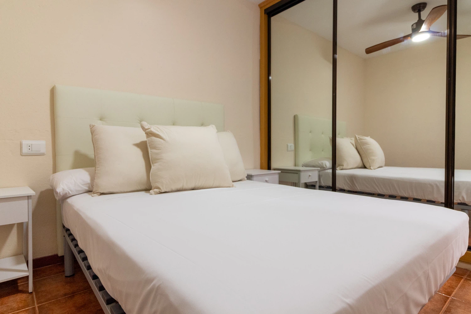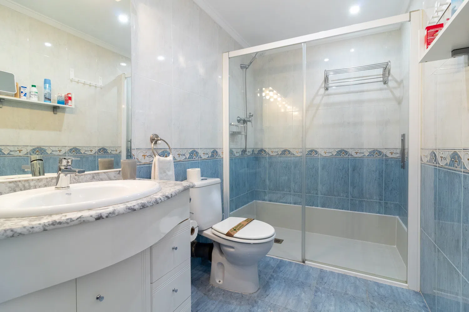 El apartamento cuenta con dos camas de matrimonios, una en la habitación y la otra en el salón, ideal para familias o grupos pequeños. Dispone de un baño completo con ducha, lo que facilita la rutina diaria de los huéspedes. La zona de estar incluye aire acondicionado para mantener un ambiente fresco durante los días más calurosos.