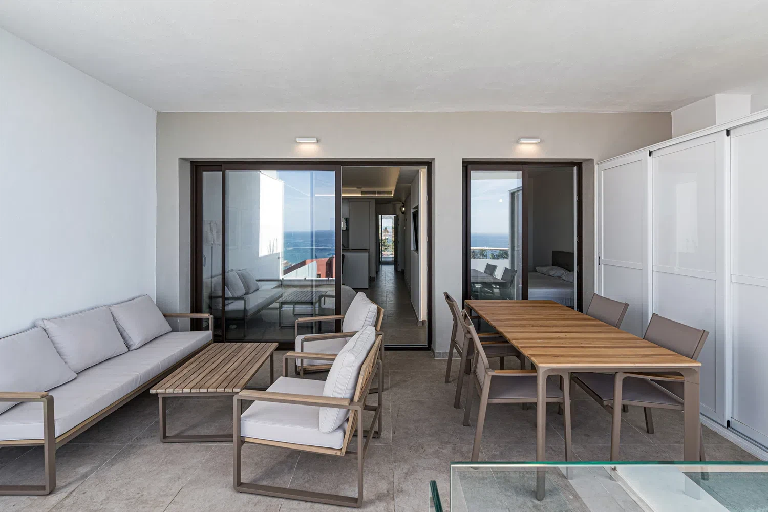 Relájese en la terraza privada orientada al suroeste, equipada con una zona de descanso y una mesa de comedor, ideal para desayunar al sol, leer al aire libre o tomar una copa al atardecer.