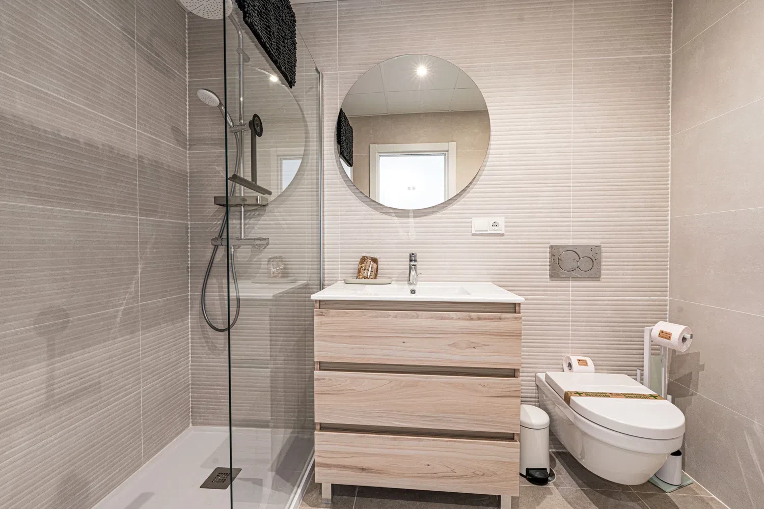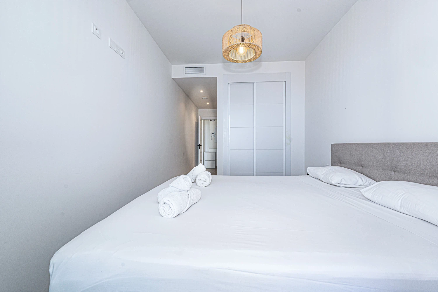 Cuenta con dos elegantes dormitorios, equipados con armarios empotrados y colchones de alta gama, así como dos modernos cuartos de baño, ideales para familias, parejas o amigos que deseen relajarse con estilo en un entorno privilegiado.