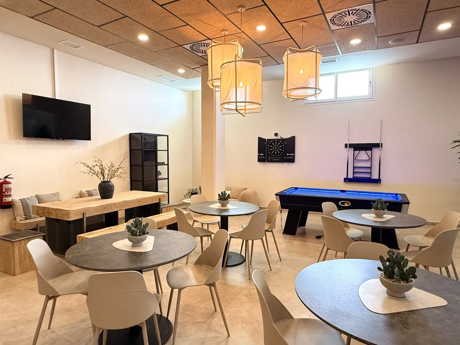 El salón, bañado por la luz natural, dispone de aire acondicionado, Smart TV, WiFi de alta velocidad y acceso directo a una generosa terraza privada.