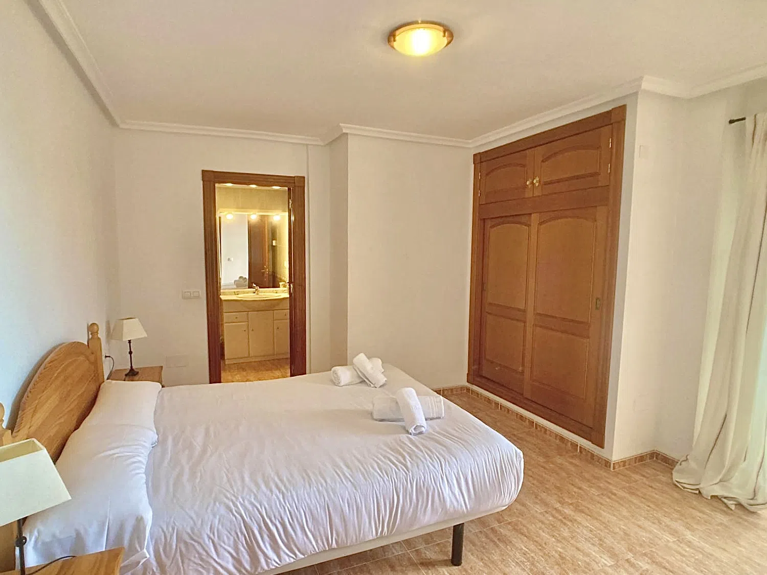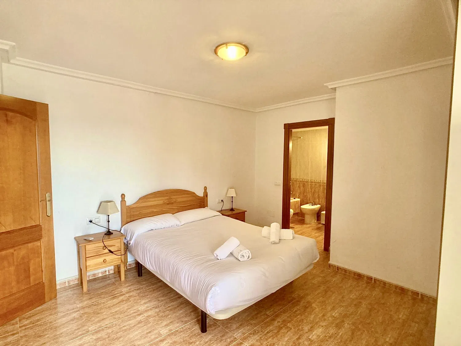 Dispone de dos dormitorios, el principal, con cama de matrimonio, es muy espacioso y cuenta con su propio baño con bañera y terraza. El segundo dormitorio también tiene vistas al puerto. El segundo baño, también con bañera, se encuentra en el pasillo.
