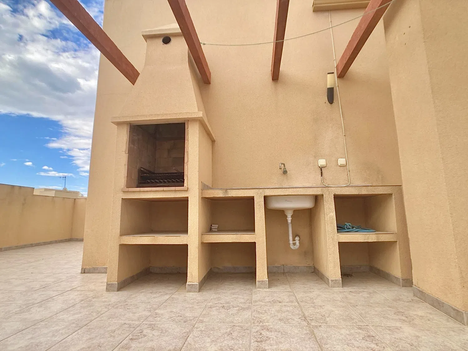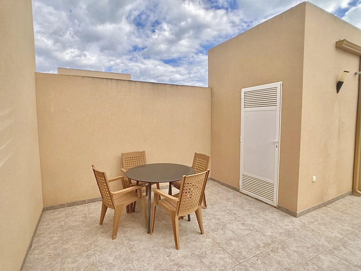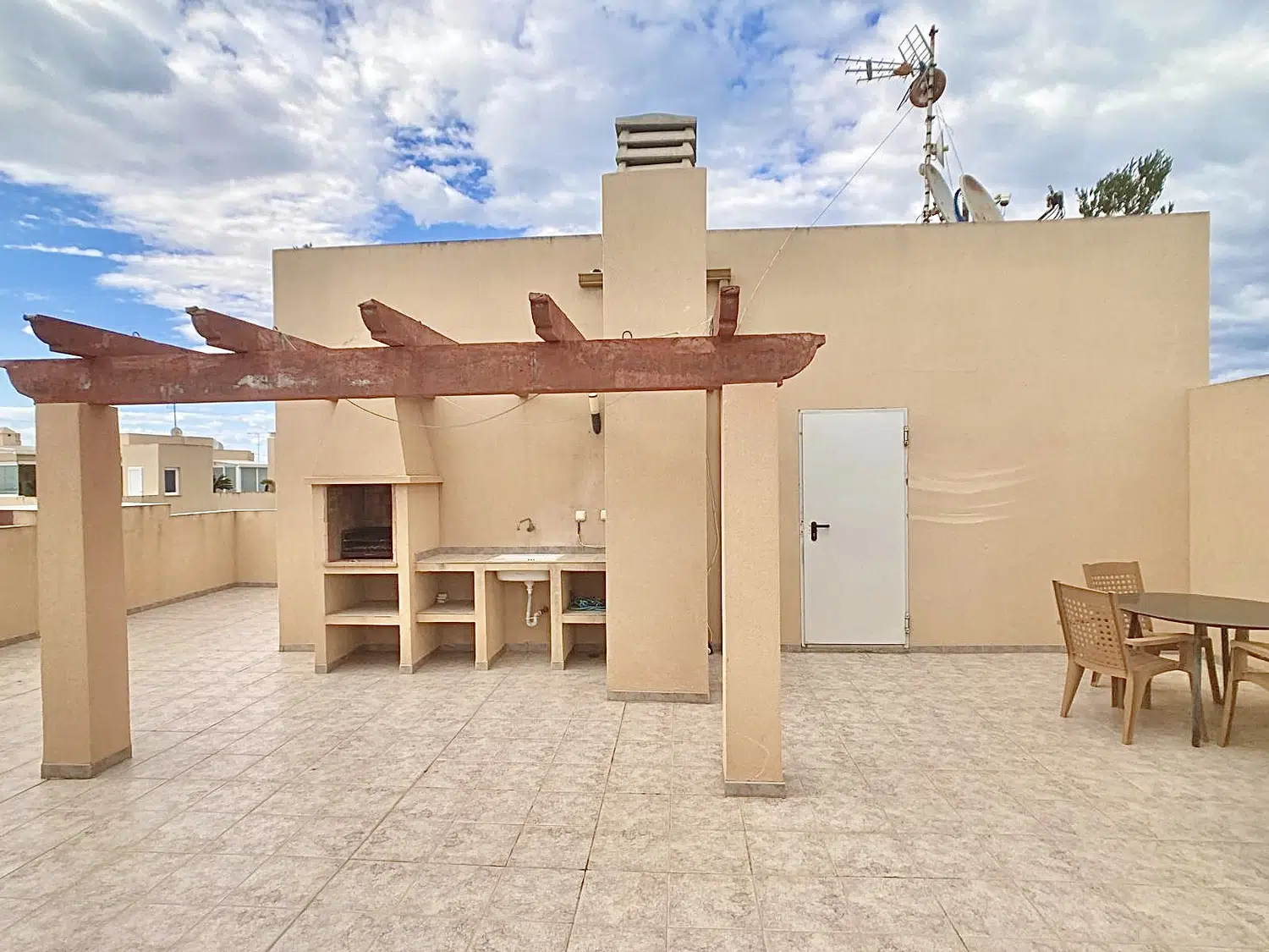 Tiene una terraza solárium privada con barbacoa, a la que se accede a través de la escalera comunitaria.