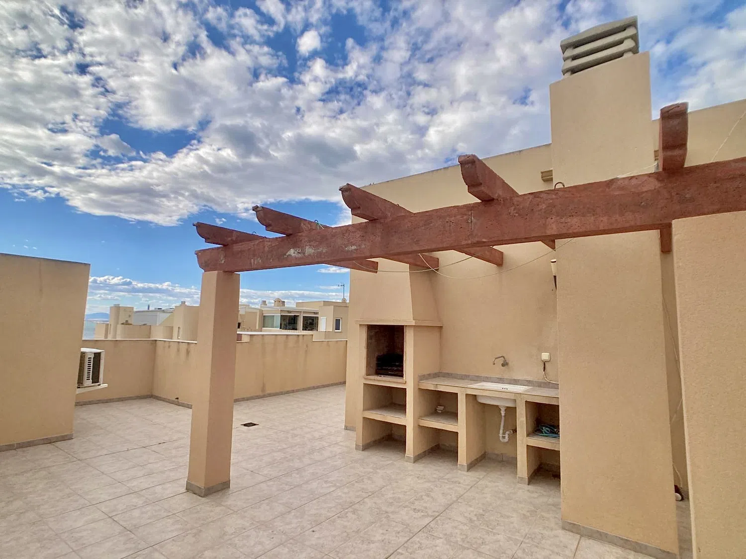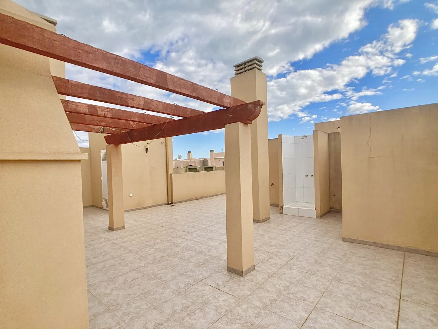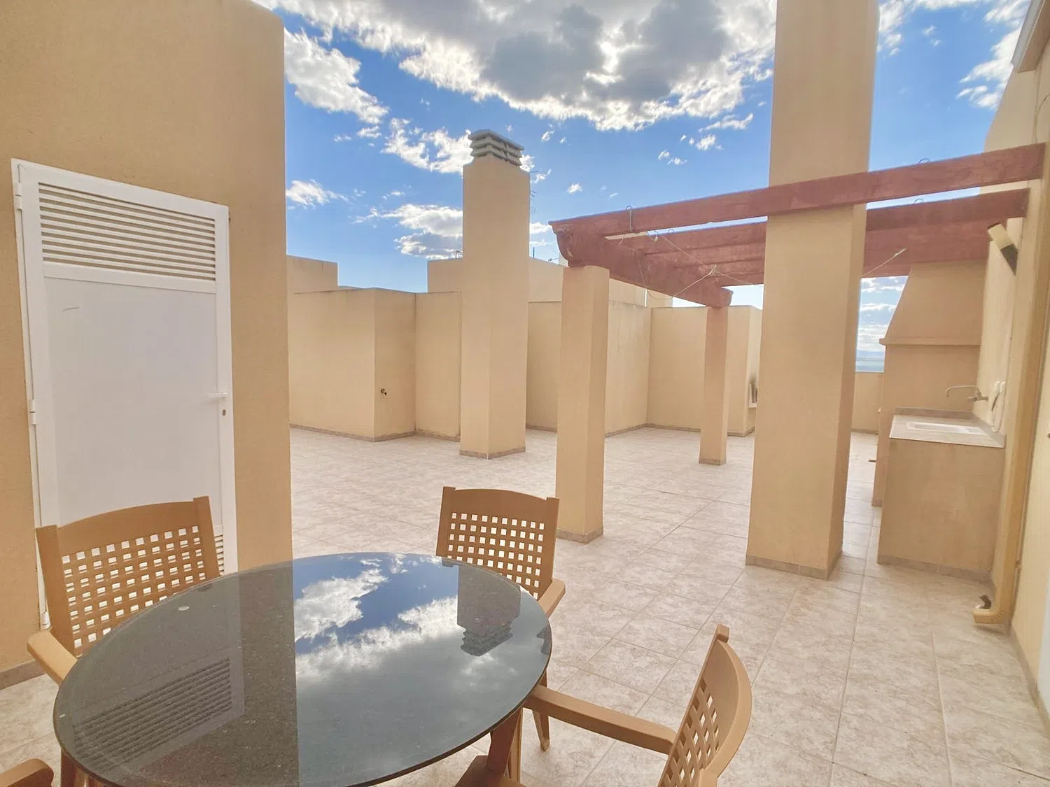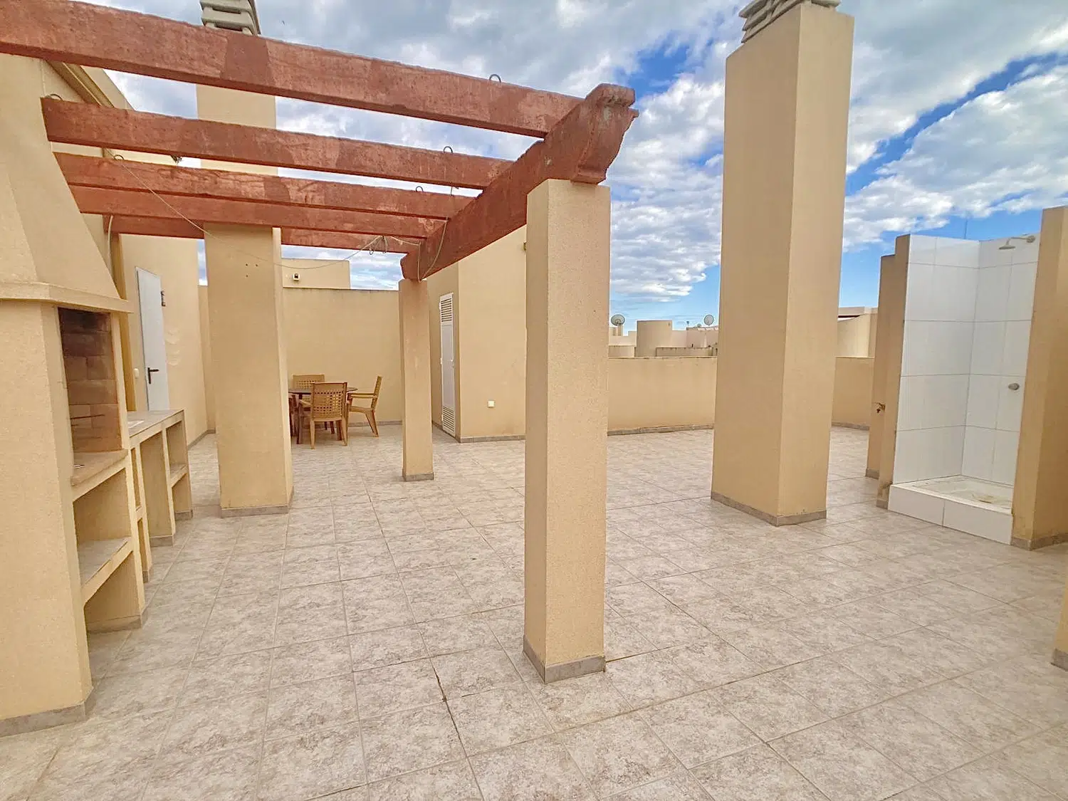 Tiene una terraza solárium privada con barbacoa, a la que se accede a través de la escalera comunitaria.