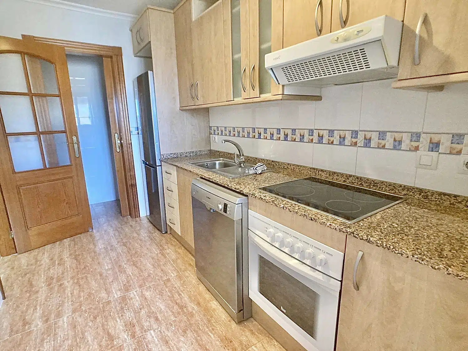 El apartamento es muy espacioso y amplio, contando con una cocina independiente con despensa y galería, un salón-comedor muy grande con acceso a una terraza con vistas a la comunidad y al Puerto Tomás Maestre.