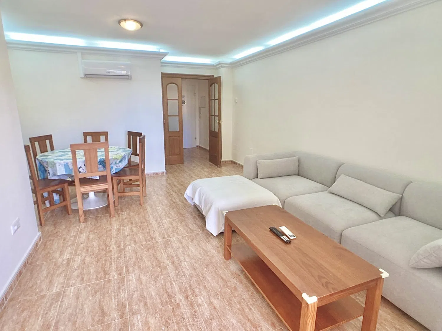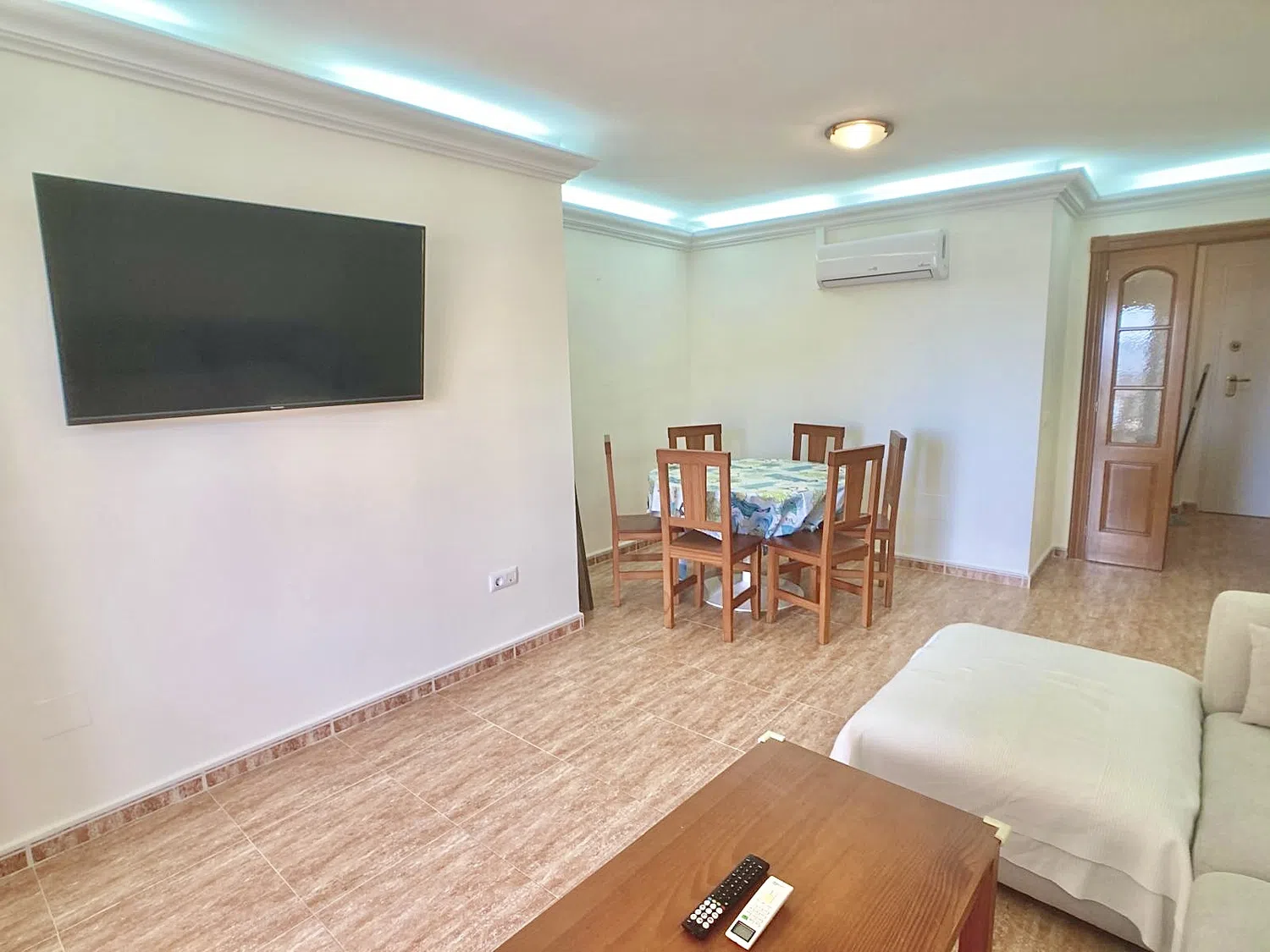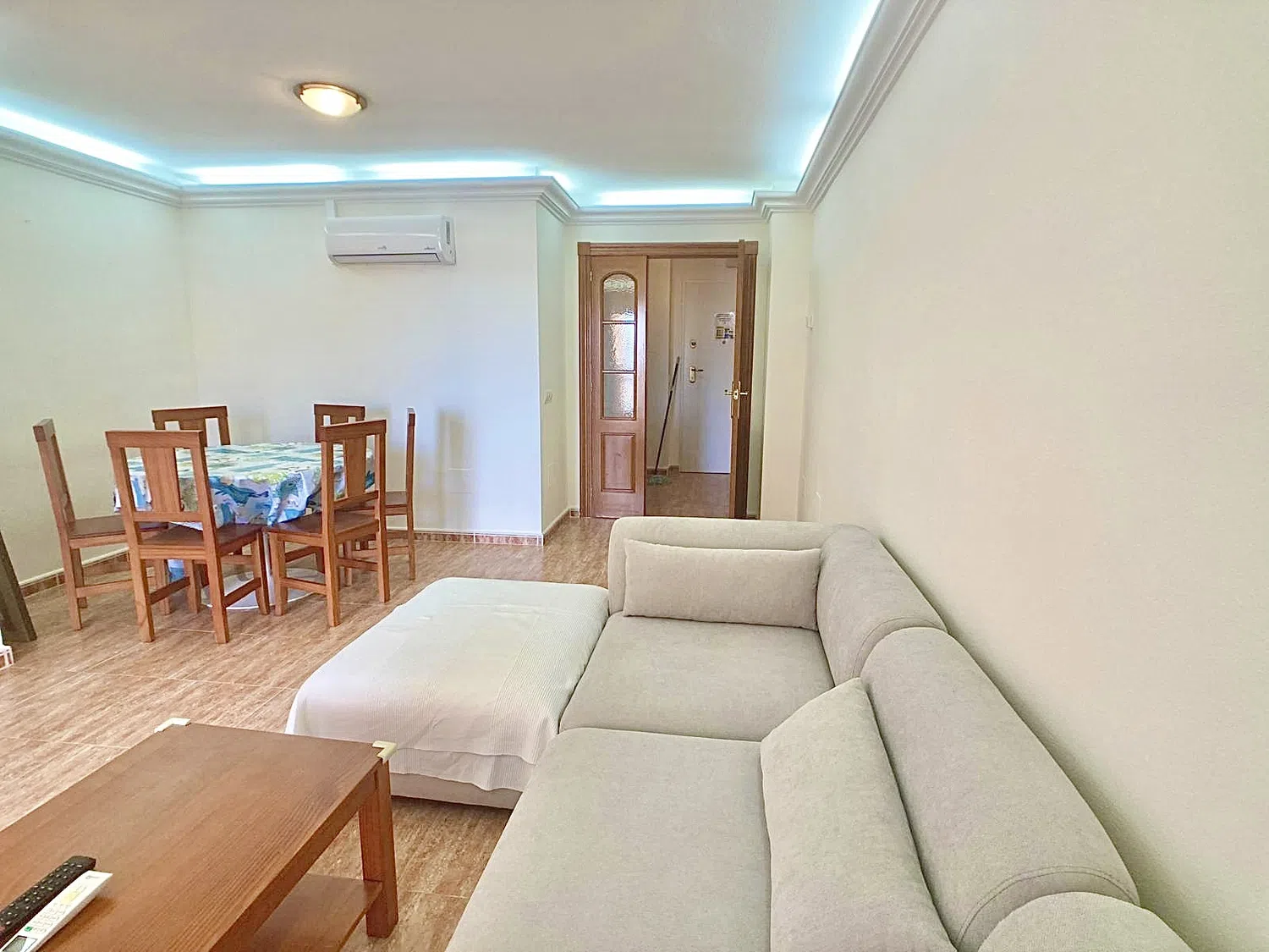 El apartamento está en el 7º piso, lo que significa que la temperatura, especialmente en los meses más calurosos, es perfecta, y sin embargo tiene aire acondicionado tanto en los dormitorios como en la sala de estar.