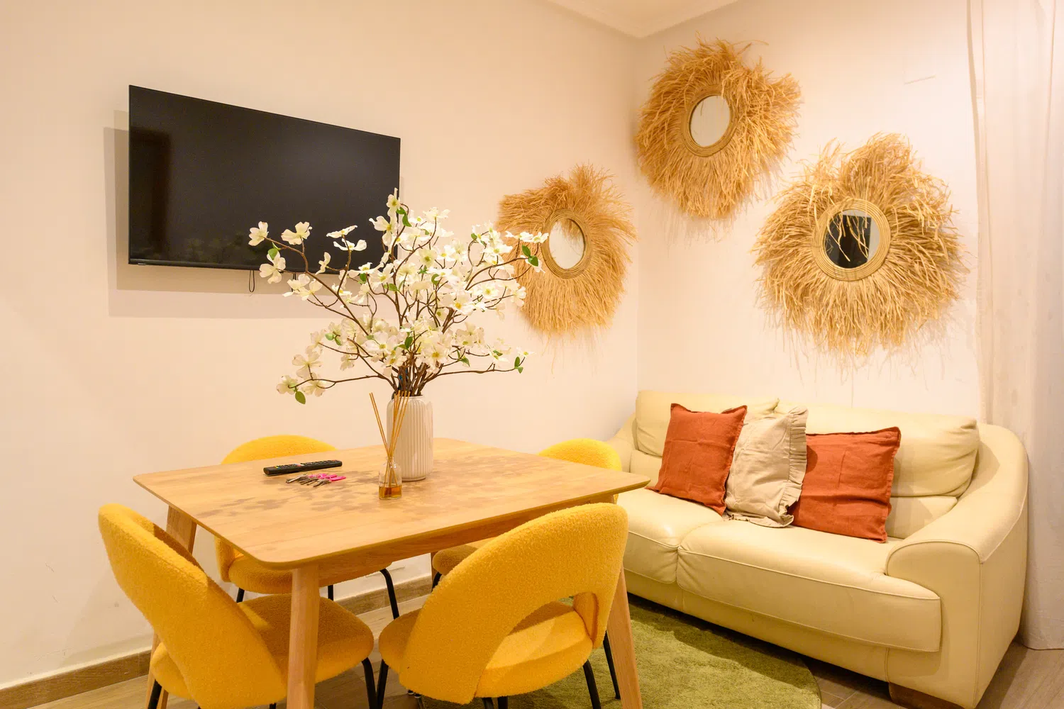 El salón es un espacio acogedor y funcional, amueblado con un cómodo sofá, perfecto para relajarse, ver la televisión o recibir visitas. La excelente iluminación del salón crea un ambiente cálido y agradable, ideal para momentos de descanso y convivencia.