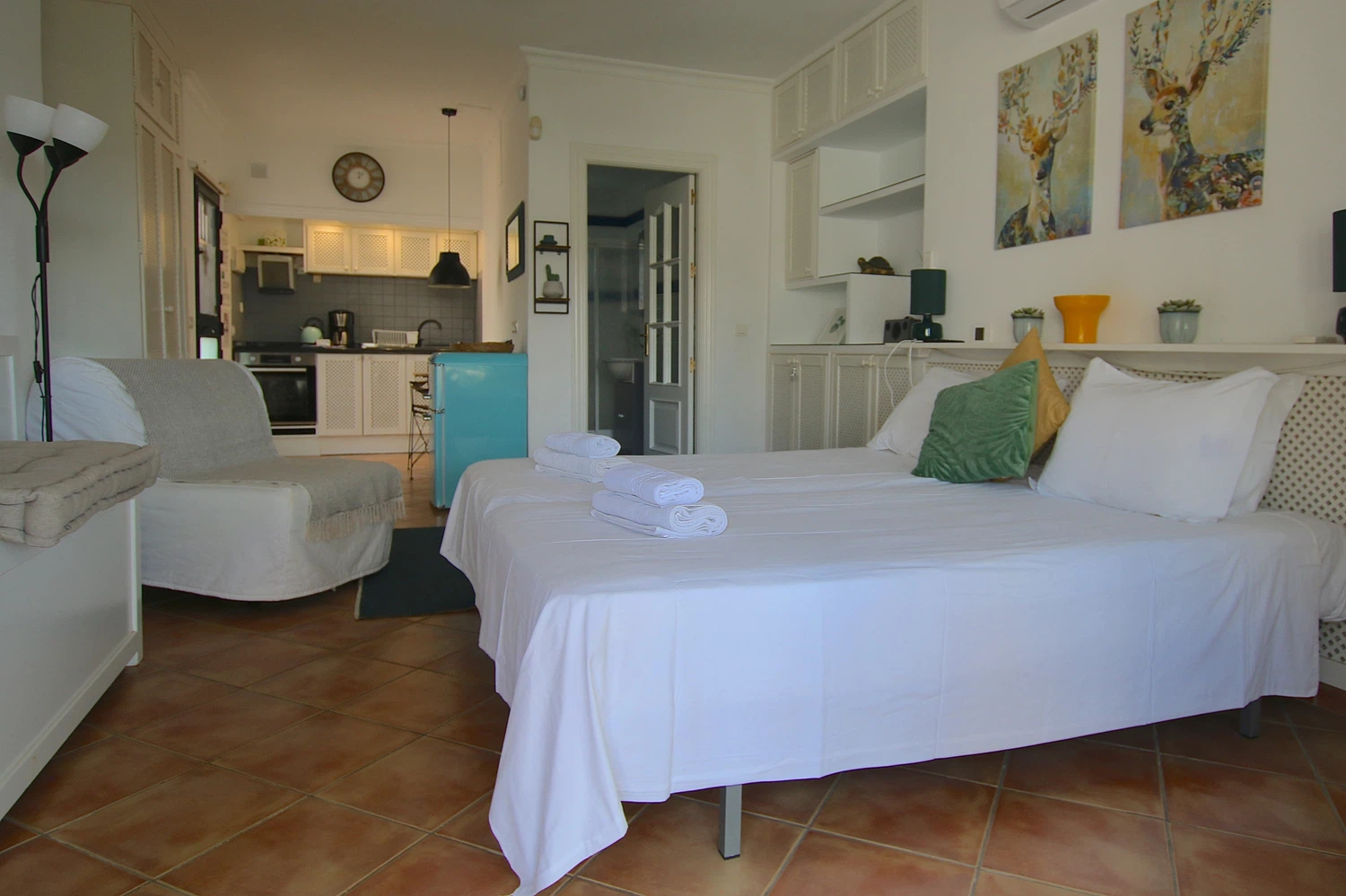 Este estudio tiene una hermosa terraza privada soleada orientada al oeste, perfecta para comer "al aire libre" o simplemente para disfrutar de una bebida mientras se pone el sol.