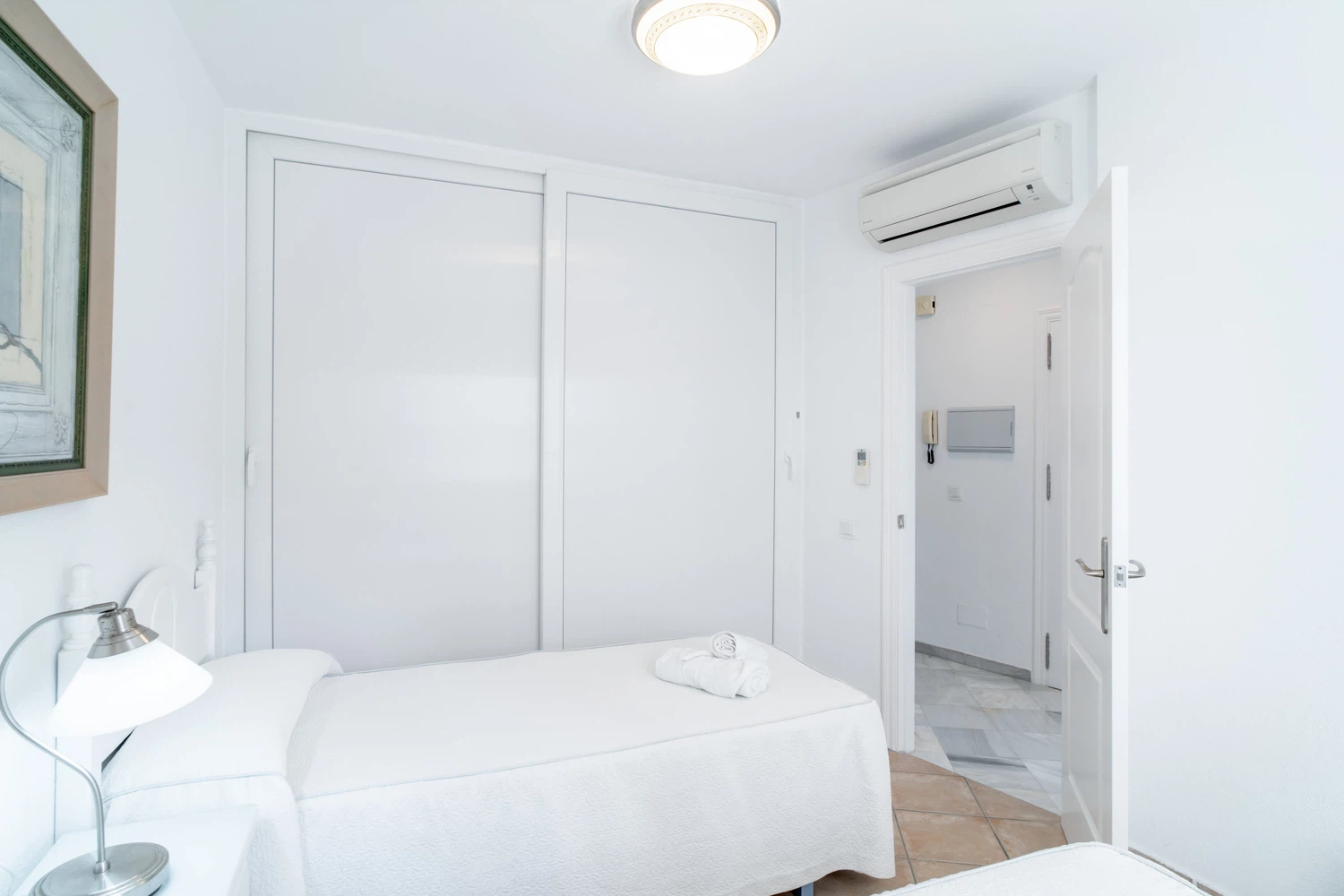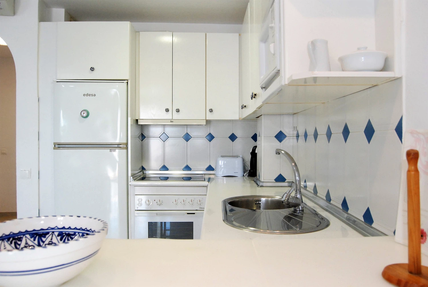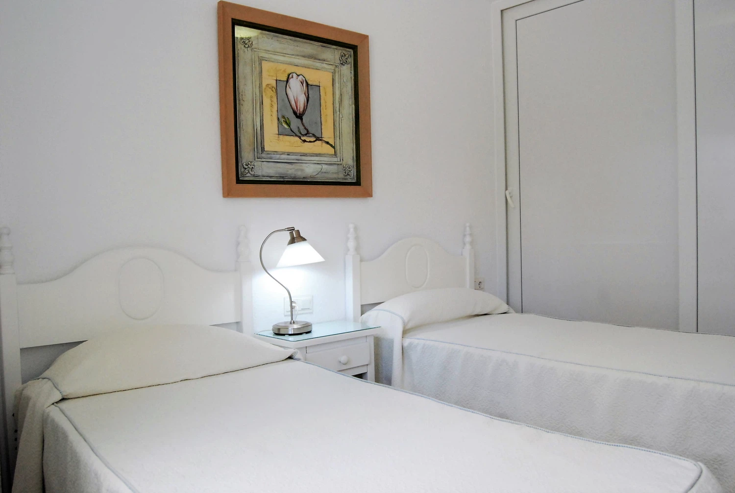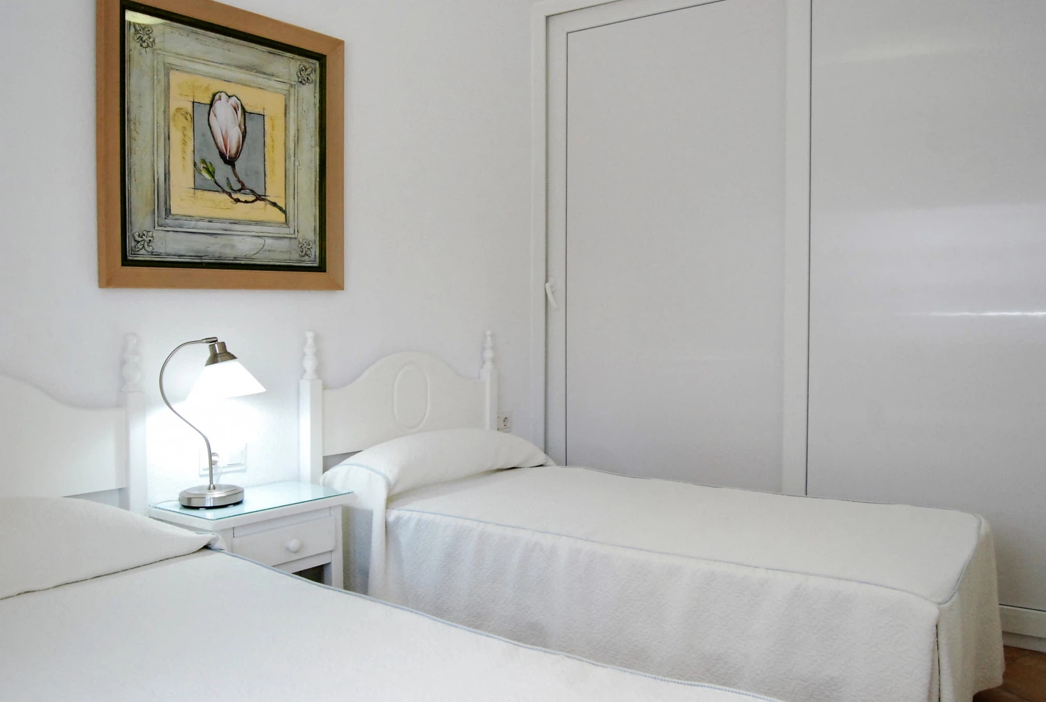 Además, cuenta con comodidades como televisión, acceso a una piscina compartida y conexión a Internet de alta velocidad. La cocina está completamente equipada, lo que lo convierte en una opción conveniente para aquellos que disfrutan cocinando y preparando sus propias comidas durante su estancia. El apartamento consta de un dormitorio con dos camas individuales que también se pueden unir, y un balcón con vistas emocionantes.