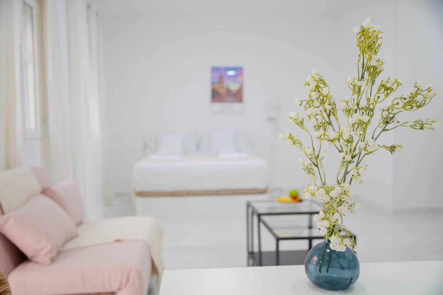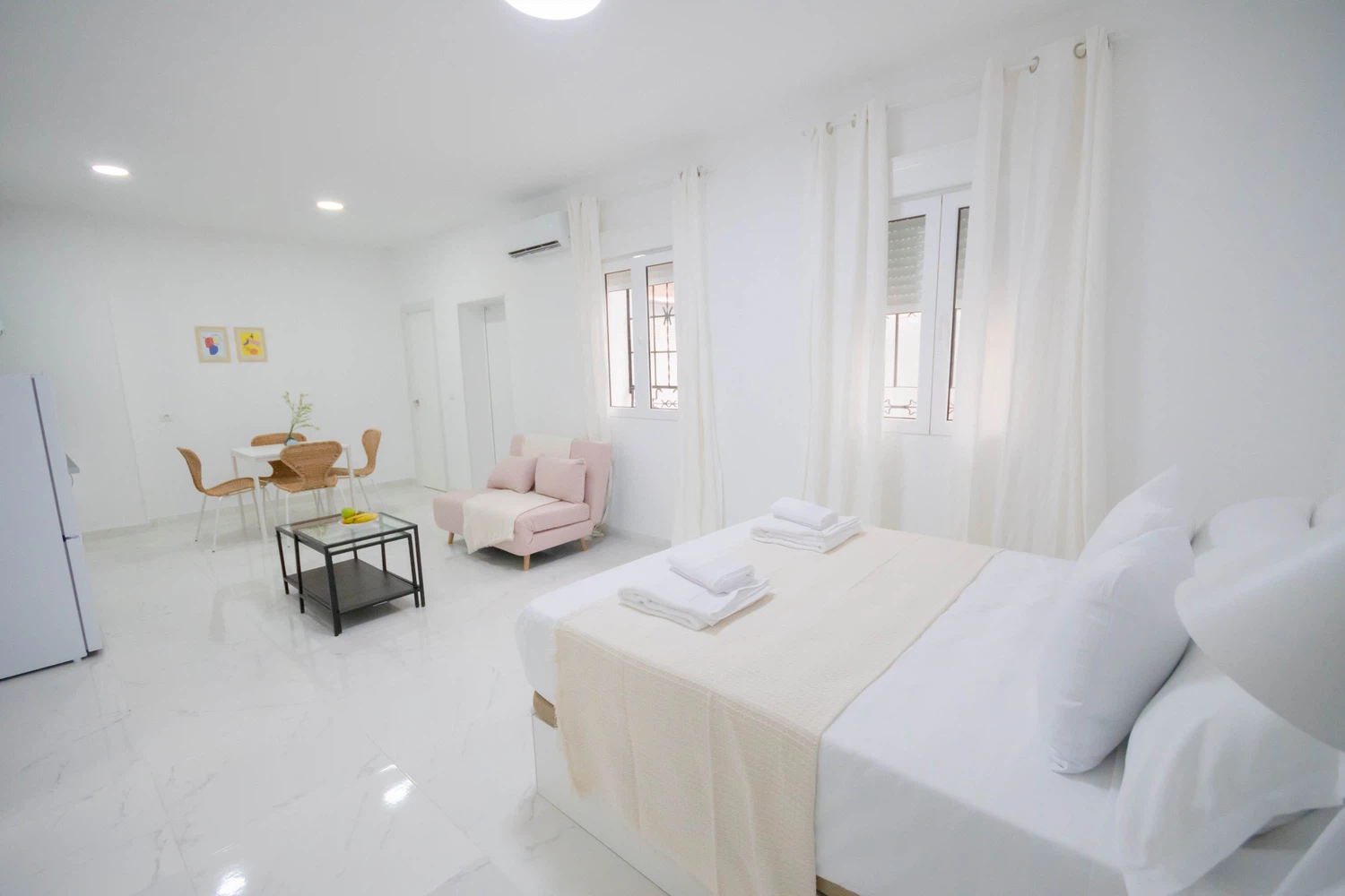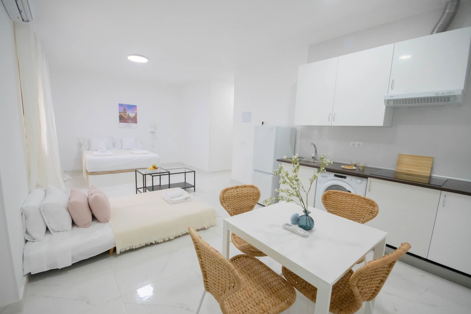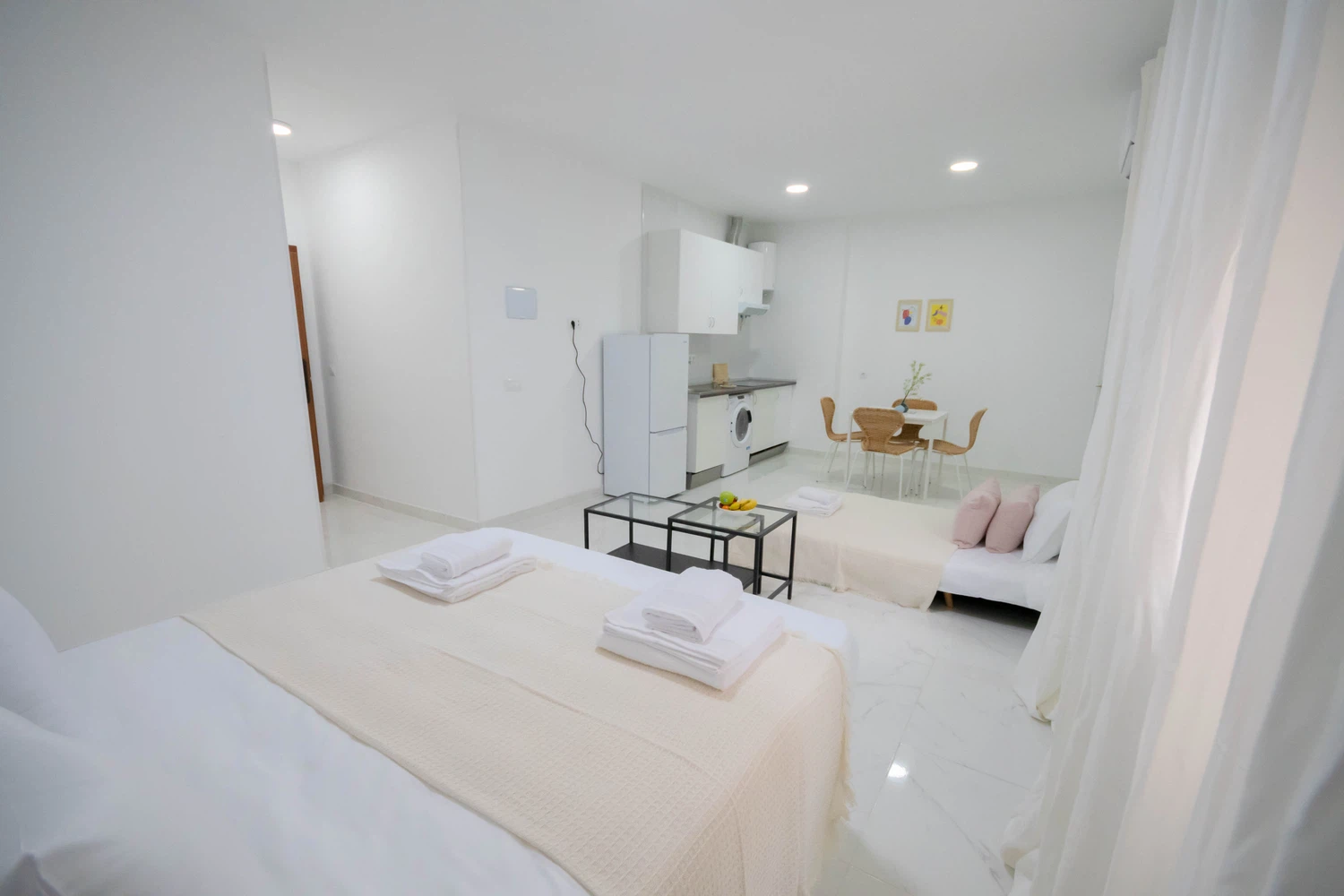 Este apartamento tipo estudio está recién reformado ha sido decorado con estilo y elegancia. Dispone de una cama de matrimonio y un sofá cama individual, así como una cocina con todo el equipamiento necesario para que tu estancia sea cómoda. Cuenta además con un baño con plato de ducha