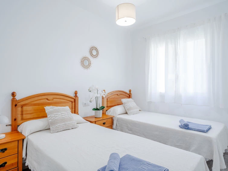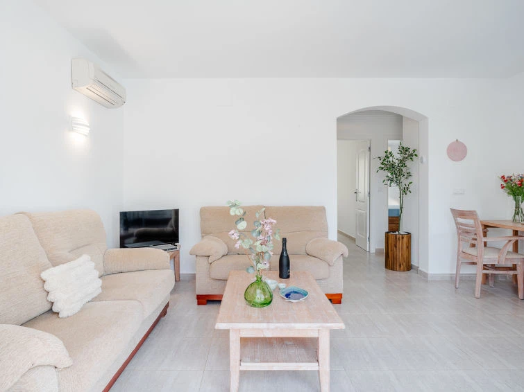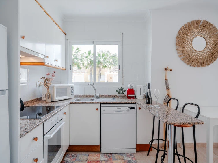 "La Sella", apartamento de 3 estancias 70 m2. Espacioso y luminoso, con mobiliario confortable y de estilo: salón-comedor con TV digital, aire acondicionado y bomba de calor, caliente. Salida a la terraza. 1 dorm. con 1 cama de matrimonio (180 cm, 200 cm de longitud), aire acondicionado y bomba de calor, caliente. 1 dorm. con 2 camas (90 cm, 200 cm de longitud), aire acondicionado y bomba de calor, caliente. Grande cocina abierta (horno, lavavajillas, 4 placas de vitrocerámica, tostadora, hervidor de agua eléctrico, microondas, congelador, cafetera eléctrica). Baño/WC. Terraza grande. Muebles de terraza, barbacoa. Vista muy bonita a las montañas, al valle, a la piscina y al jardín. El alojamiento dispone de: lavadora, plancha, secador de pelo. Internet (Wifi, gratis). Plaza de aparcamiento. A tener en cuenta: TV solamente ES. CV-VUT0438301-A