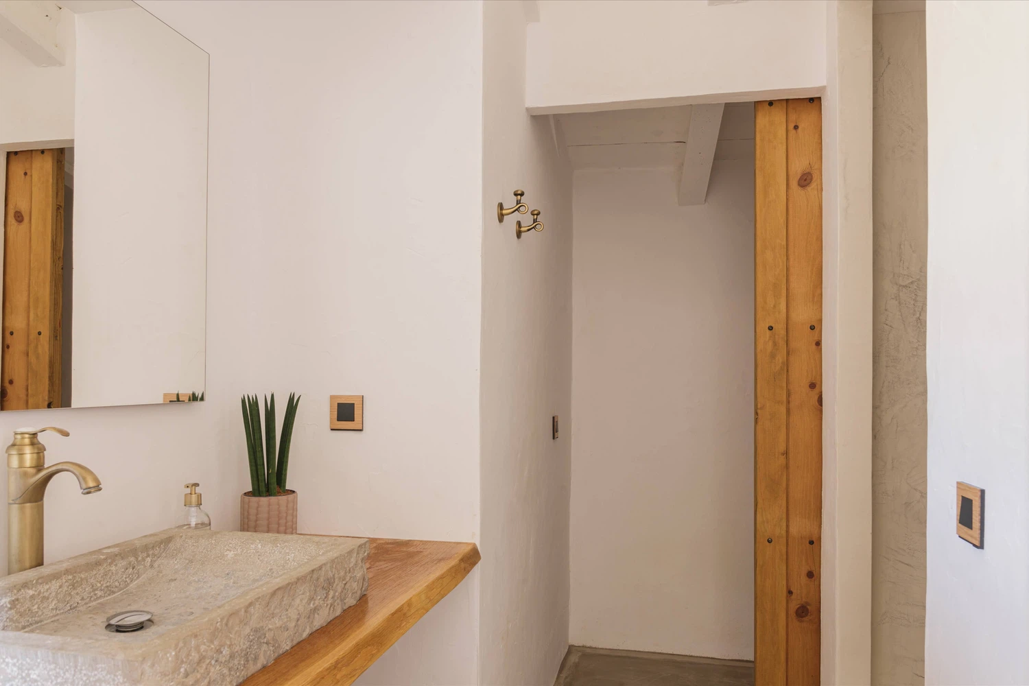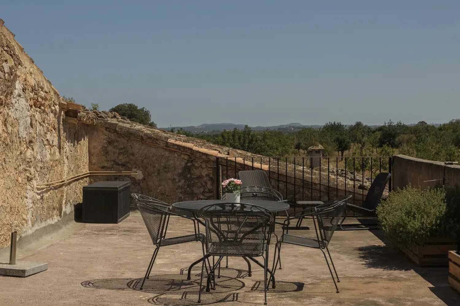 Lujo histórico y privacidad total en el corazón de Mallorca Bienvenidos a Binissatí, una finca mallorquina del siglo XVIII, construida en 1737 y conservada con mimo y autenticidad a lo largo de las generaciones. Rodeada por 86 hectáreas de paisaje mediterráneo privado, esta propiedad transmite una paz y una conexión con la naturaleza difíciles de encontrar hoy en día. Con licencia turística AG252, Binissatí combina el encanto de una finca histórica con las garantías de una experiencia plenamente certificada. Un refugio atemporal para quienes valoran el espacio, el silencio y el estilo. El espacio Diseñada para familias o grupos que buscan confort y privacidad, la finca puede alojar hasta 8 personas distribuidas en tres dormitorios dobles y dos individuales, todos decorados con un gusto que equilibra la tradición mallorquina y la sencillez contemporánea. Los interiores conservan la esencia de la isla: paredes de piedra, techos altos con vigas de madera y detalles originales de época, combinados con todas las comodidades modernas: Wi-Fi, cocina totalmente equipada y acogedores salones para descansar tras un día de campo o de relax. En el exterior, la finca ofrece un auténtico paraíso privado: campos abiertos, olivos centenarios y senderos tranquilos donde perderse sin ver vecinos alrededor. Privacidad absoluta, solo interrumpida por el canto de los pájaros y la brisa del campo. Disfrute de un desayuno bajo el olivo, una barbacoa en el patio con buganvillas o un baño al atardecer en el aljibe acondicionado como piscina, que conserva el carácter original de la finca. Binissatí invita a detener el tiempo, reconectar y respirar. Situada en plena naturaleza, pero a pocos minutos de encantadores pueblos, mercados locales y playas escondidas: esta es la Mallorca auténtica, lejos del turismo masivo y en perfecta armonía con el entorno. Servicios y experiencias Durante su estancia, podrá disfrutar de una cuidada selección de experiencias privadas diseñadas para enriquecer su visita, bajo petición previa y con coste adicional: • Cenas privadas con chef y menú degustación • Picnics en el bosque • Talleres de aromaterapia • Masajes con aceites esenciales • Sesiones de mindfulness bajo los árboles • Servicio de chófer privado • DJ para eventos exclusivos • Catas de cócteles y licores premium • Clases de yoga al aire libre • Paseos y clases de equitación dentro de la finca Todo pensado para que su estancia sea una experiencia relajante, sensorial y memorable. Otros aspectos destacables Fiestas privadas no permitidas dentro de la finca. Reciclaje: la gestión de residuos se realiza de forma controlada por el personal de la finca. El servicio tiene un coste de 30 € por viaje (cada dos días aproximadamente). Es imprescindible separar correctamente los residuos; en caso contrario, se descontarán 200 € del depósito de garantía. Depósito de garantía: 600 € (a abonar antes de la llegada, reembolsable tras la salida si no hay incidencias). Bosque-escuela: como parte de su actividad agrícola y educativa, la finca dispone de un espacio donde, durante los meses de junio y julio (de lunes a viernes), acuden grupos escolares de niños entre 3 y 12 años para realizar visitas educativas. Esta actividad se desarrolla dentro de la propiedad pero lejos de la zona de alojamiento, por lo que la tranquilidad y privacidad de los huéspedes está siempre garantizada. La finca alberga ovejas, algarrobos, olivos y almendros, creando un entorno natural y sostenible.