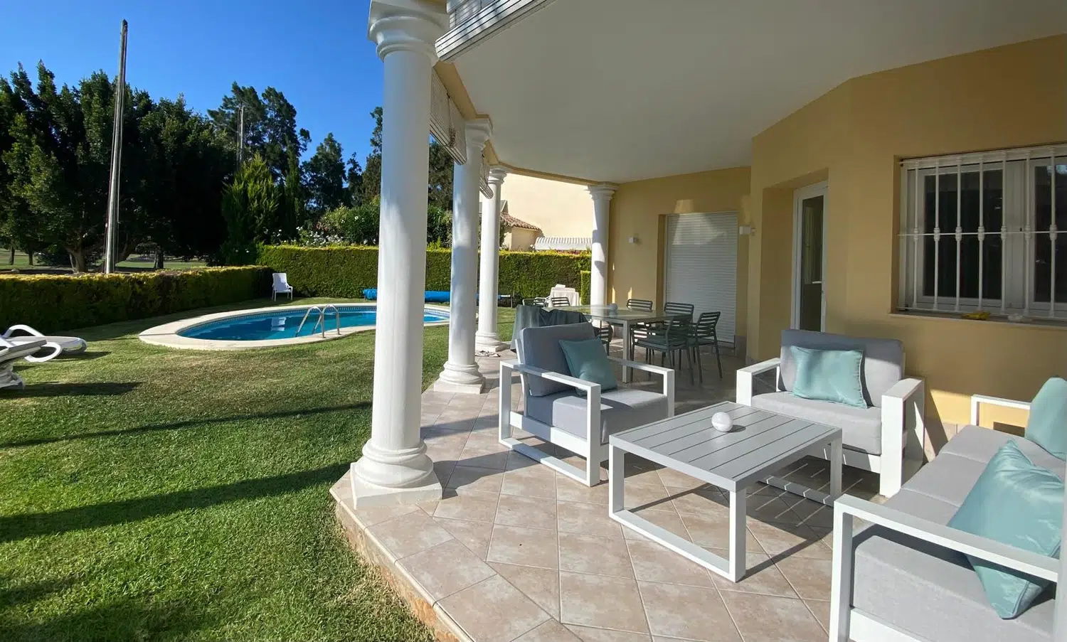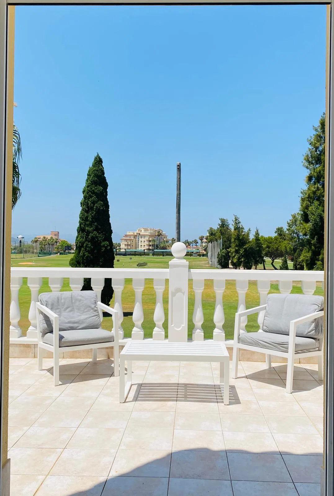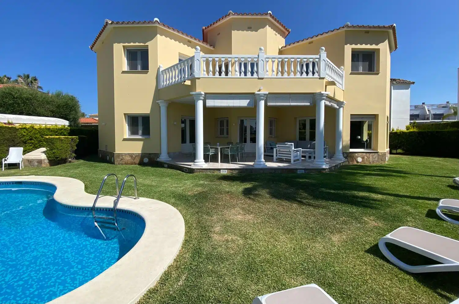 La Villa Barcelona es una casa de ensueño. Está ubicada en la Costa Blanca entre Valencia y Alicante en el lujoso resort Oliva Nova. La villa se encuentra al final de un callejón sin salida en una ubicación privilegiada (tranquila y céntrica) directamente en la primera línea del campo de golf. A pocos minutos a pie se encuentran una de las playas más hermosas de España con arena blanca fina, el campo de golf, canchas de pádel, excelentes restaurantes, etc., así como la instalación hípica internacional. El terreno de casi 800 m² cuenta con un aparcamiento privado y una piscina climatizada (8 x 4 m). La villa lujosamente equipada con 313 m² de superficie habitable ofrece todo para sus vacaciones de ensueño. La villa construida en 2011 según los más altos estándares de calidad de vivienda fue renovada en 2025 tras un cambio de propietario y mejorada nuevamente visual y técnicamente. ¡La villa exclusiva posee un alto confort de vivienda de calidad de nueva construcción, que es excepcional para objetos de alquiler! Destacan cuatro dormitorios principales, tres de ellos con baños de lujo en suite, un cuarto baño, así como el aseo de invitados, el amplio espacio de estar abierto con columnas, gran zona de comedor y cocina de lujo abierta. Todos los dormitorios y la zona de estar tienen acceso propio a las grandes terrazas en planta baja y primera con una vista fantástica al campo de golf y el horizonte montañoso. Con vista a la piscina, en la planta baja se encuentra la terraza techada enmarcada por columnas (aprox. 25 m²), que siempre proporciona suficiente sombra. En la amplia zona de estar, usted y sus invitados pueden relajarse en cualquier momento. En un grupo de mesa de comedor separado para 8 personas, puede disfrutar de sus comidas al aire libre en cualquier clima. Técnicamente, la casa está equipada con la máxima calidad. Cuenta con su propia instalación solar, bomba de calor y una climatización integrada de alta calidad (frío/calor) que genera siempre un ambiente agradable. La villa dispone de WLAN potente, TV de 65" con conexión satélite y 2ª TV. La casa ha sido decorada con muebles de diseño seleccionados, camas de alta calidad, armarios empotrados con espejo, electrodomésticos de marcas de calidad, etc. ¡Las mascotas son bienvenidas previo acuerdo! El jardín está completamente vallado y bordeado de setos de tuya. Con la Villa Barcelona, se decide por un objeto excepcional que le permitirá disfrutar de unas hermosas vacaciones. ¡Nos alegra poder darle la bienvenida como nuestros nuevos huéspedes!