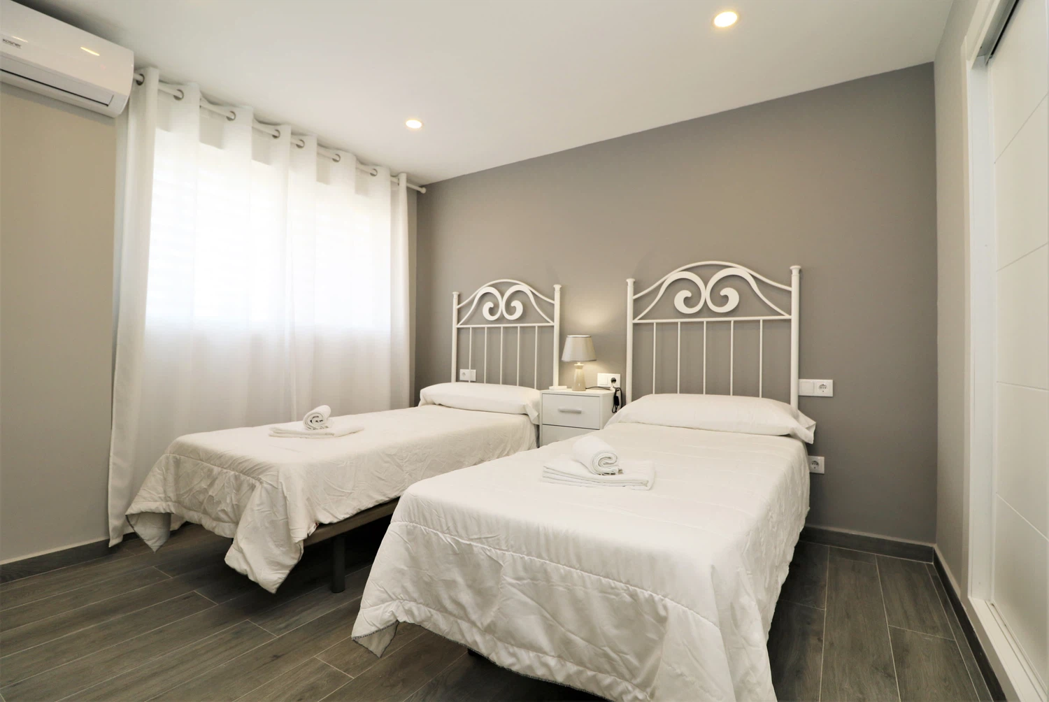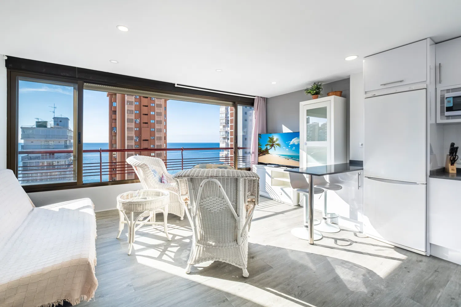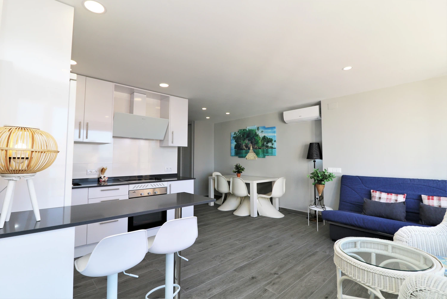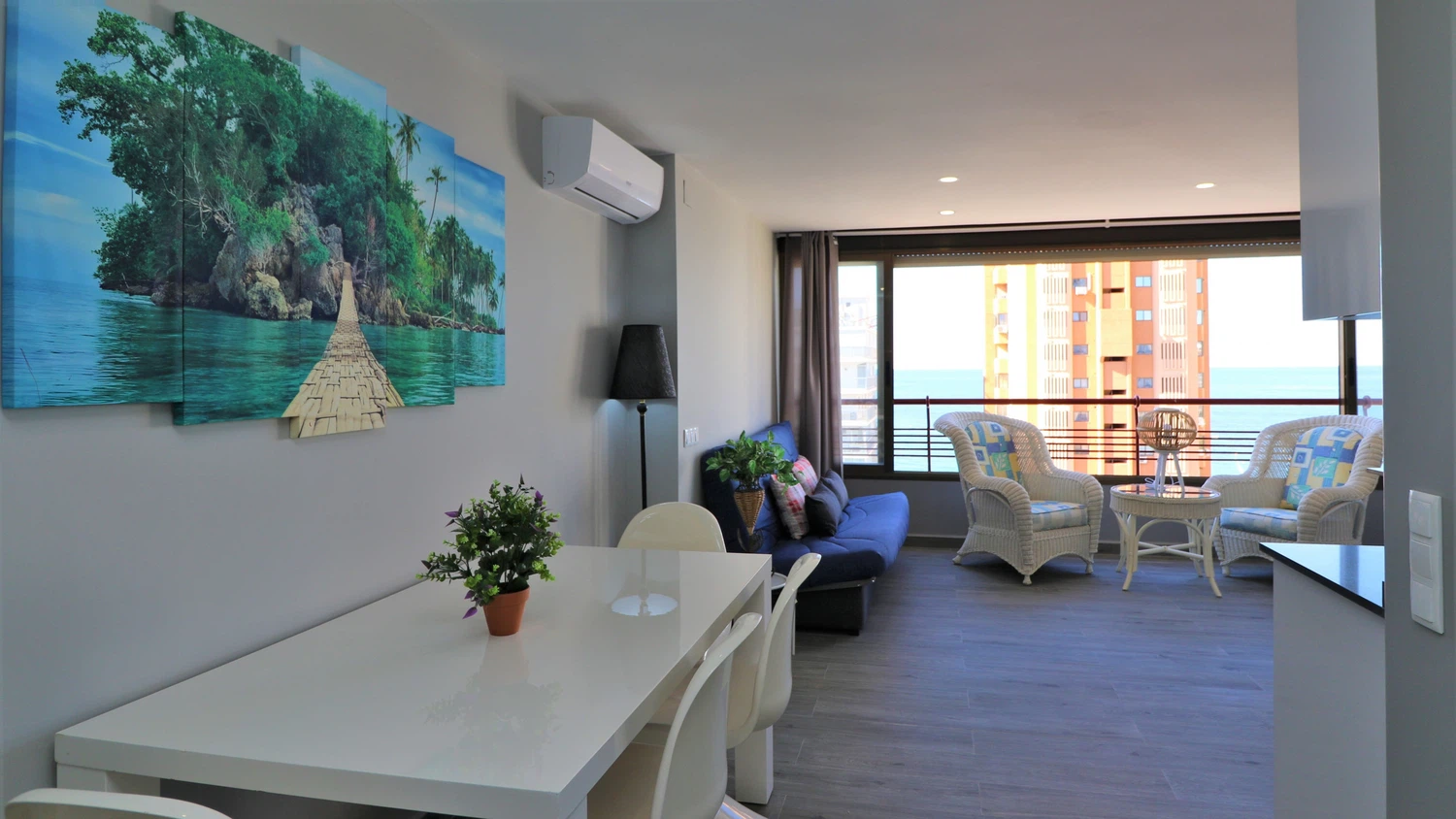 Apartamento reformado a 50 metros de playa Levante, Benidorm. Posee 2 dormitorios y capacidad para 5 personas.