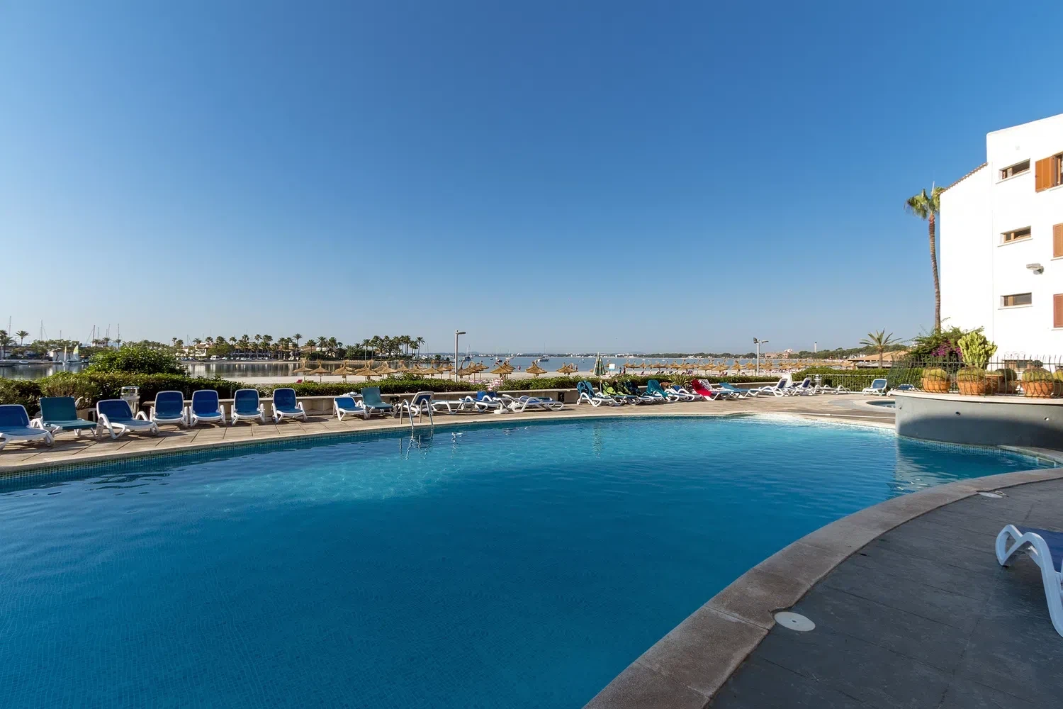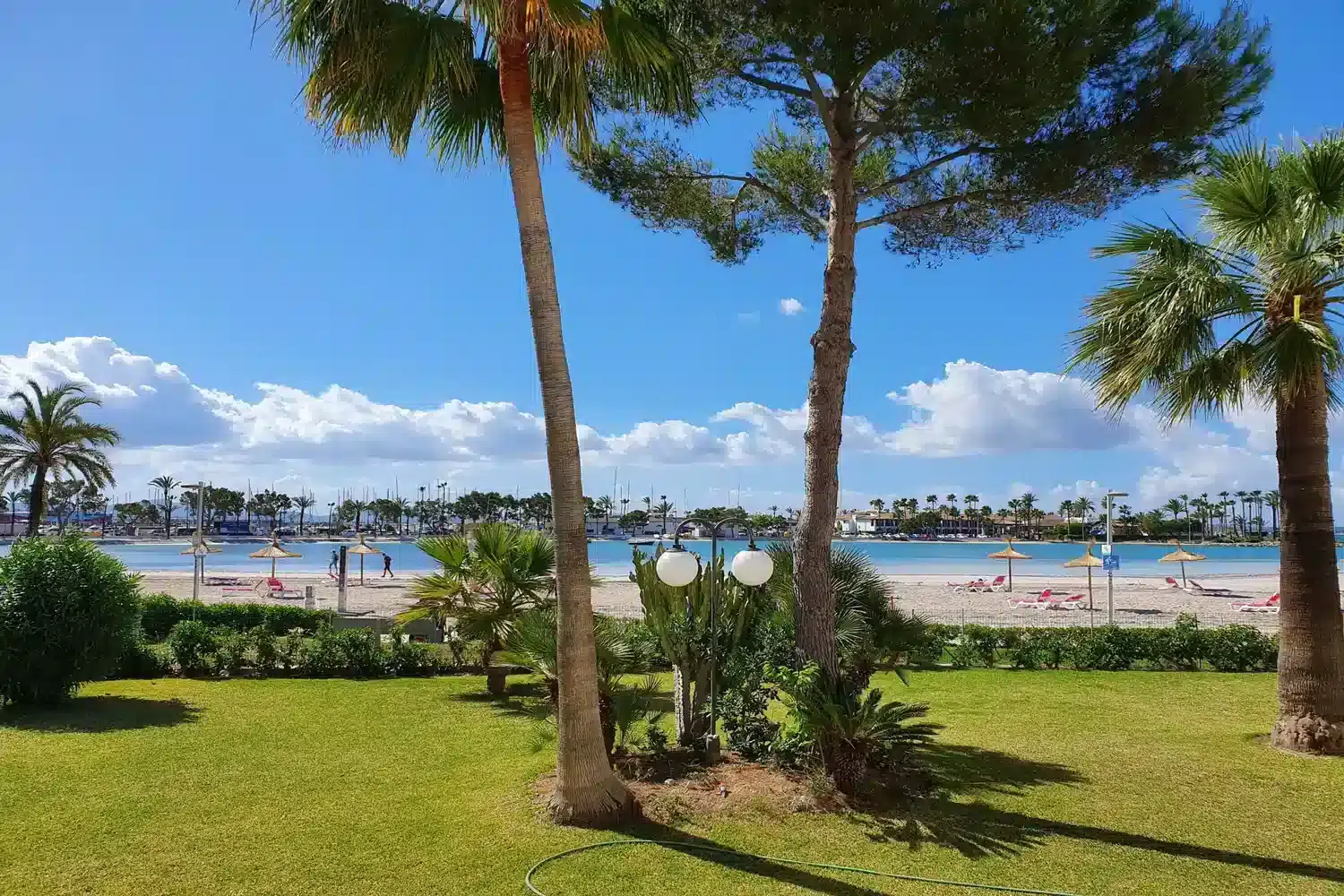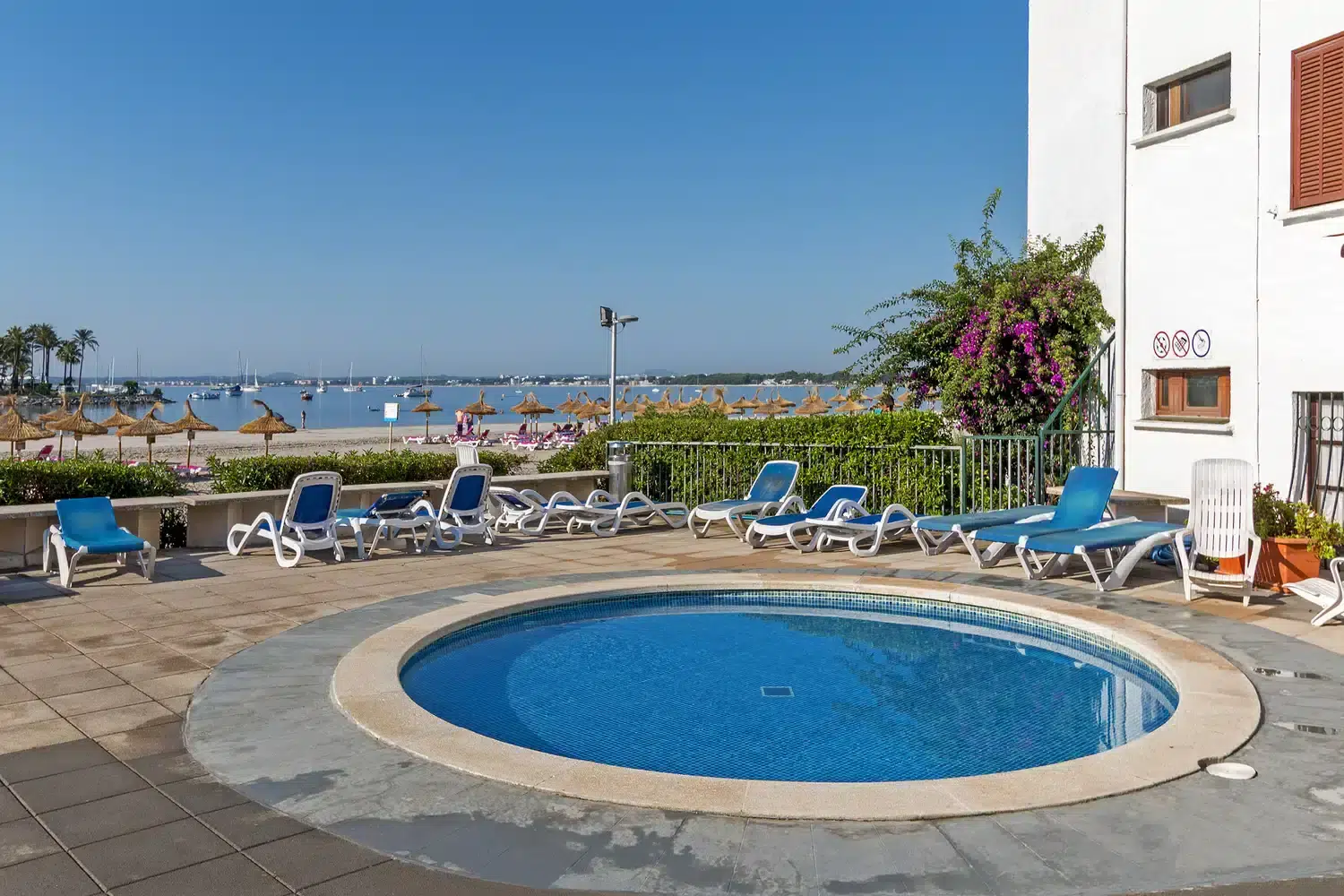 Este apartamento situado en primera línea de playa se ubica dentro del complejo Carabela del Puerto de Alcudia.