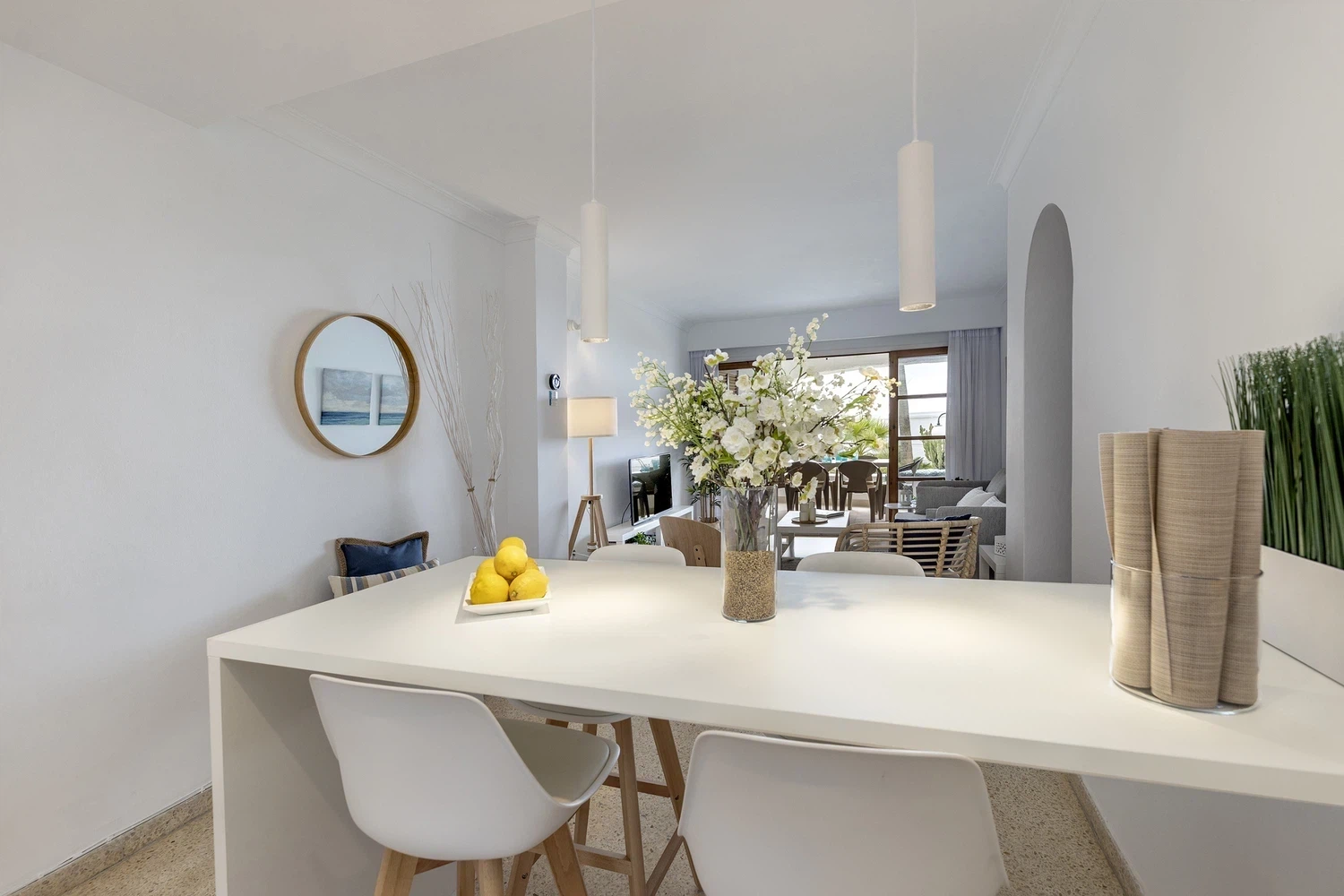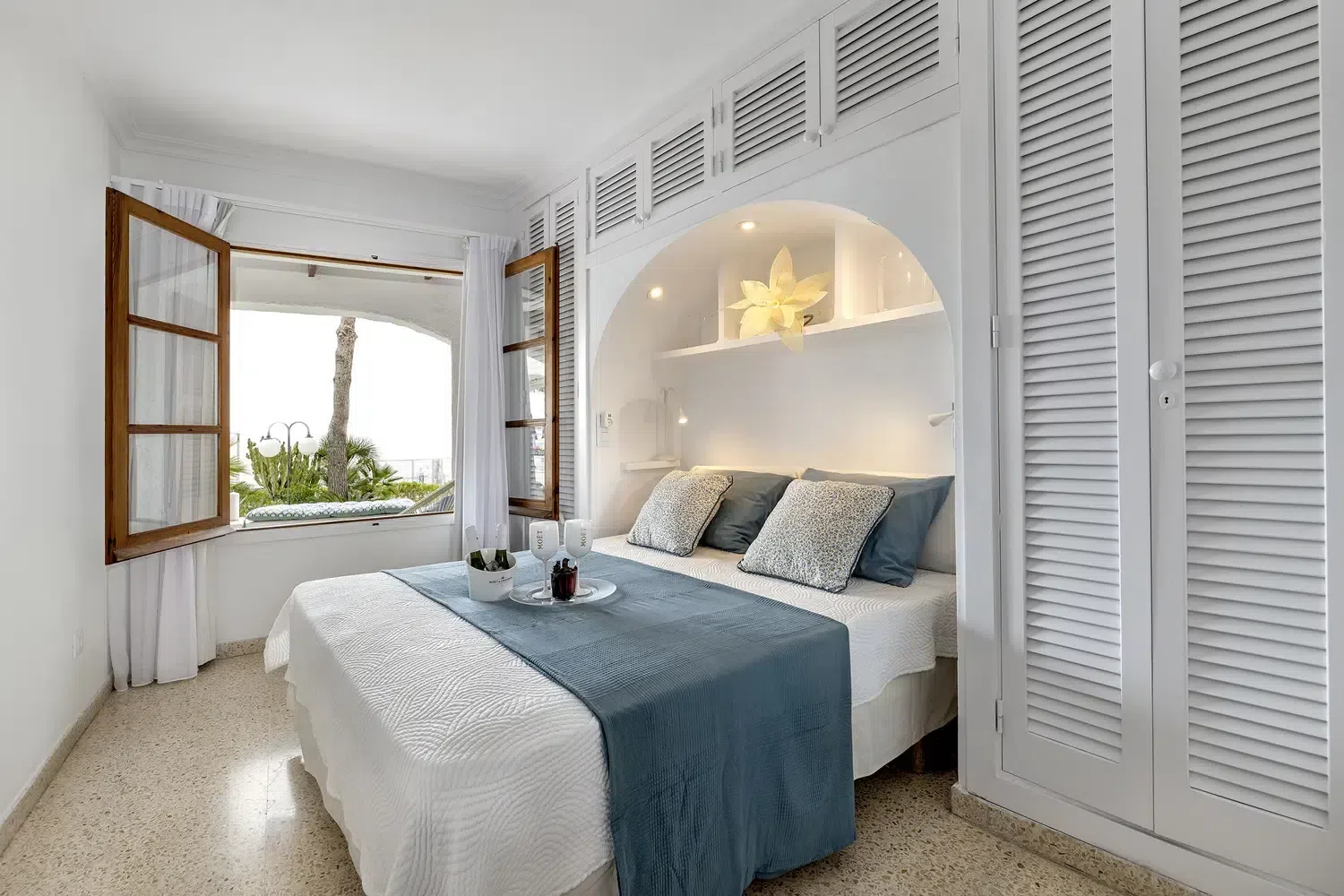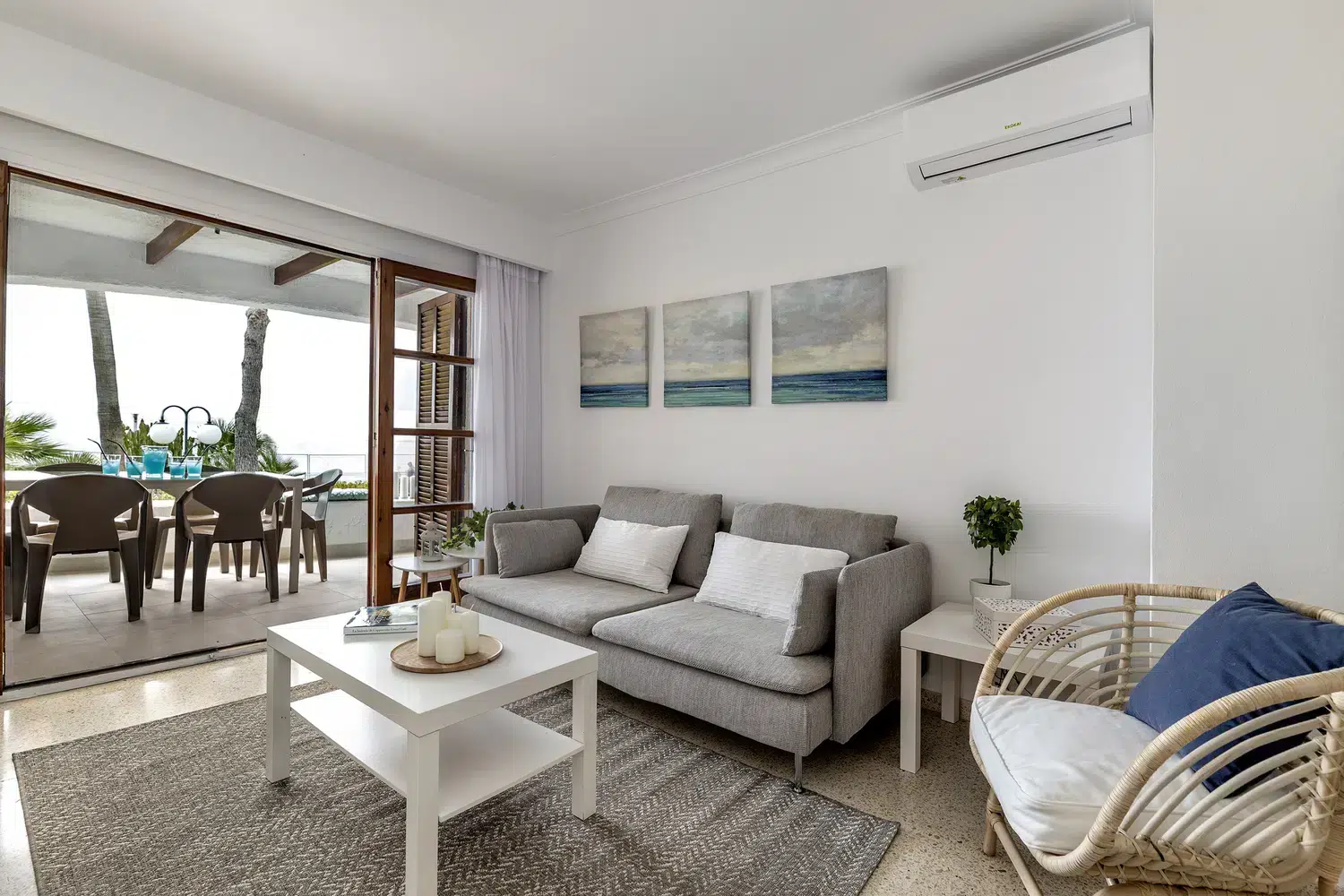 Este apartamento situado en primera línea de playa se ubica dentro del complejo Carabela del Puerto de Alcudia.