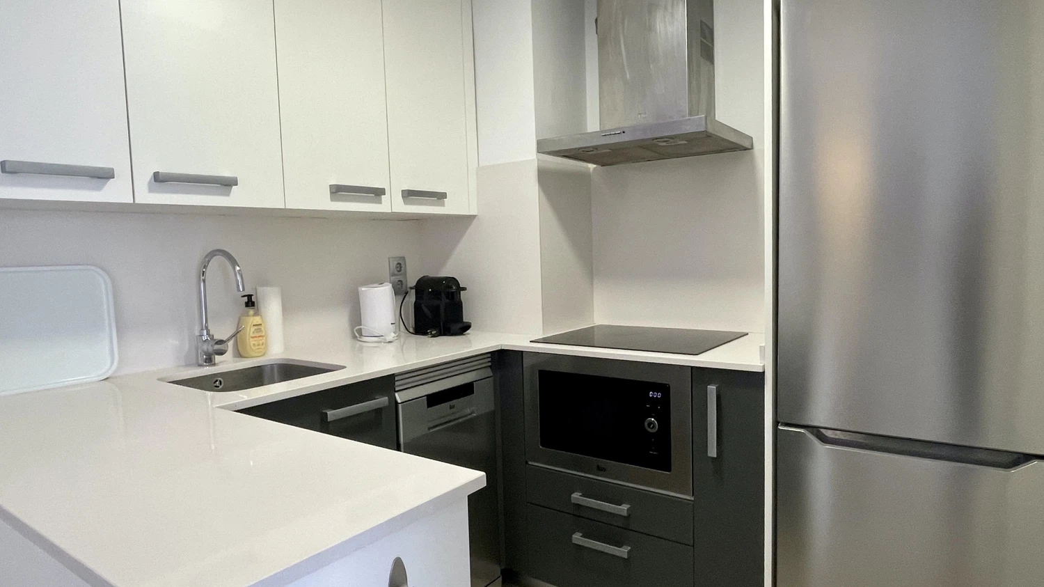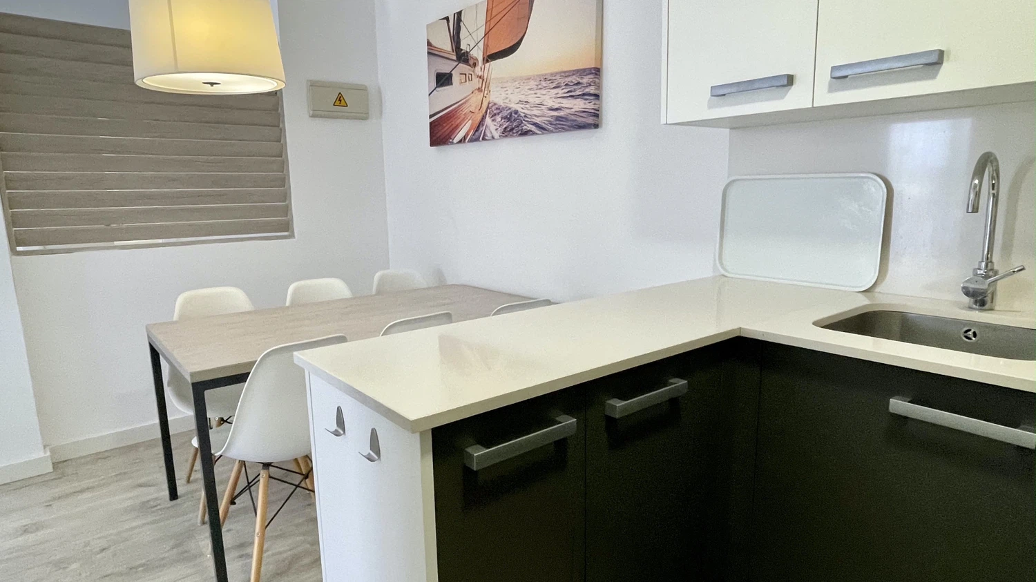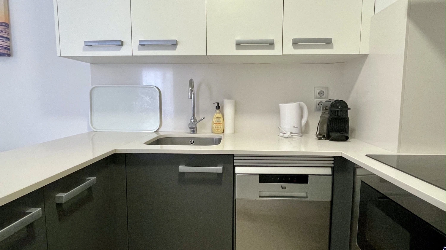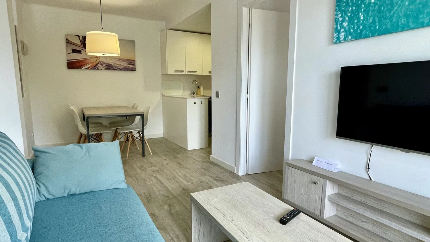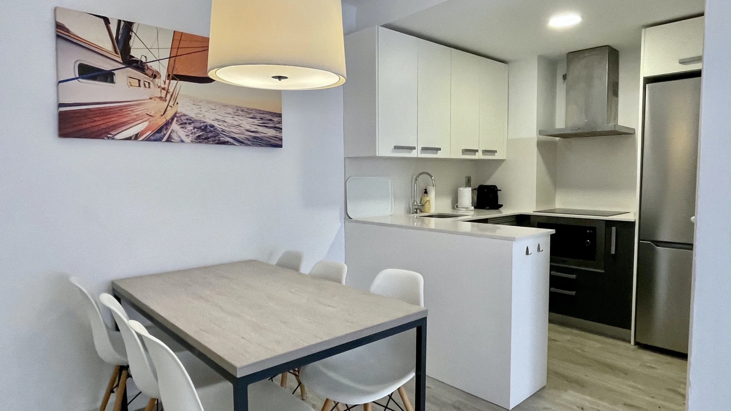 El apartamento ofrece todas las comodidades para una estancia confortable. Destaca su cocina americana completamente equipada con electrodomésticos como nevera, lavadora, lavavajillas, microondas, tostadora y máquina de café. La zona de estar incluye televisión y aire acondicionado con bomba de calor para garantizar tu confort en cualquier época del año.