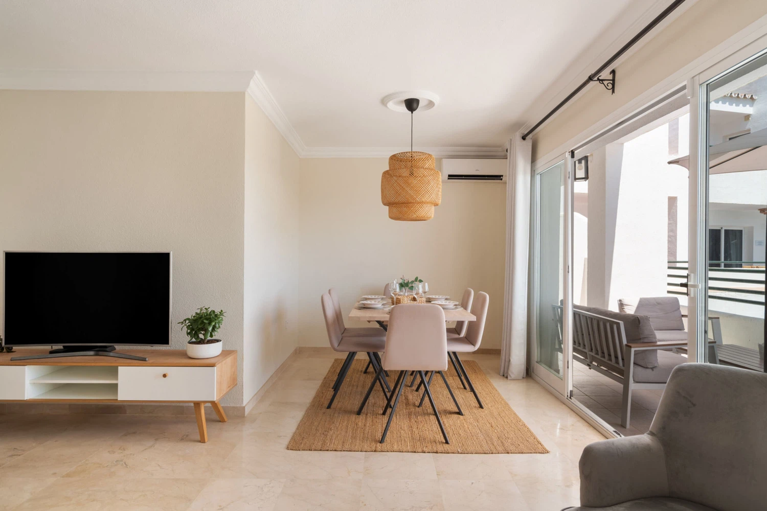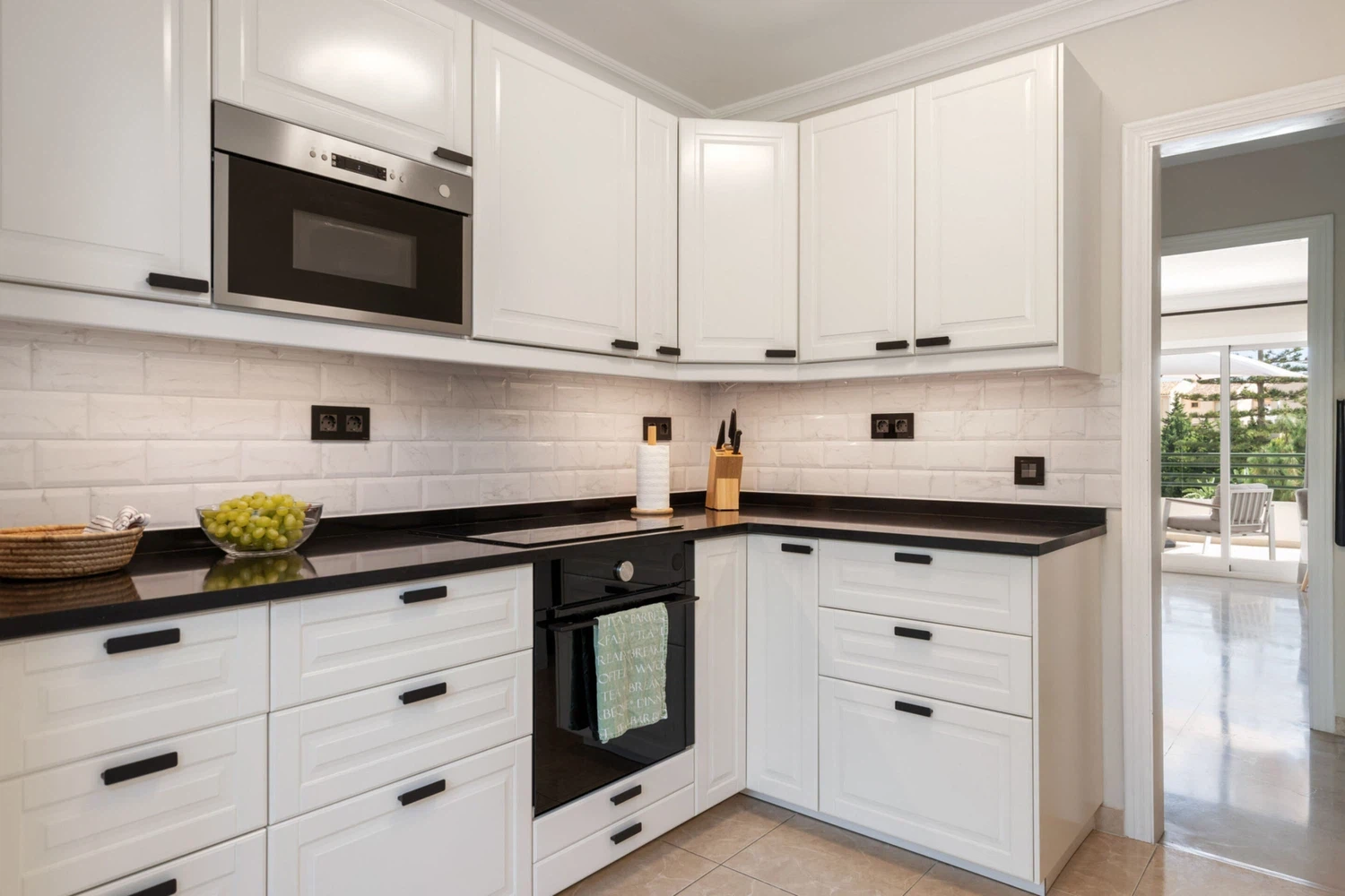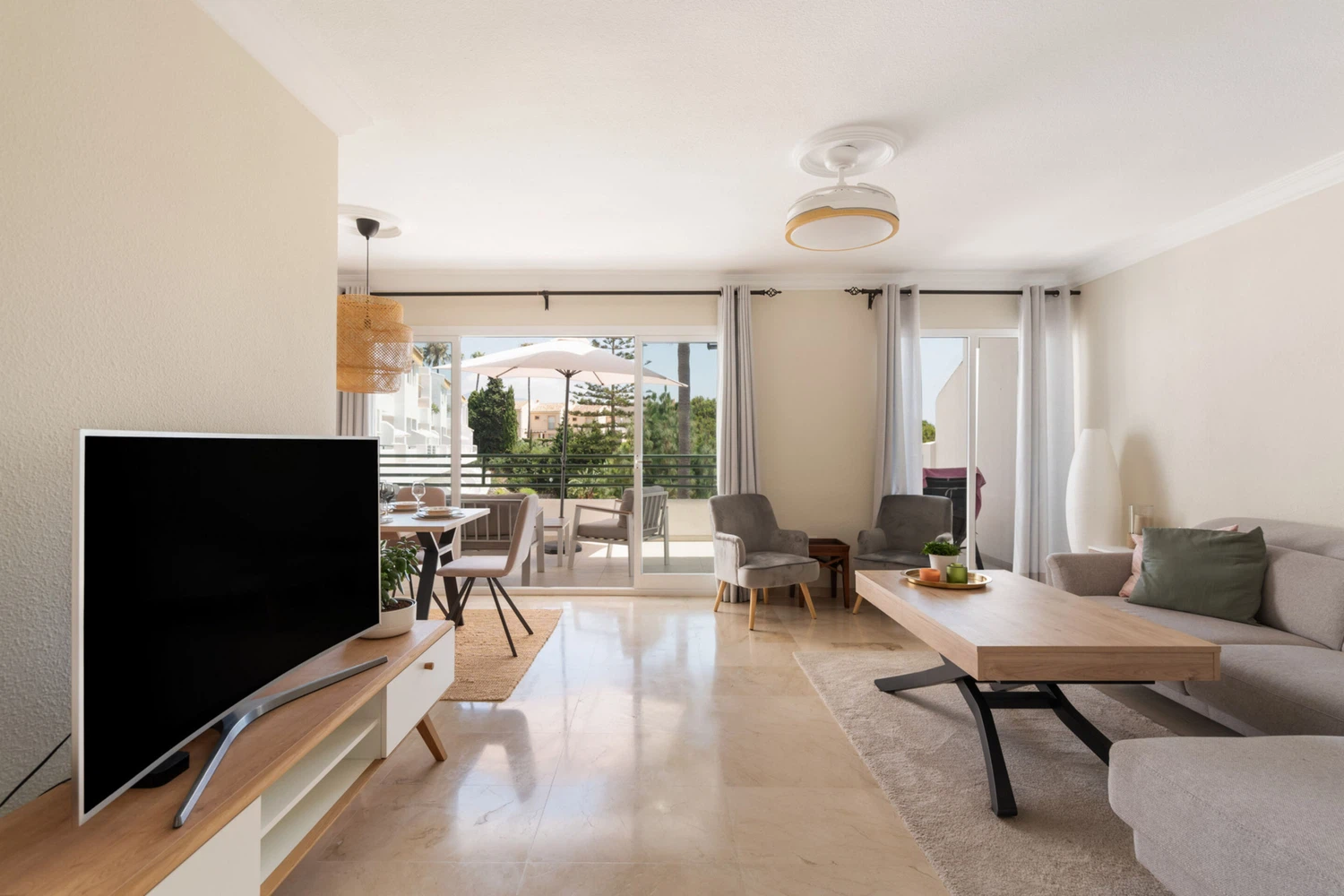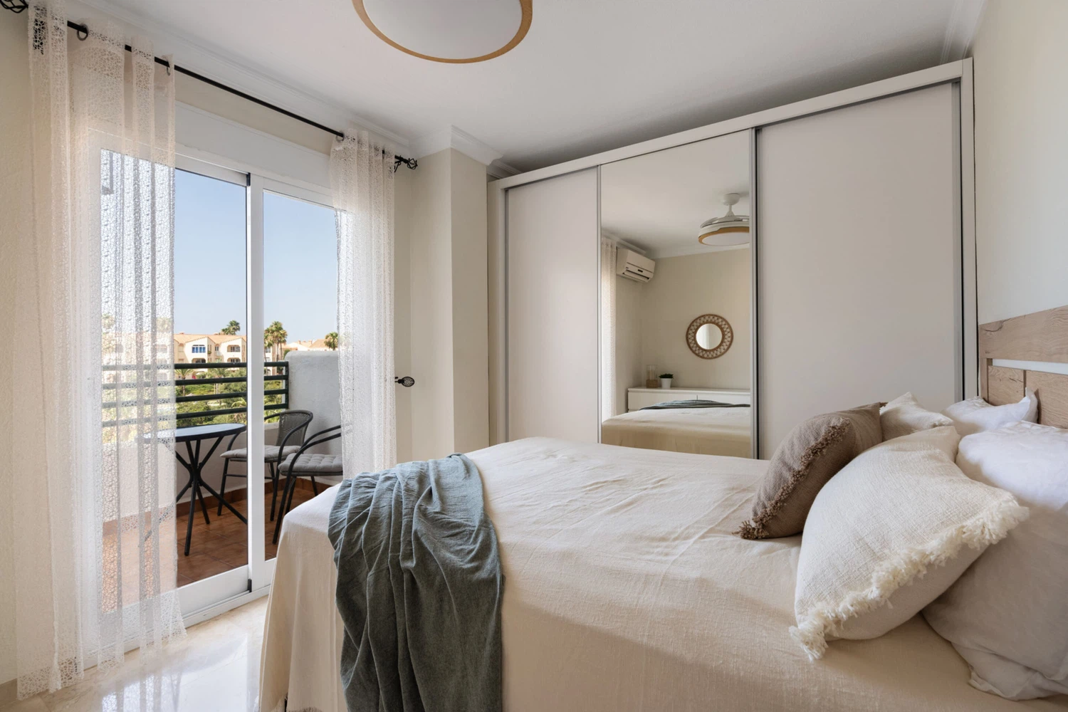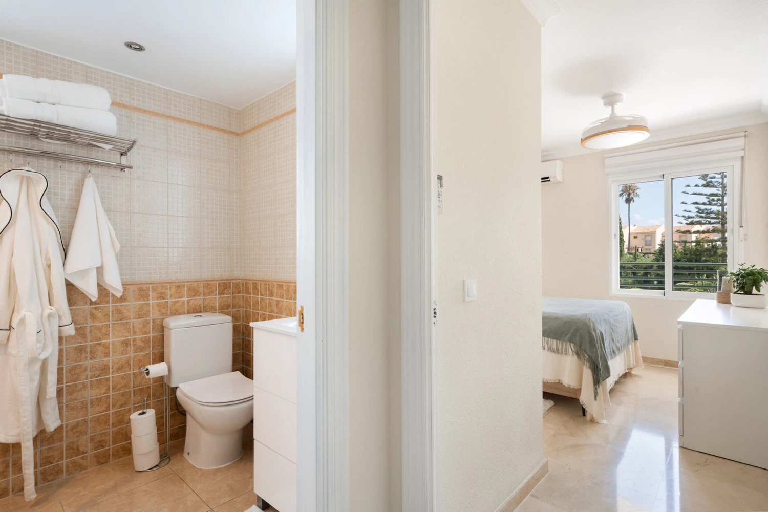 Decorado con mucho gusto y atención al detalle, el apartamento combina funcionalidad con un estilo elegante y relajante. Dispone de una amplia terraza privada con vistas al mar y al jardín, perfecta para desayunos al sol o cenas al aire libre. Además, el dormitorio principal cuenta con su propio balcón privado, donde podrás disfrutar de la brisa mediterránea.