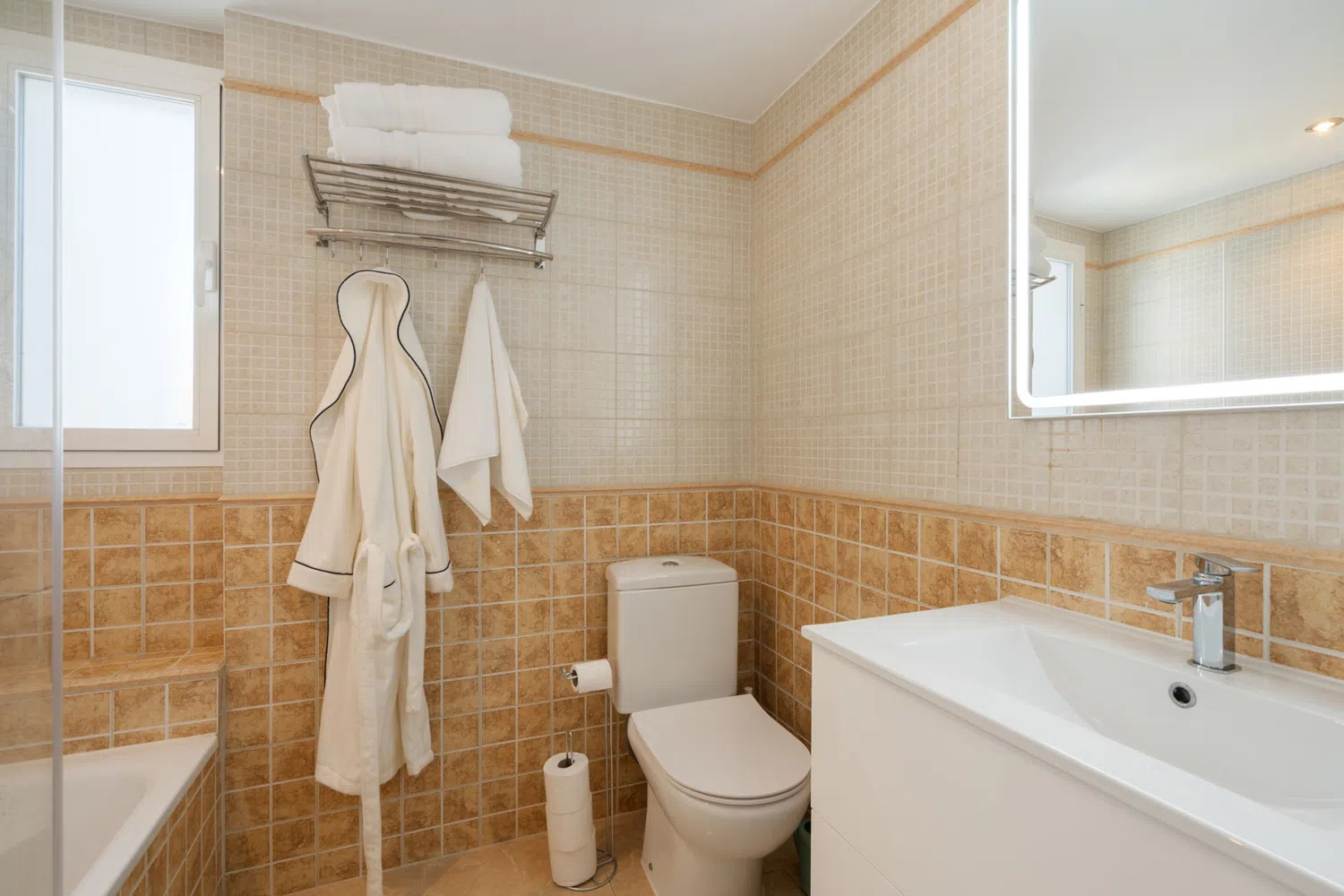 Las tres habitaciones ofrecen espacios acogedores y bien distribuidos, mientras que los dos baños completos, la cocina totalmente equipada y el salón con zona de comedor garantizan una estancia confortable.