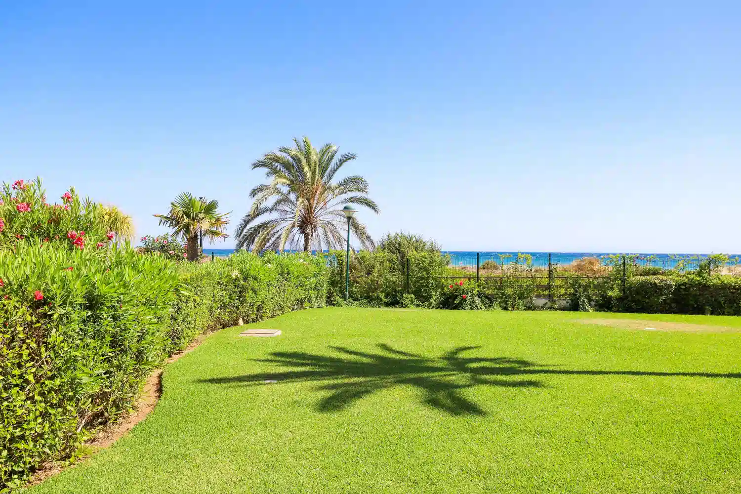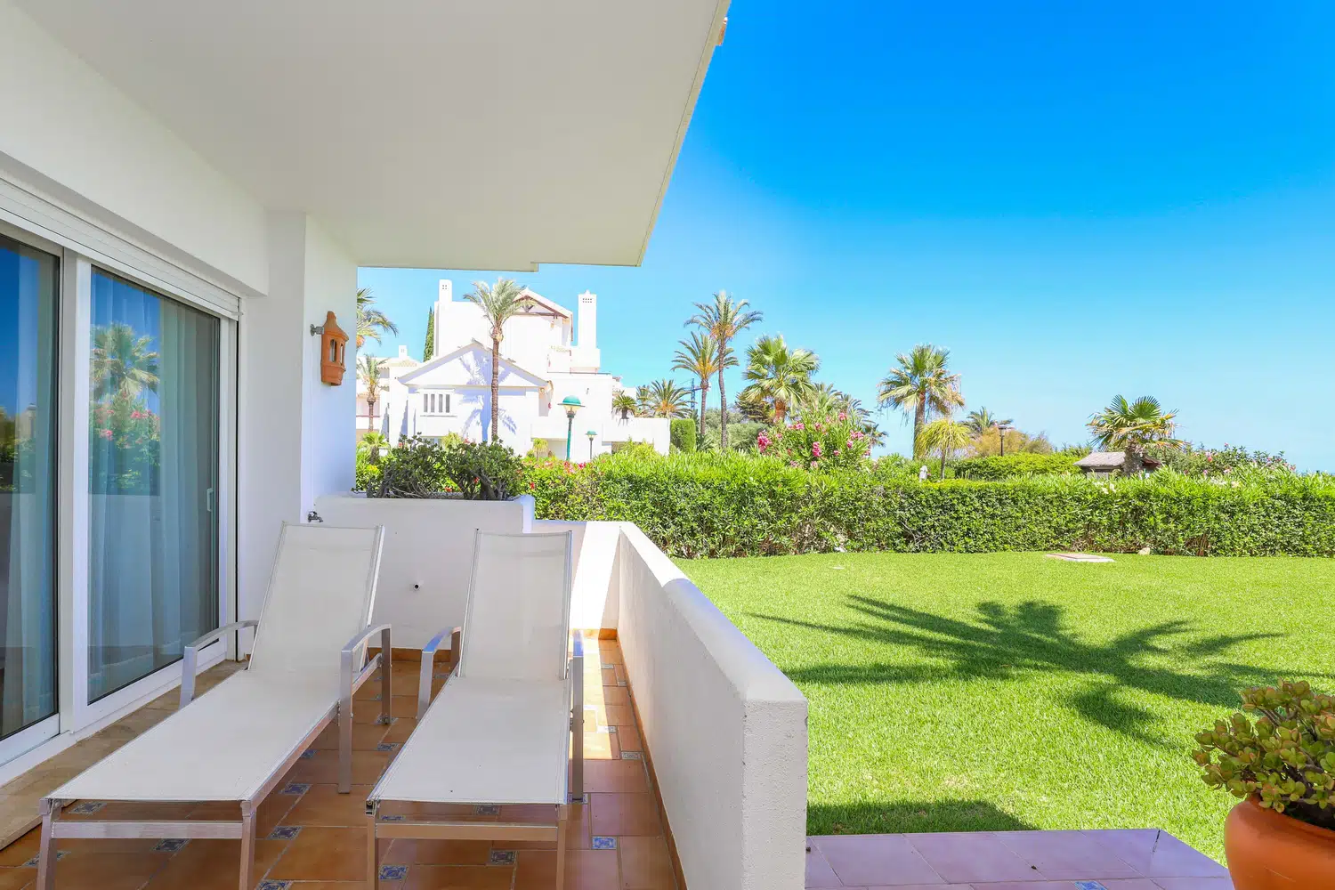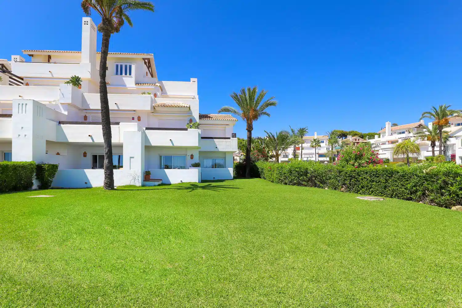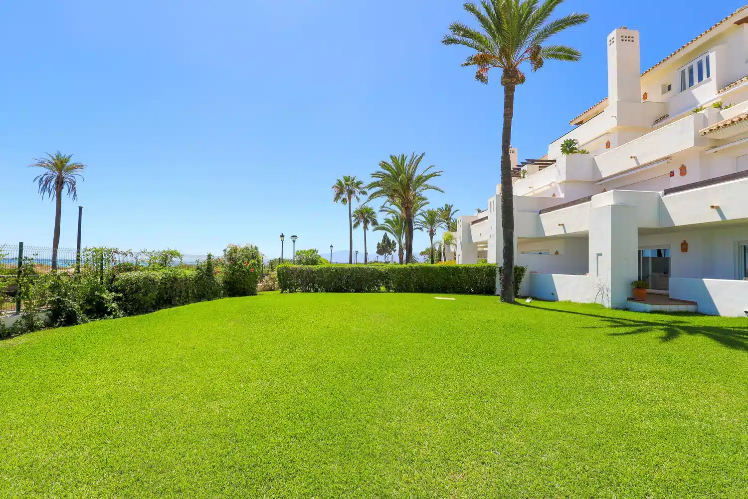 Apartamento en planta baja de estilo andaluz con un gran jardín privado y vistas abiertas al mar ubicado en el famoso complejo residencial Los Monteros Palm Beach con acceso directo a las mejores playas de Marbella Este. La ubicación es muy tranquila incluso en verano y se tarda 30 minutos a pie hasta el centro de Marbella por el paseo marítimo. Este encantador apartamento ofrece tres amplios dormitorios, todos con su propio cuarto de baño. Amplio salón que da a una gran terraza cubierta rodeada de cuidados jardines privados con vistas abiertas al mar y el sonido de olas. La cocina está totalmente equipada, tiene una mesa para desayunar y un lavadero adyacente. Aire acondicionado en todo el apartamento, Wi-Fi rápido, Smart TV 65'. Piscina más cercana a solo unos pasos. 2 plazas de aparcamiento en el garaje con ascensor.