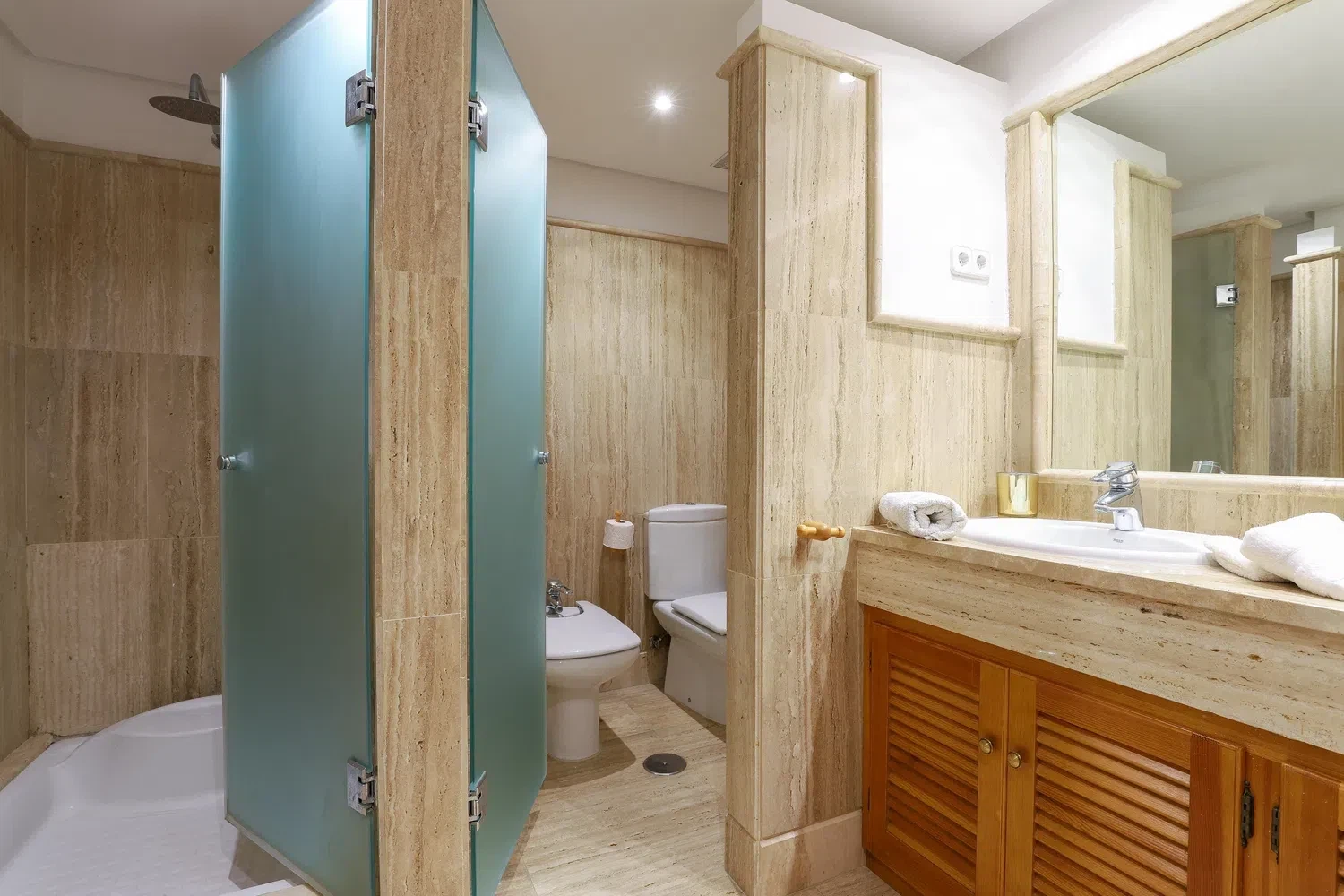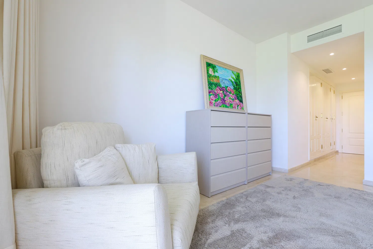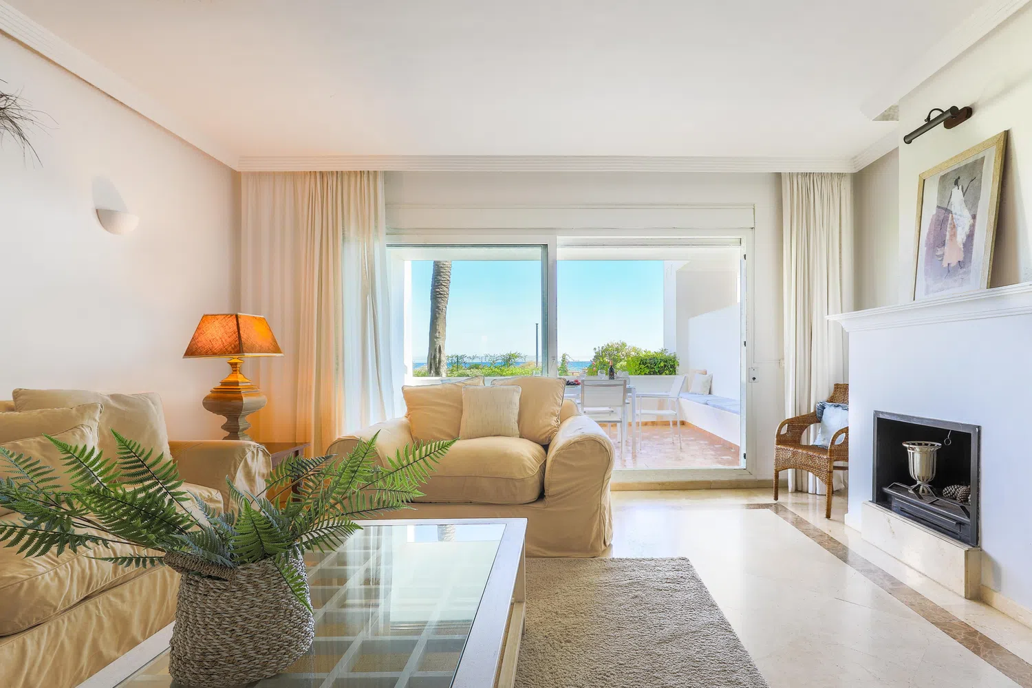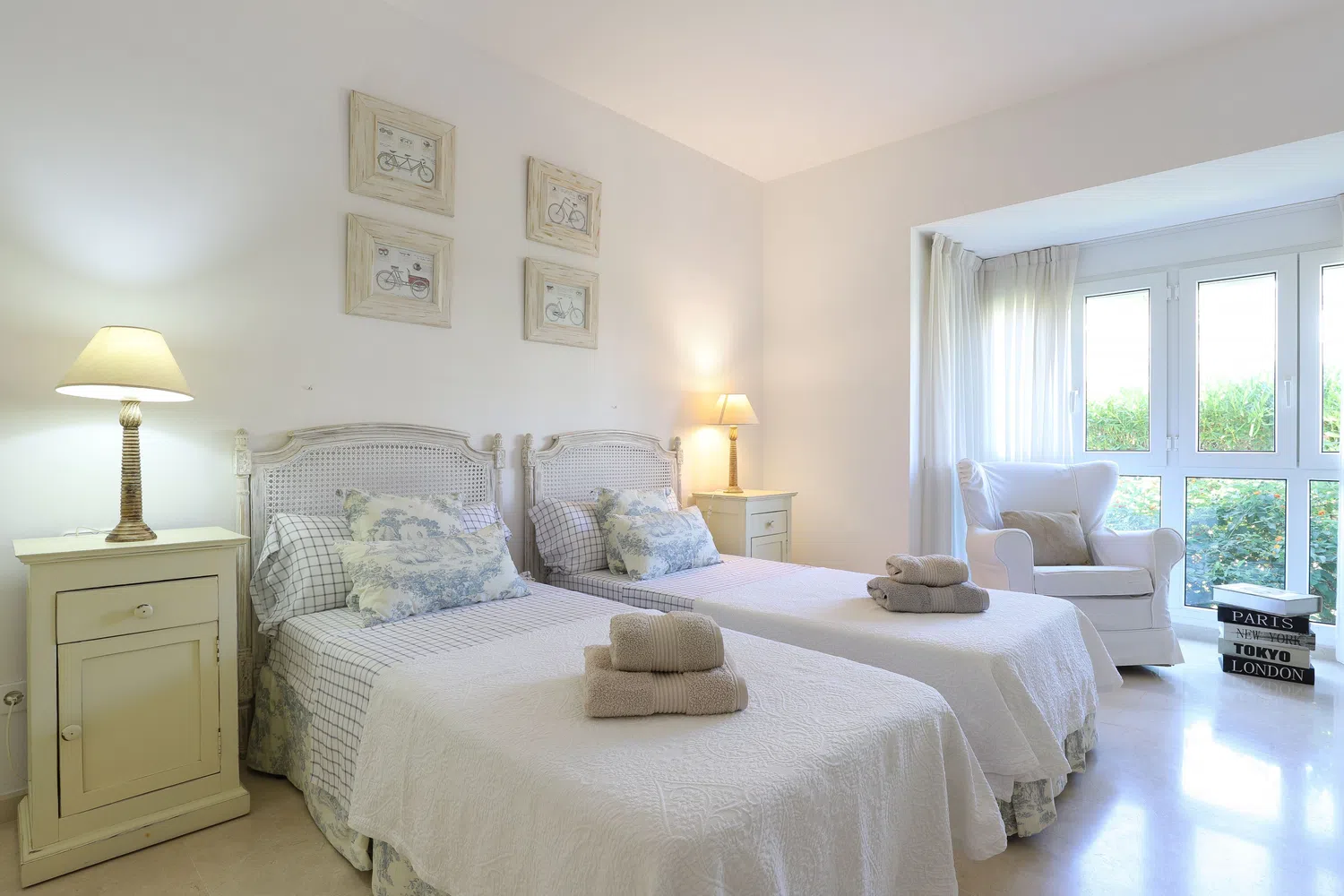 Apartamento en planta baja de estilo andaluz con un gran jardín privado y vistas abiertas al mar ubicado en el famoso complejo residencial Los Monteros Palm Beach con acceso directo a las mejores playas de Marbella Este. La ubicación es muy tranquila incluso en verano y se tarda 30 minutos a pie hasta el centro de Marbella por el paseo marítimo. Este encantador apartamento ofrece tres amplios dormitorios, todos con su propio cuarto de baño. Amplio salón que da a una gran terraza cubierta rodeada de cuidados jardines privados con vistas abiertas al mar y el sonido de olas. La cocina está totalmente equipada, tiene una mesa para desayunar y un lavadero adyacente. Aire acondicionado en todo el apartamento, Wi-Fi rápido, Smart TV 65'. Piscina más cercana a solo unos pasos. 2 plazas de aparcamiento en el garaje con ascensor.