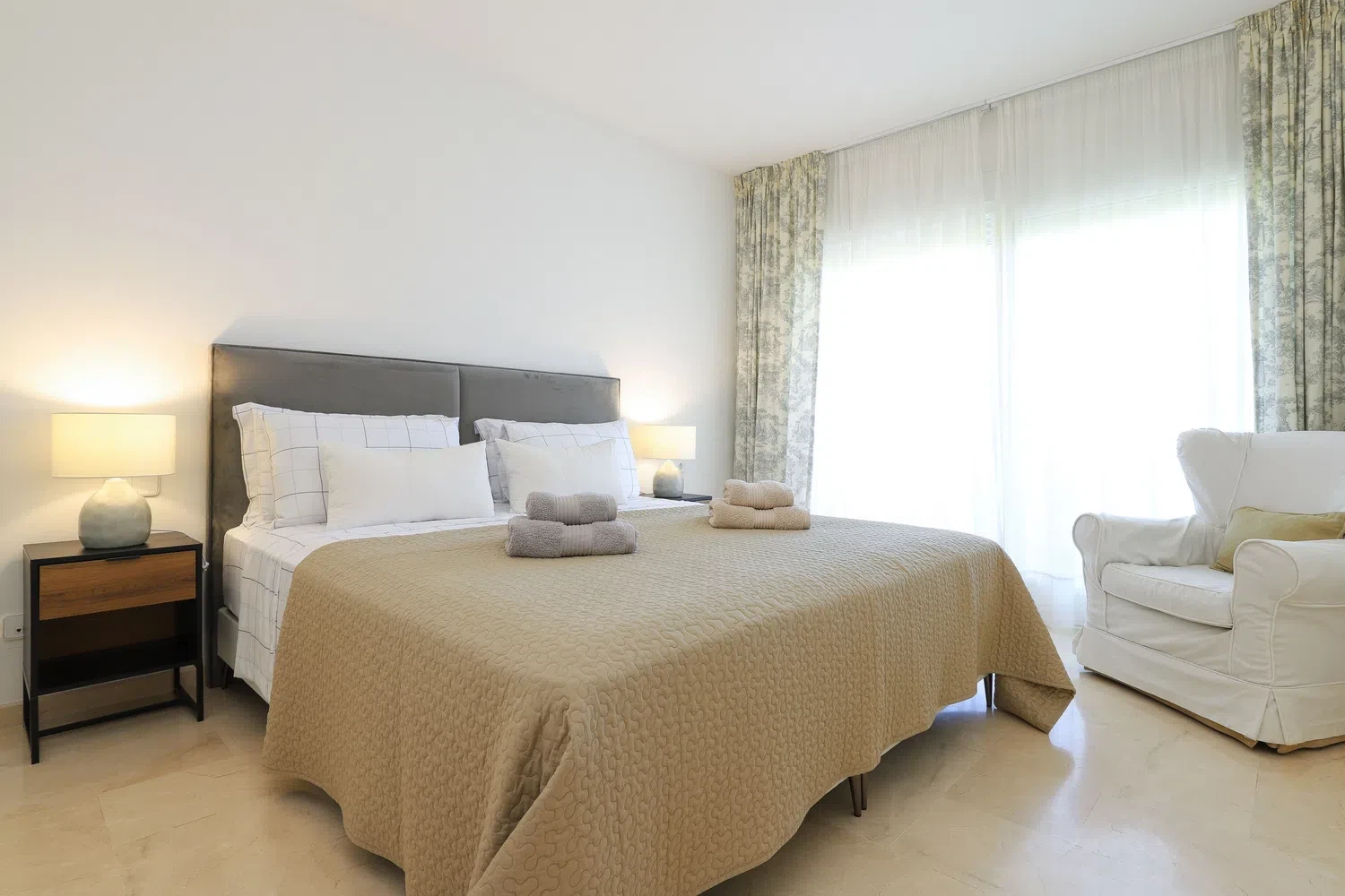 El apartamento ubicado en un complejo de lujo Los Monteros Palm Beach vigilado las 24 horas con cuidados jardines y 2 grandes piscinas con muchas tumbonas. A solo unos pasos del apartamento encontrará un acceso directo al paseo marítimo, a las mejores playas de Marbella y dunas de arena (reserva ecológica - Dunas de Marbella). Restaurante Palm Beach justo al lado del complejo que sirve excelentes comidas y bebidas durante la temporada de verano. Famoso restaurante de playa Trocadero Arena, así como instalaciones de kitesurf y windsurf a solo 5 minutos a pie. Marbella está a sólo 30 minutos andando por la playa.