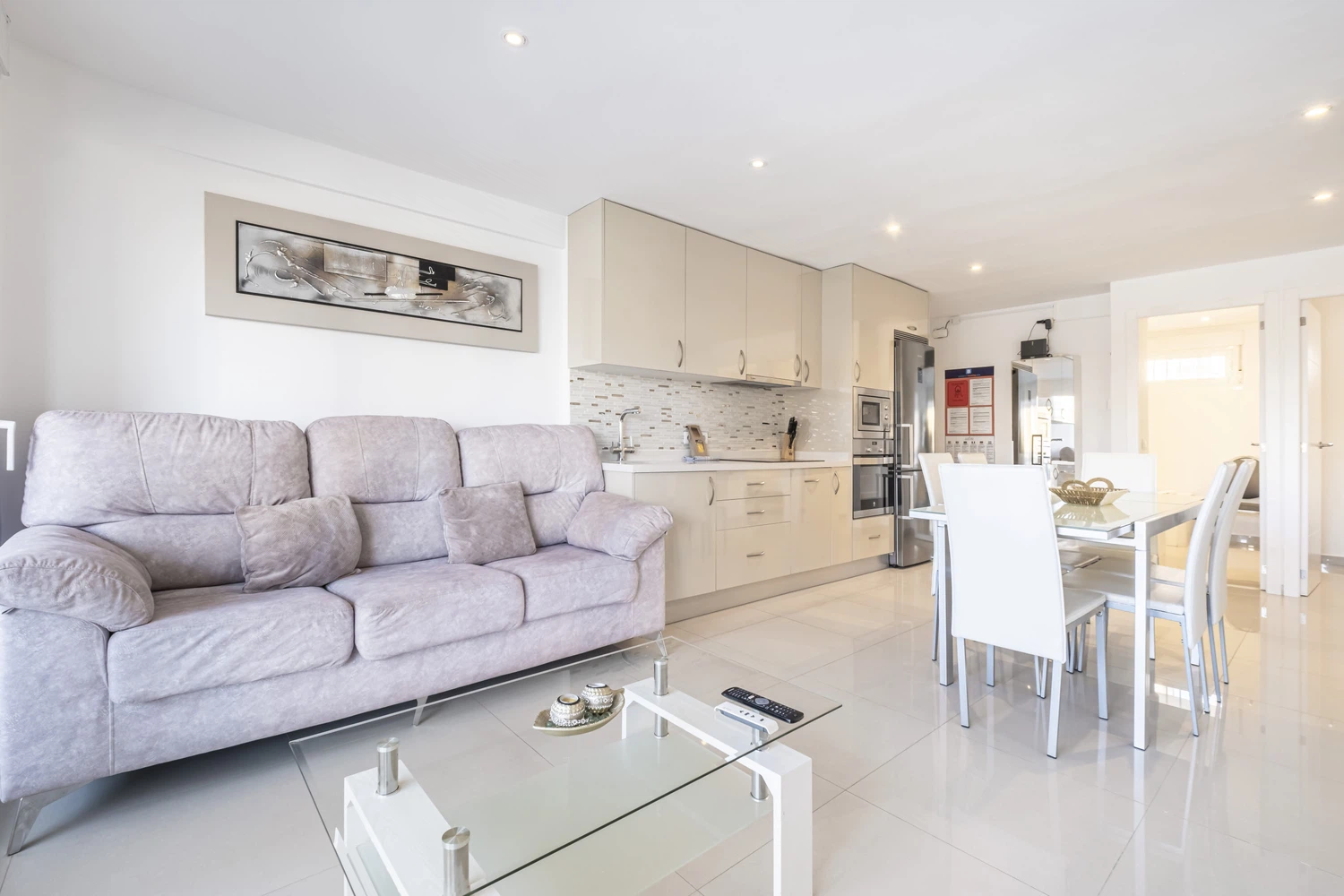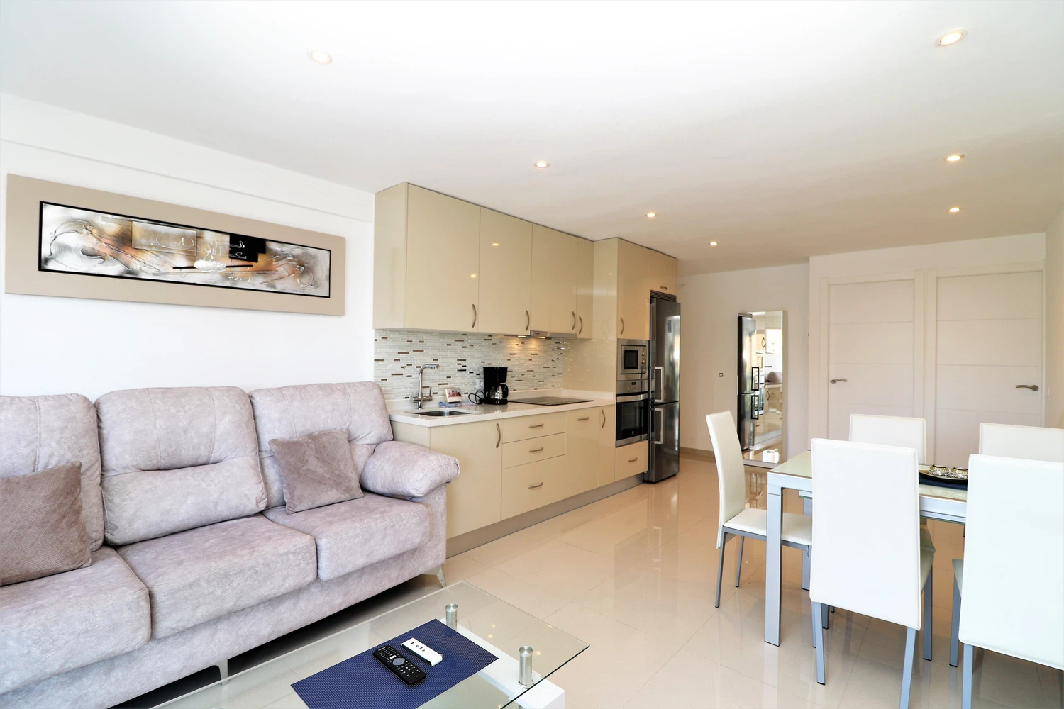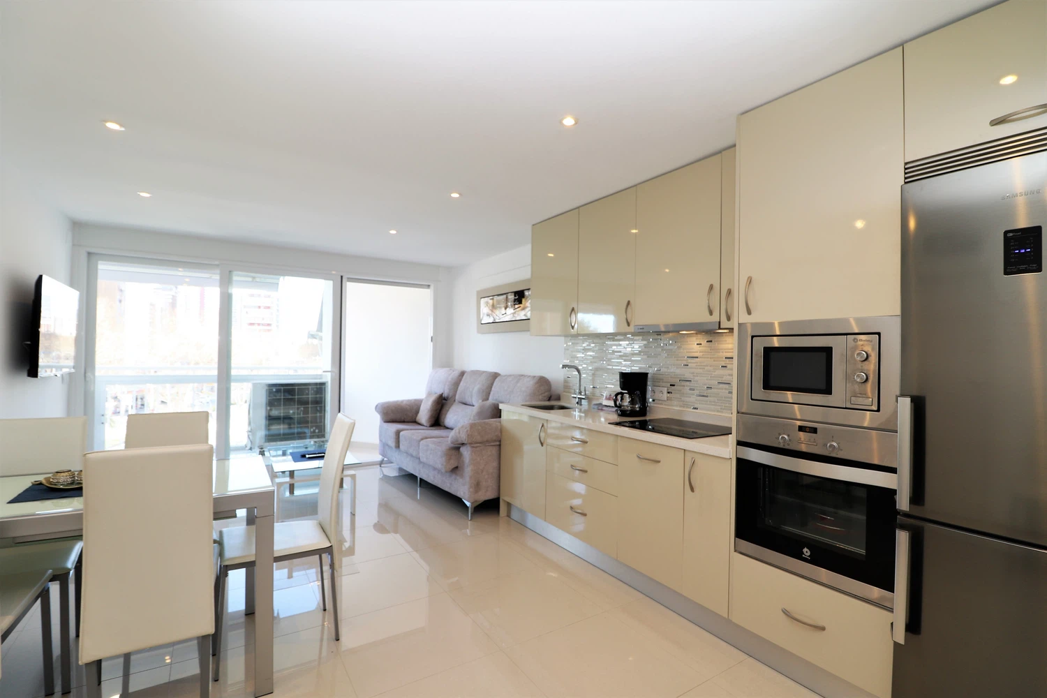 La cocina americana de inducción, está equipada con nevera, lavadora, microondas, horno, congelador, lavavajillas, vajilla/cubertería, utensilios/cocina, cafetera, tostadora, hervidor de agua y exprimidor.