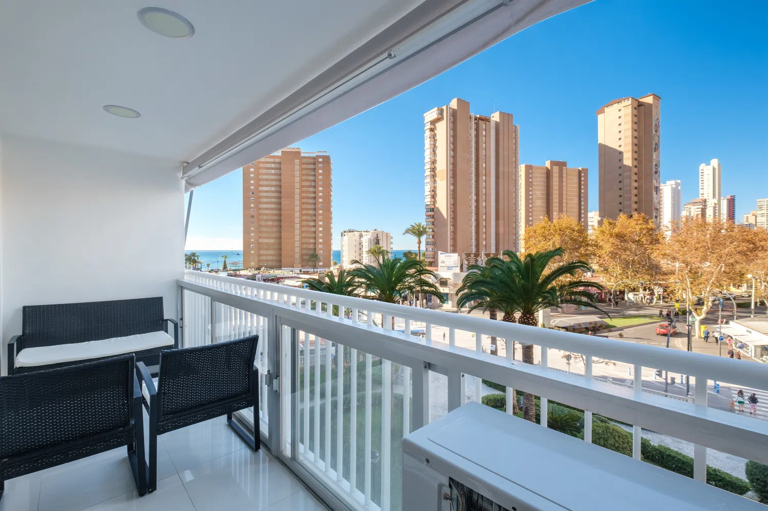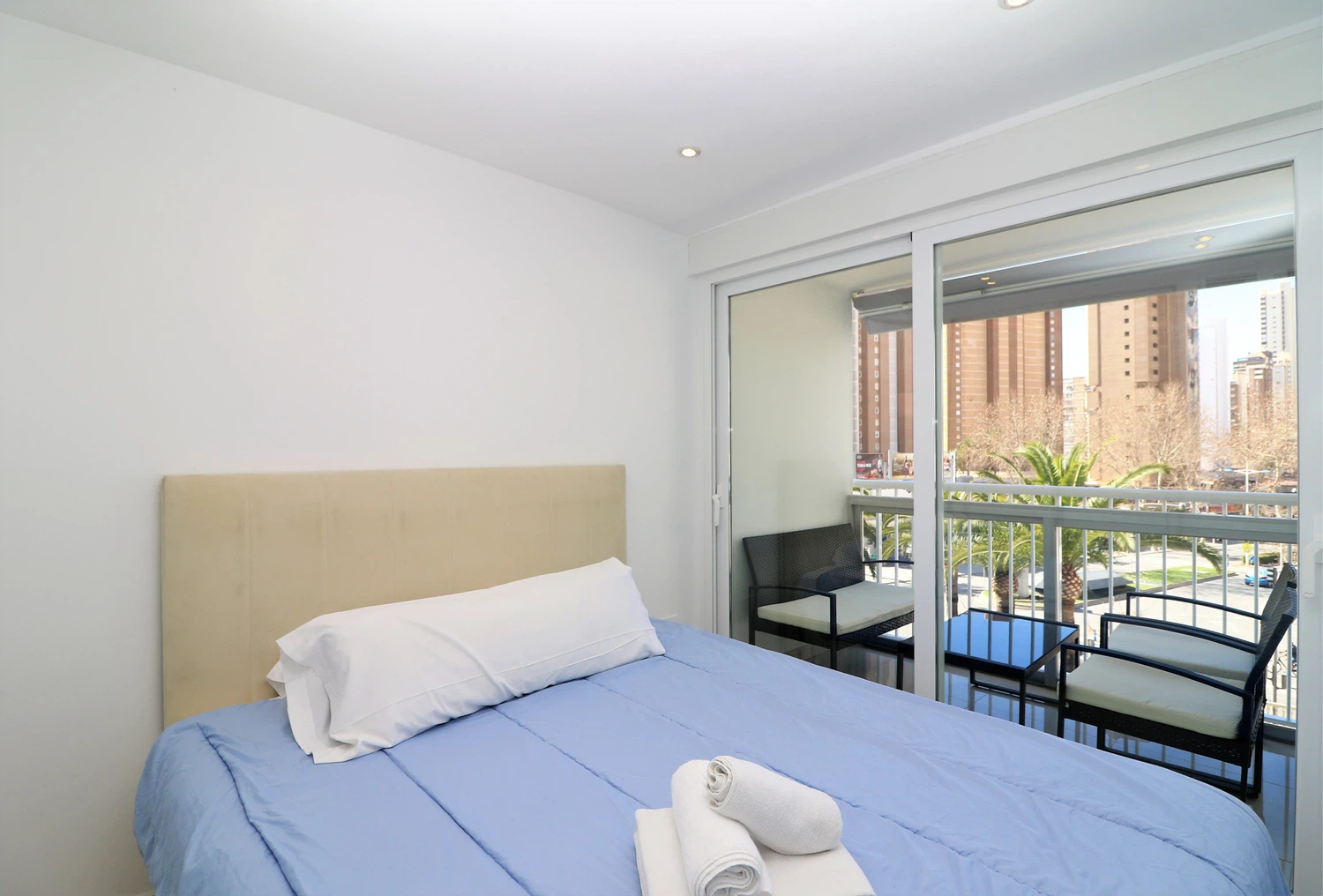 Apartamento a escasos metros de la playa Levante, Benidorm. Posee 3 dormitorios y capacidad para 6 personas.