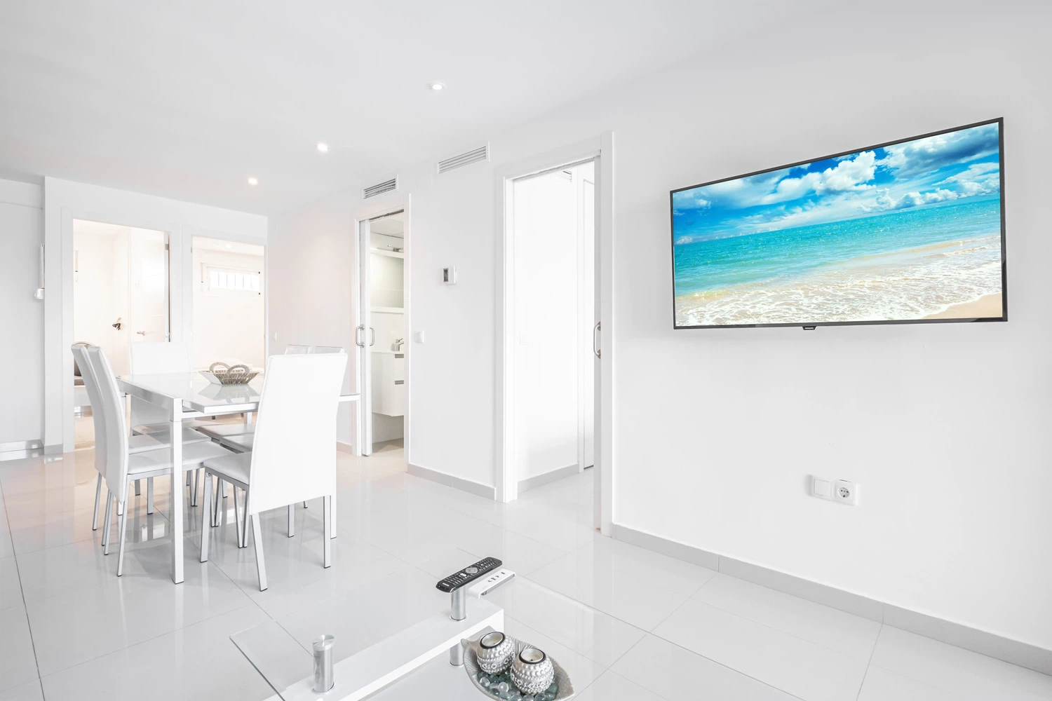 Dispone de ascensor, 10 m² de terraza abierta, acceso a internet de alta velocidad por fibra (wifi), aire acondicionado y calefacción por bomba de calor en todo el alojamiento a través de conductos, parking al aire libre en el mismo edificio sujeto a disponibilidad a la llegada, 1 Televisor Smart TV, plancha.