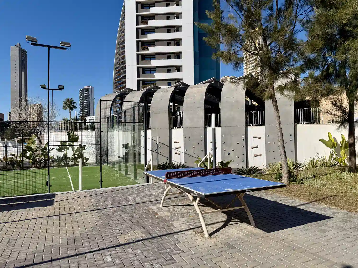 Es ideal para disfrutar de Benidorm con todos lo servicios posibles ya que las instalaciones comunitarias ofrecen piscina infinita al aire libre de temporada, jacuzzi climatizado exterior, gimnasio, bar, pista de pádel, tenis, baloncesto, fútbol, ping-pong y rocódromo.