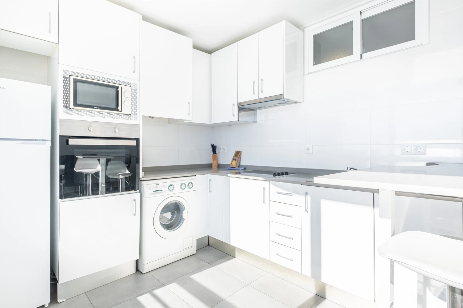 La cocina americana, de vitrocerámica, está equipada con nevera, microondas, horno, congelador, lavadora, vajilla/cubertería, utensilios/cocina, cafetera, tostadora, hervidor de agua y exprimidor.