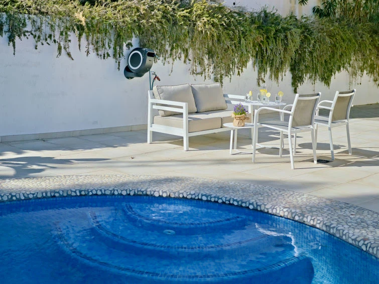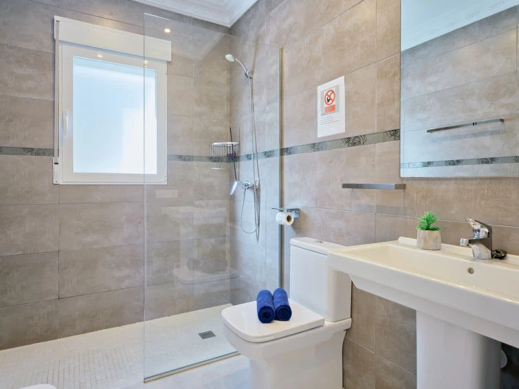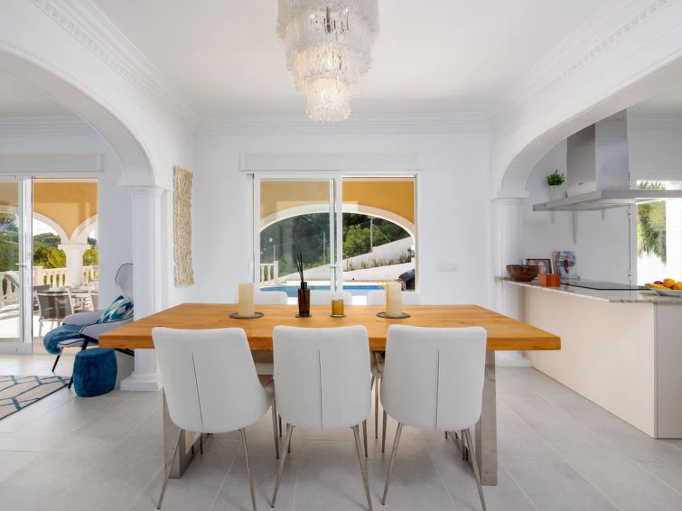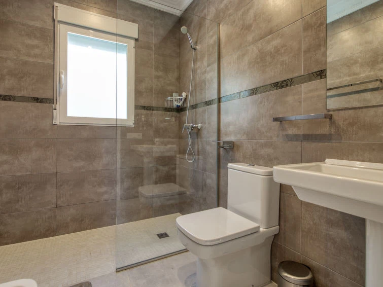 Villa "Ewa", muy amplia, muy bonita, muy confortable. A 600 m del mar, a 3.5 km de la playa. Privado: jardín en diferentes niveles bonito, cuidado, piscina en forma de riñon (9 x 4 m, 85 - 210 cm de profundidad, Disponible por temporada: 01.Ene. - 31.Dic.) con escalera interior. Ducha exterior, porche, terraza, muebles de jardín, barbacoa, Aparcamiento (para 2 coches) en el mismo terreno. Tienda 800 m, supermercado 1.6 km, restaurante, café 600 m, parada de autobús "Toscamar" 3.7 km, playa de arena "El Arenal" 4.5 km, playa de piedras "La Granadella" 3.5 km. Escuela de surf 3.5 km, tenis 1.6 km. El propietario no acepta grupos. El propietario no acepta grupos de adolescentes/jóvenes. A tener en cuenta: primera planta cerrada y no ocupada.