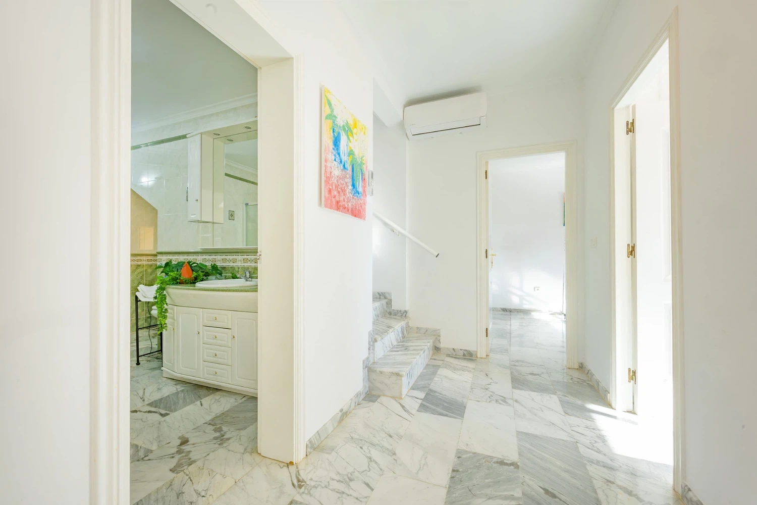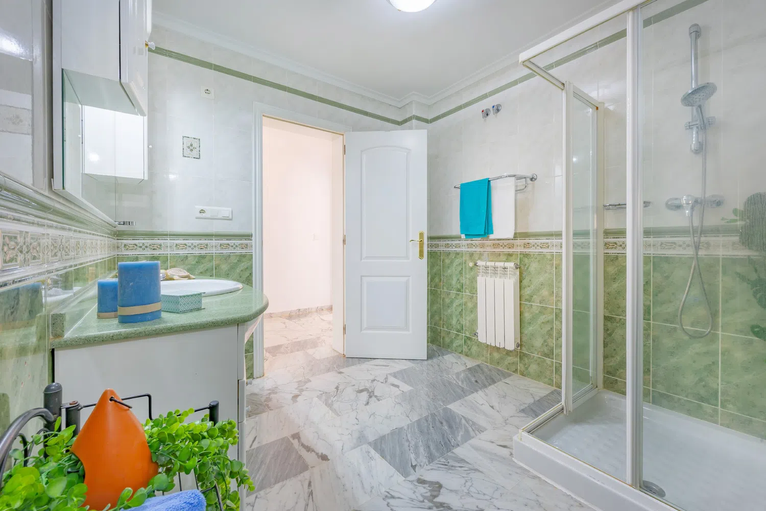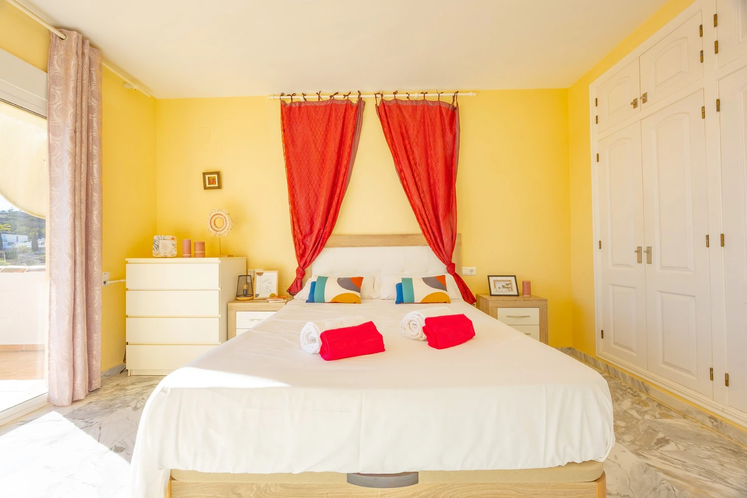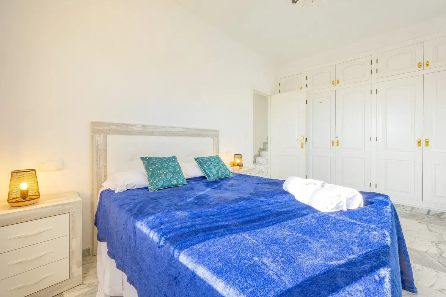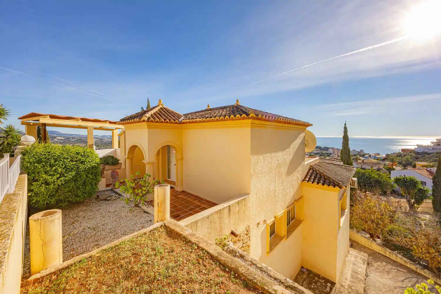 La bonita villa se distribuye en la PLANTA ALTA, donde encontrará un acogedor hall de entrada, un dormitorio con cama de matrimonio y acceso a un soleado solárium con vistas impresionantes al mar. Este dormitorio también cuenta con un baño en suite equipado con bañera. Descendiendo por escaleras interiores, llegamos a la PLANTA BAJA, que ofrece un amplio salón-comedor con TV SAT/TDT y vistas al mar, con acceso a una terraza cubierta y la zona de la piscina. La cocina abierta, totalmente equipada con cocina de gas y lavavajillas, se convierte en el corazón de la vivienda. Dos dormitorios más, ambos con vistas al mar (uno con cama de matrimonio y otro con dos camas individuales), junto con otro cuarto de baño con ducha, completan las comodidades interiores.