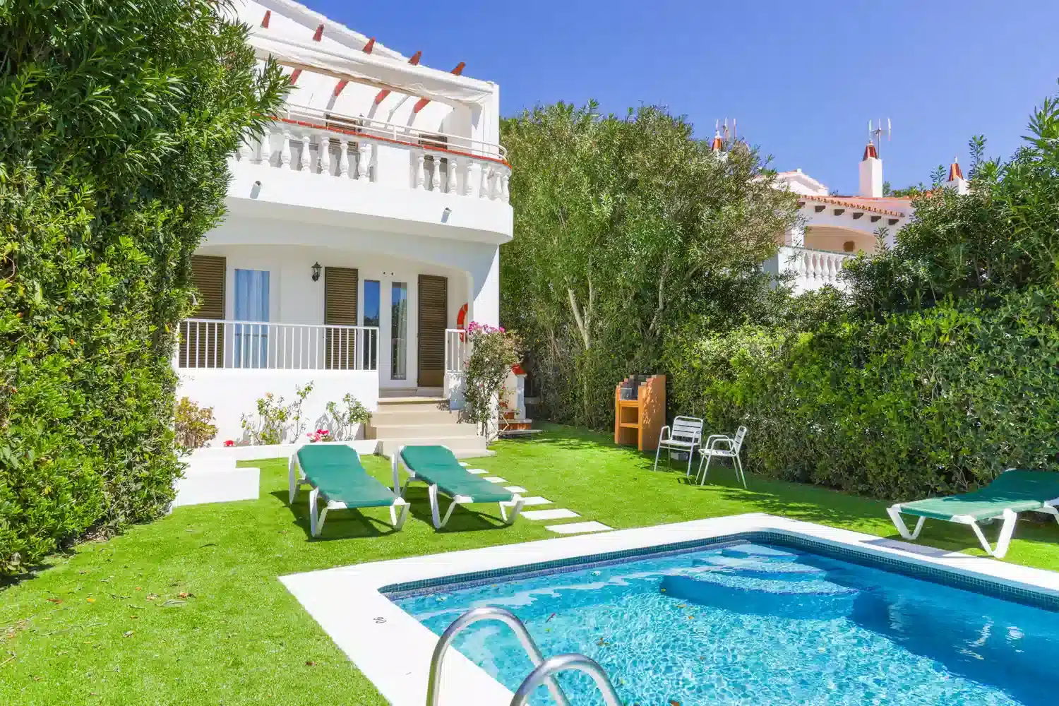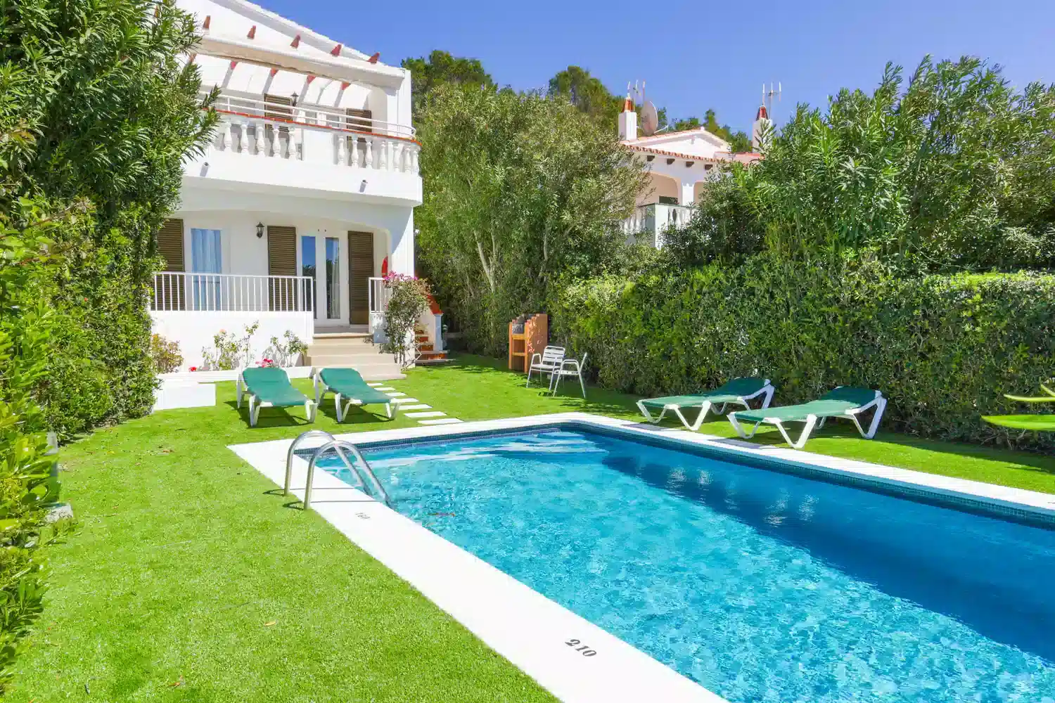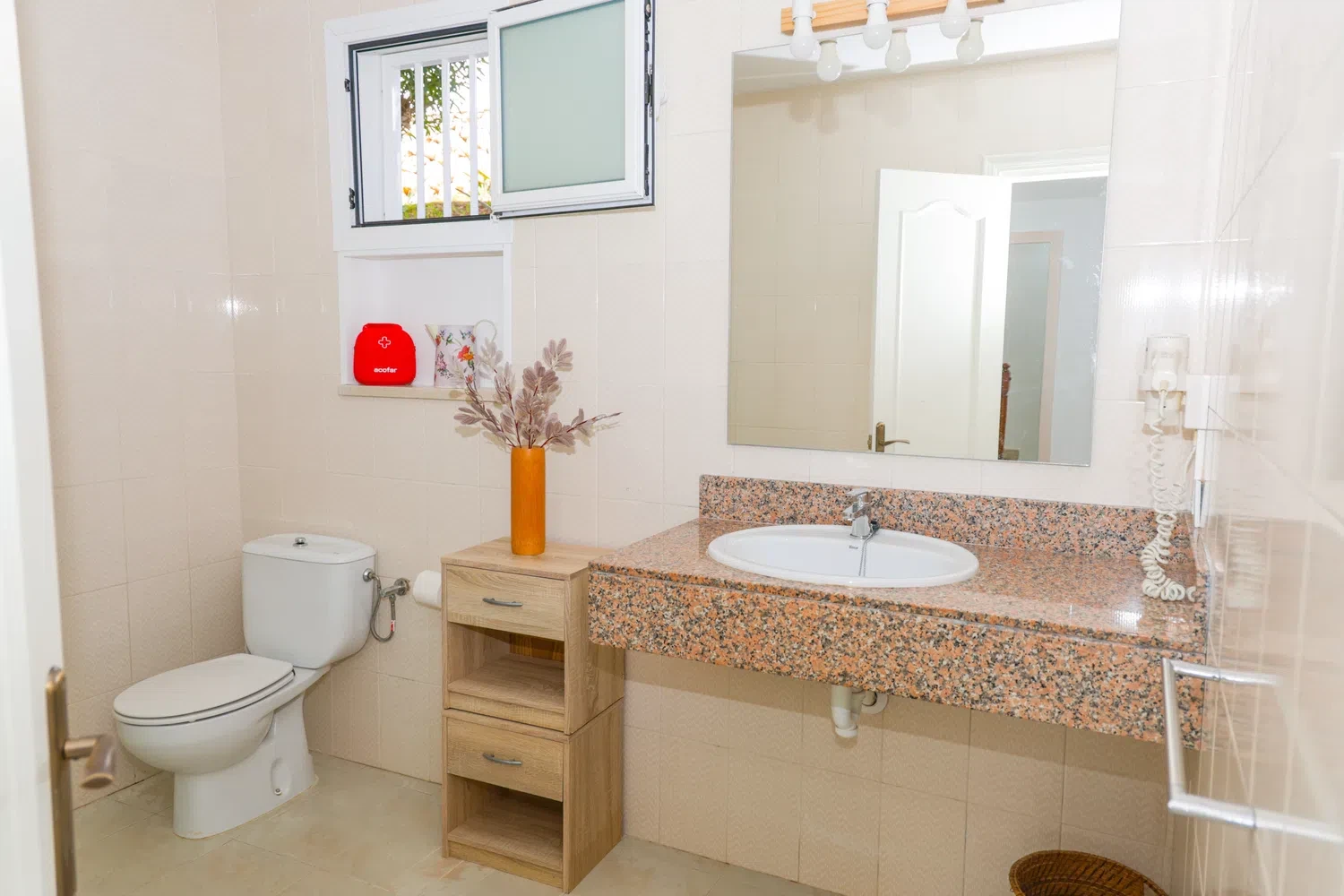 Las Villas Zodiaco son 2 villas juntas adosadas. La villa Zodiaco Acuario se encuentra en la urb. de Son bou a unos 600mts de la playa del mismo nombre. Consta de 3 dormitorios dobles con capacidad máxima hasta2 personas. Tiene espacioso salón-comedor con ventanal que da acceso a la terraza con unas magníficas vistas al mar y a la puesta de sol de Menorca. La planta noble consta de salón con ventiladores de techo, WIFI gratuito para los clientes, Smart TV, bluetooth. Hermosa cocina, bien equipada, con horno eléctrico, vitrocerámica, lavaplatos, cafetera eléctrica y de capsulas, kettle, tostador y microondas, nevera con congelador. Al lado del salón hay un baño con bañera y secador de pelo. En la planta inferior están distribuidos los 3 dormitorios dobles, uno de ellos con cama de matrimonio y dos de ellos con 2 camas individuales cada uno. Todos los dormitorios disponen de aire acondicionado. Hay un baño con ducha con secador de pelo.