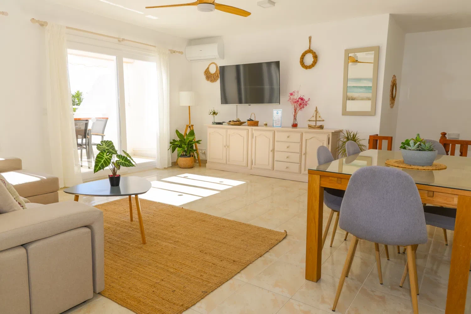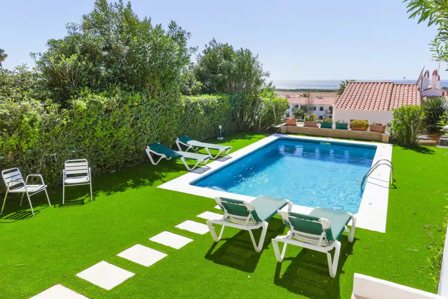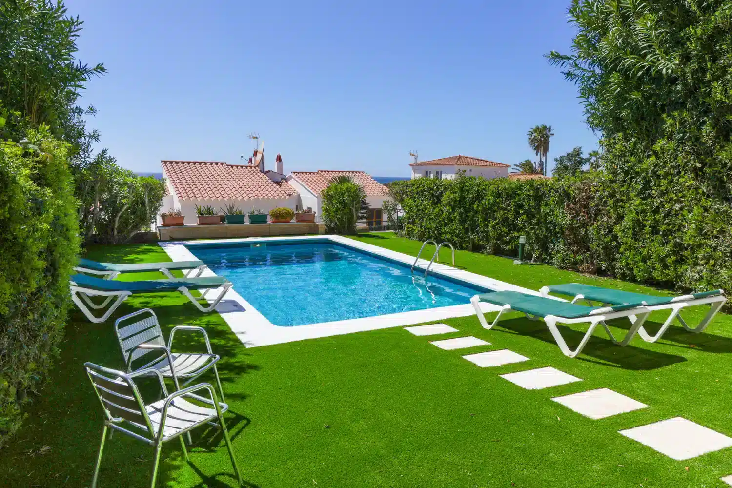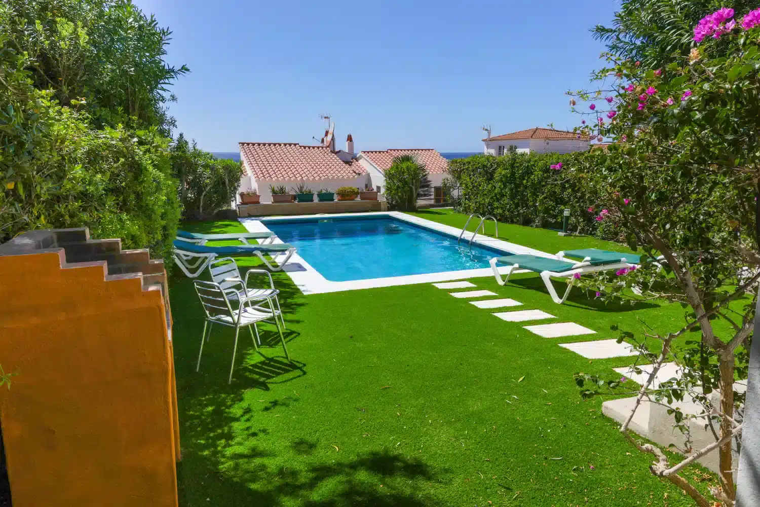 Las Villas Zodiaco son 2 villas juntas adosadas. La villa Zodiaco Acuario se encuentra en la urb. de Son bou a unos 600mts de la playa del mismo nombre. Consta de 3 dormitorios dobles con capacidad máxima hasta2 personas. Tiene espacioso salón-comedor con ventanal que da acceso a la terraza con unas magníficas vistas al mar y a la puesta de sol de Menorca. La planta noble consta de salón con ventiladores de techo, WIFI gratuito para los clientes, Smart TV, bluetooth. Hermosa cocina, bien equipada, con horno eléctrico, vitrocerámica, lavaplatos, cafetera eléctrica y de capsulas, kettle, tostador y microondas, nevera con congelador. Al lado del salón hay un baño con bañera y secador de pelo. En la planta inferior están distribuidos los 3 dormitorios dobles, uno de ellos con cama de matrimonio y dos de ellos con 2 camas individuales cada uno. Todos los dormitorios disponen de aire acondicionado. Hay un baño con ducha con secador de pelo.