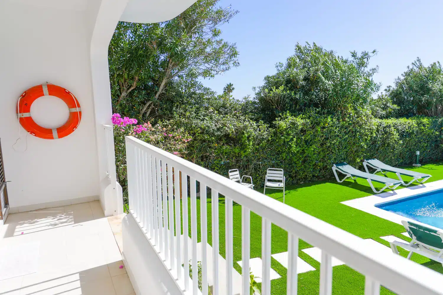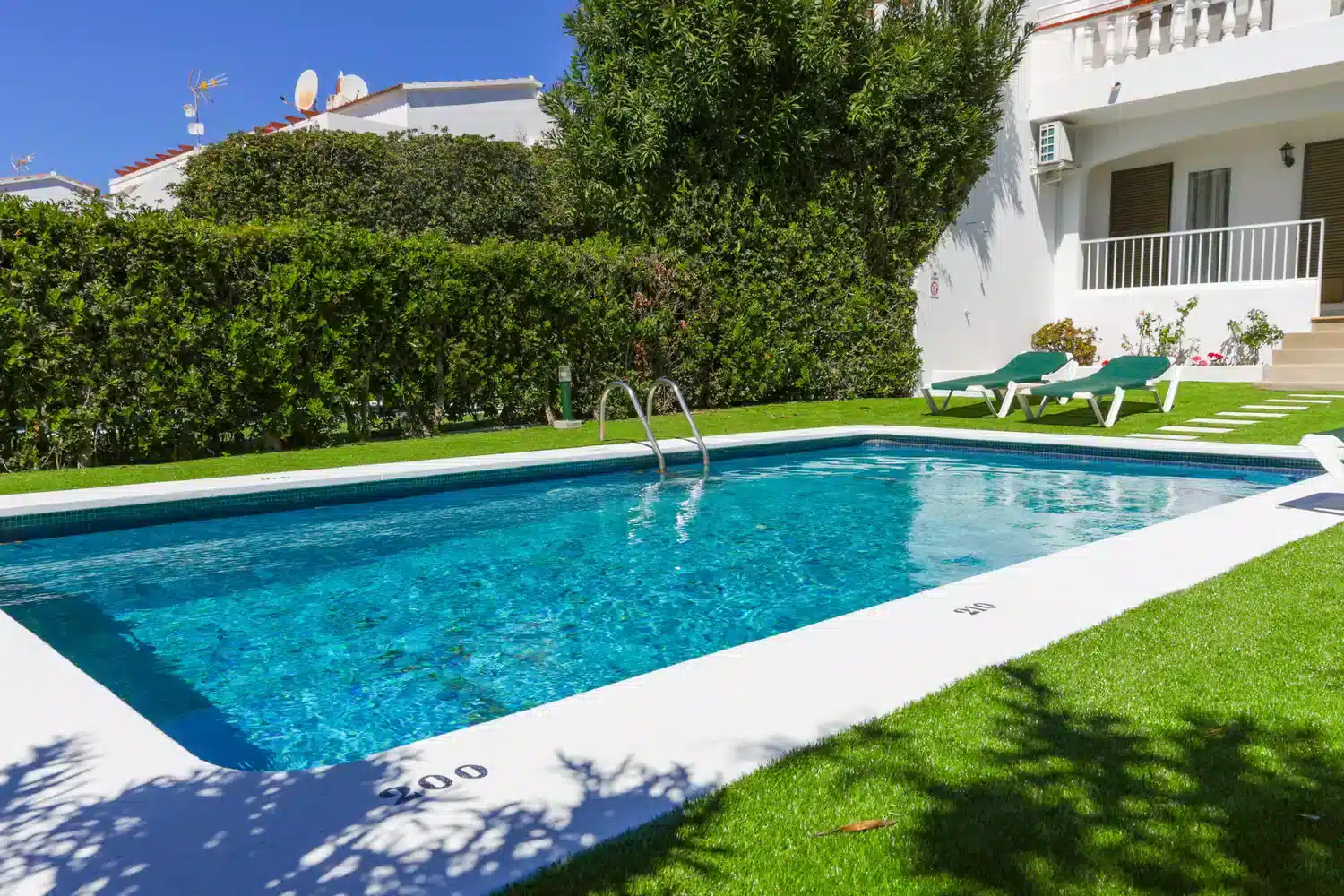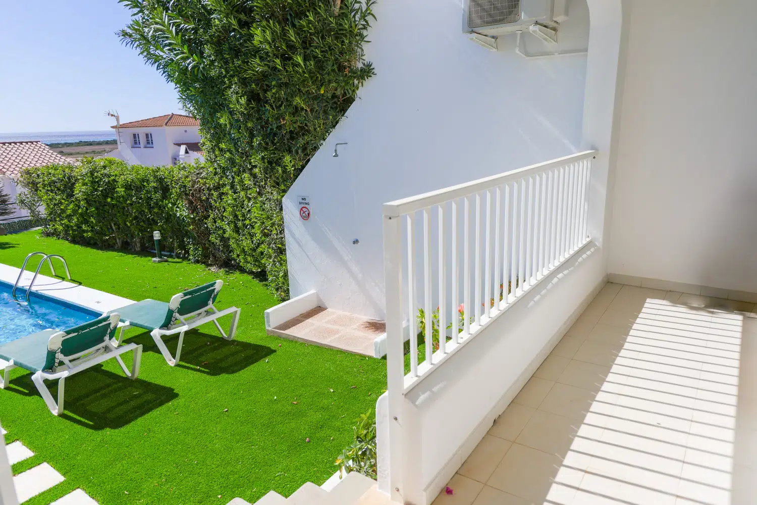 La zona exterior consta de piscina privada con un jardín privado muy bien cuidado y barbacoa de obra. En la parte exterior debajo de la escalera esta la lavadora.