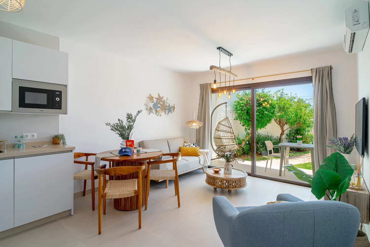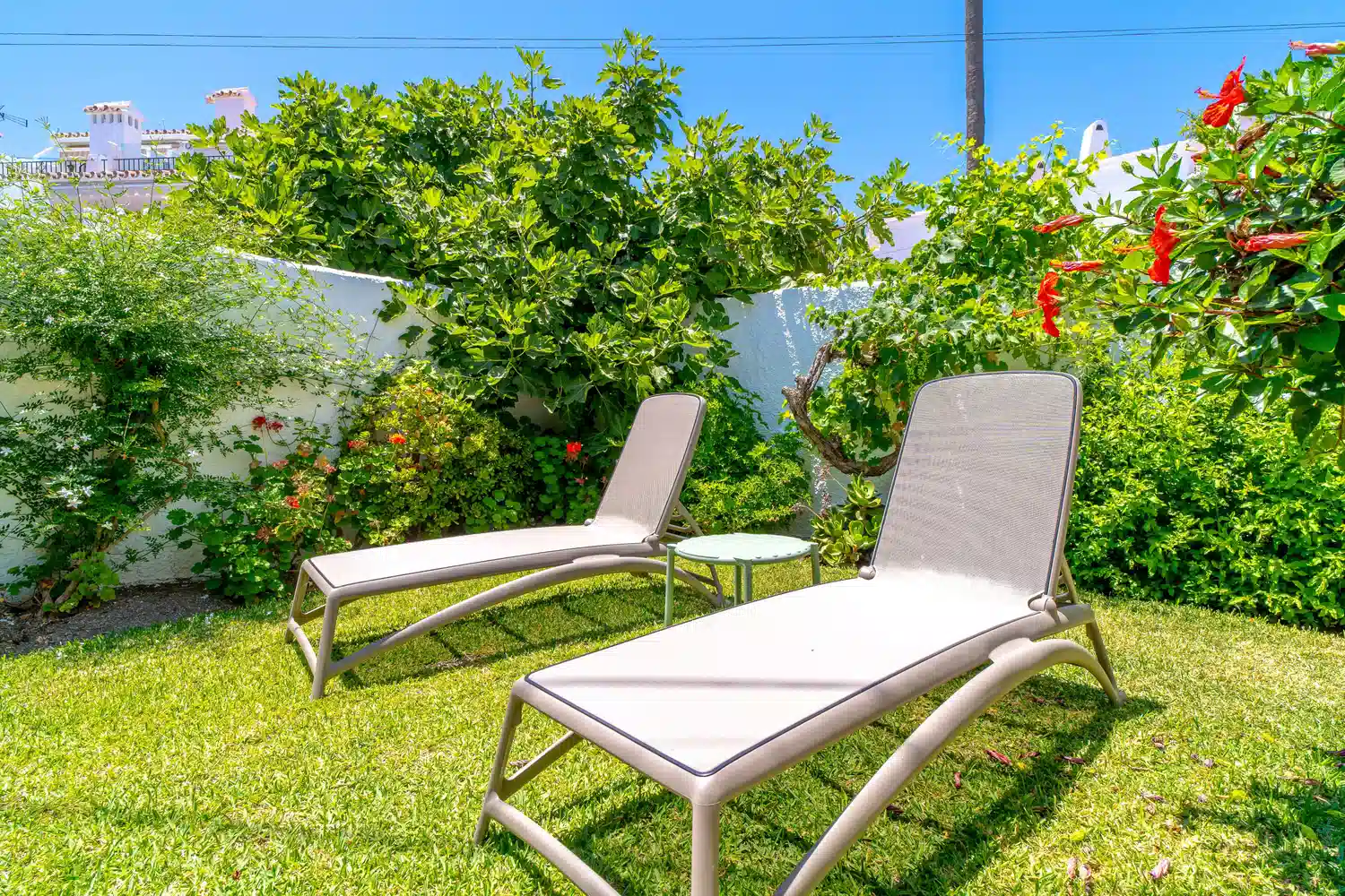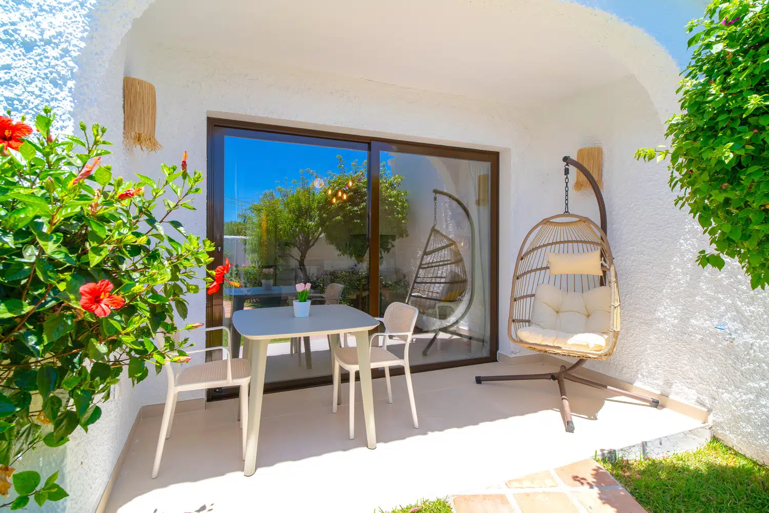 El corazón de este apartamento es su impresionante jardín privado de 40 metros cuadrados, orientado al suroeste. Aquí, podrás disfrutar del sol en cómodas tumbonas, relajarte en un sillón colgante o disfrutar de comidas y bebidas al aire libre en una elegante mesa de exterior. Este espacio es perfecto para relajarse y disfrutar del clima mediterráneo en total privacidad.