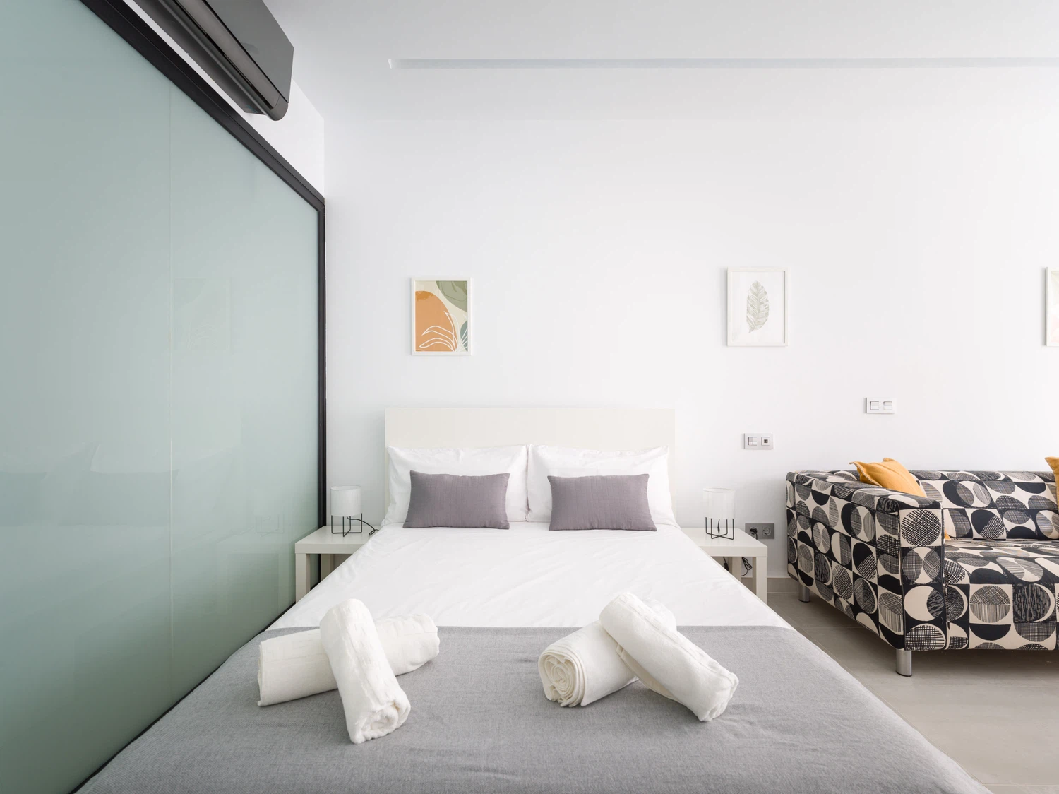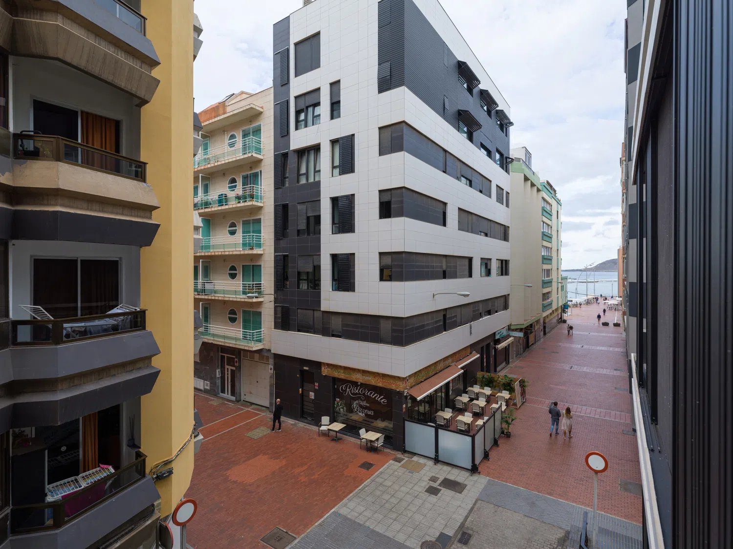 Amplio y moderno estudio (35 m²) con vista lateral al mar, a pocos metros de Playa Chica, parte encantadora de la Playa de Las Canteras. Tiene capacidad para un máximo de 2 personas.