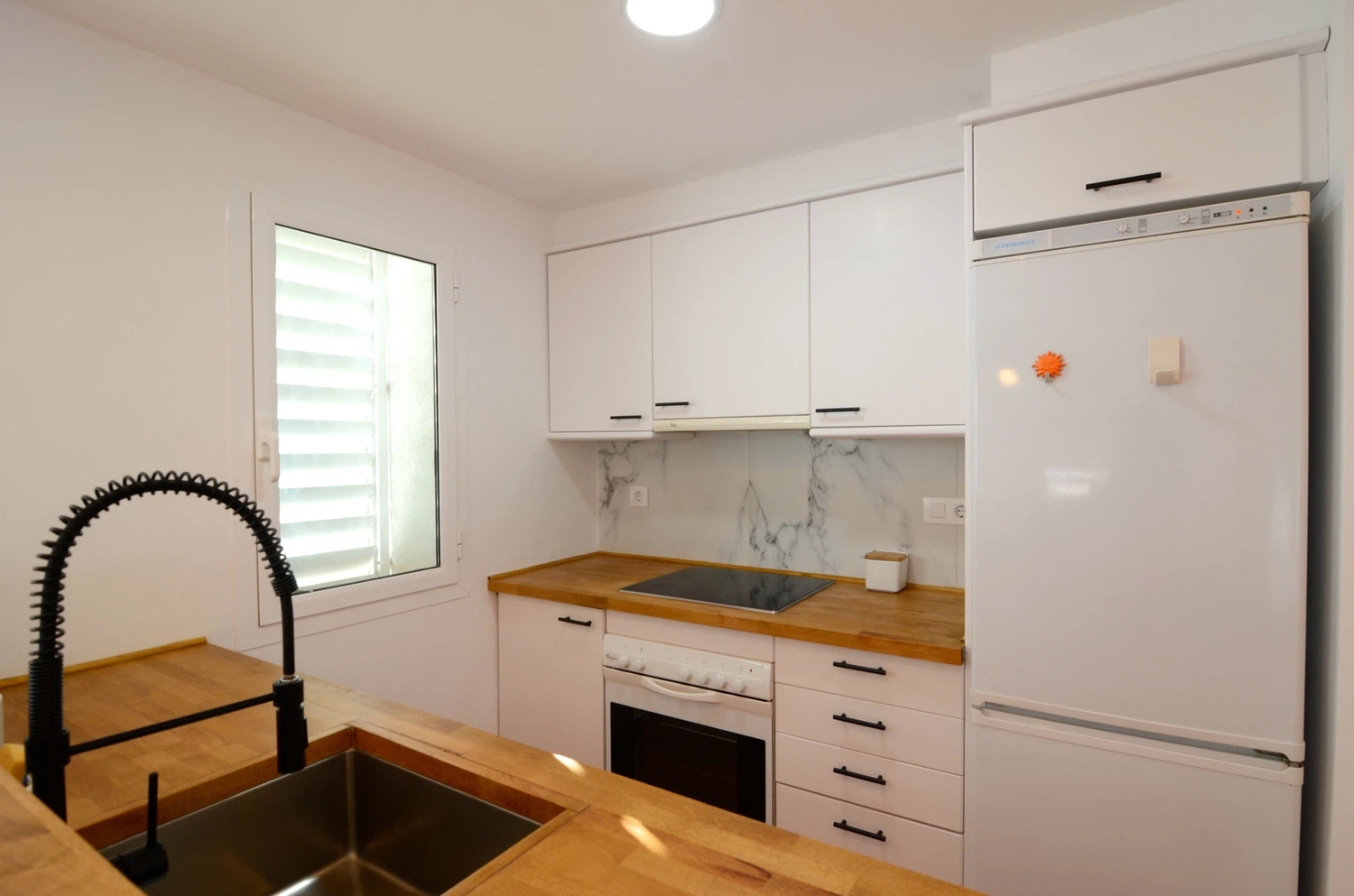 La cocina americana, de vitrocerámica, está equipada con nevera, microondas, horno, congelador, lavadora, lavavajillas, vajilla/cubertería, utensilios/cocina, cafetera y tostadora.