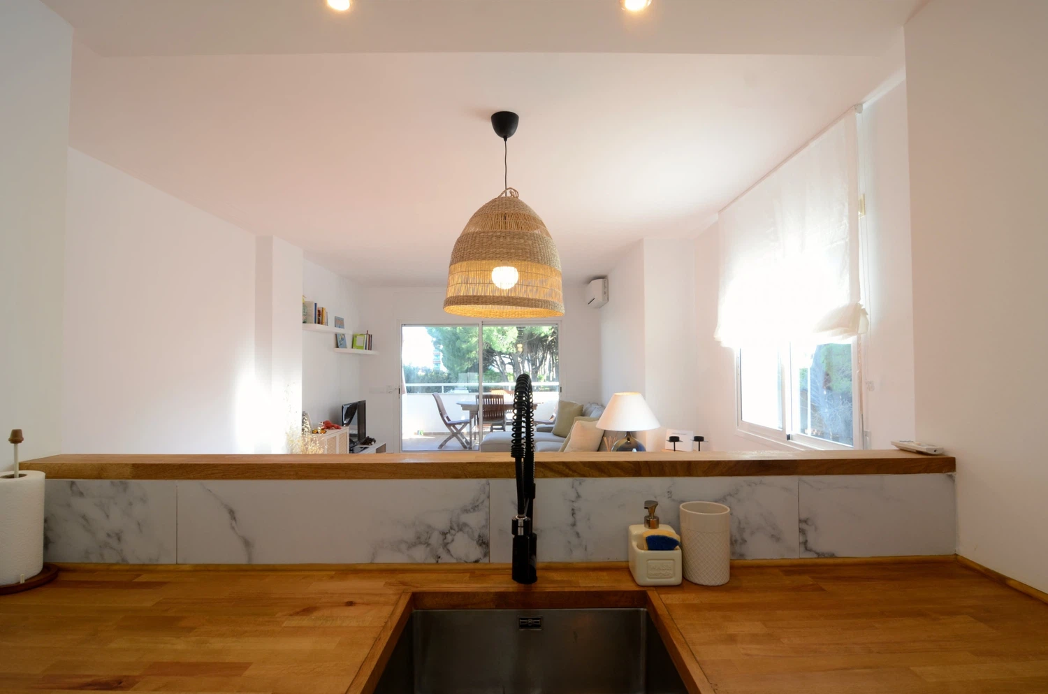 Alojamiento de 70 m² amueblado con gusto y muebles nuevos, con vistas al jardín y a la piscina.