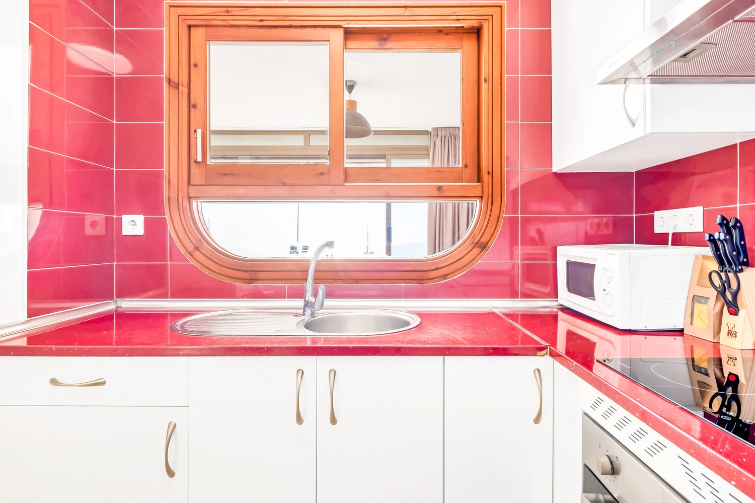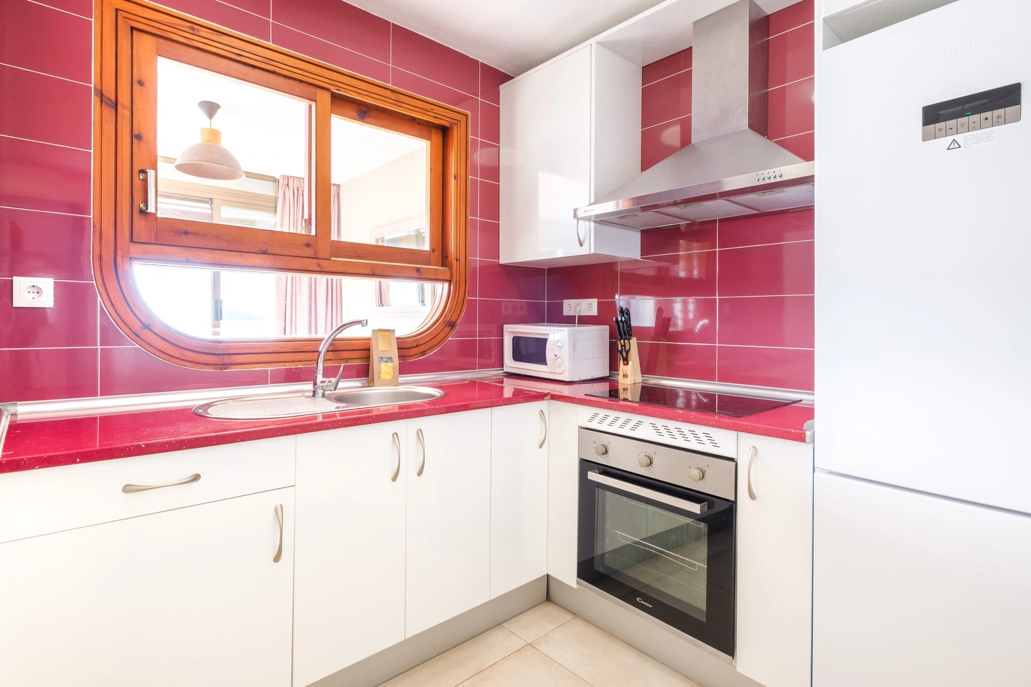 La cocina independiente de vitrocerámica, está equipada con nevera, lavadora, microondas, horno, congelador, vajilla/cubertería, utensilios/cocina, cafetera, tostadora, hervidor de agua y exprimidor.