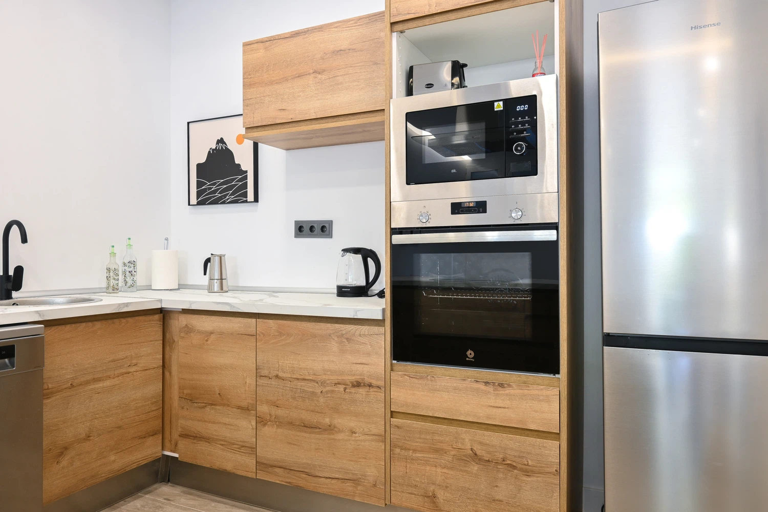 La cocina americana, recién reformada, está totalmente equipada con modernos electrodomésticos y utensilios de cocina, permitiéndote preparar tus comidas favoritas durante tu estancia. La entrada independiente del apartamento ofrece una mayor privacidad y comodidad, permitiéndote entrar y salir a tu conveniencia. Ubicado en el tranquilo y bien comunicado barrio de Hortaleza, tendrás fácil acceso a tiendas locales, restaurantes y transporte público, lo que te permitirá explorar Madrid con facilidad.