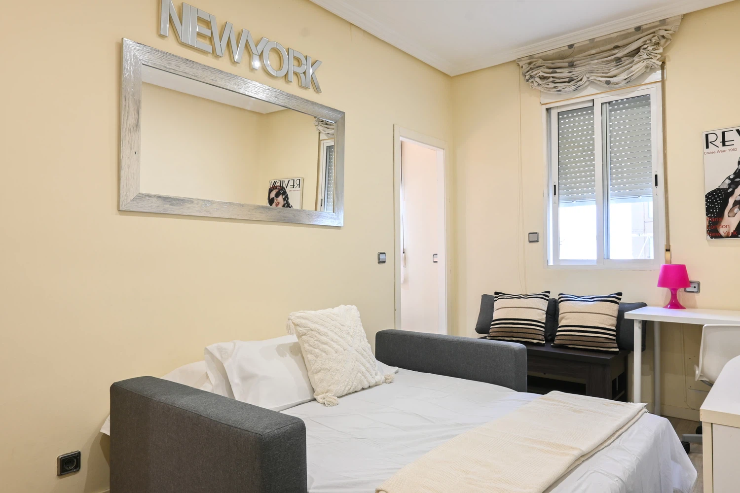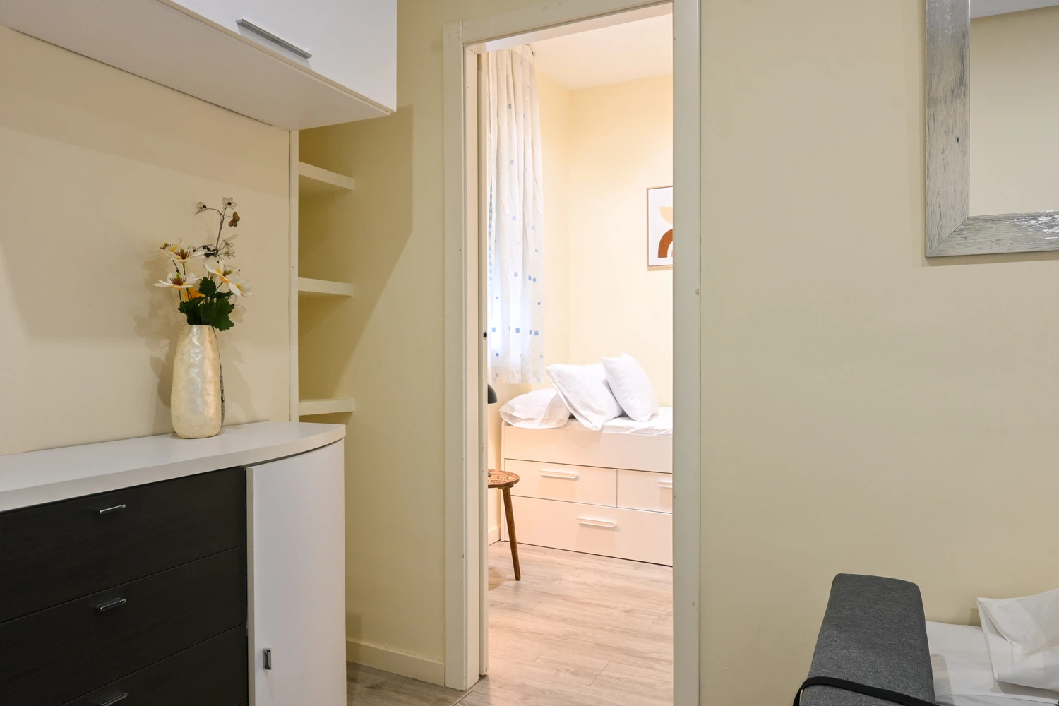 Al entrar en el piso, te sorprenderá la decoración y estilo. La cocina independiente crea un ambiente ideal para cocinar. El salón, amueblado con un cómodo sofá cama y un escritorio de trabajo, te ofrece un espacio perfecto para relajarte, trabajar o estudiar.