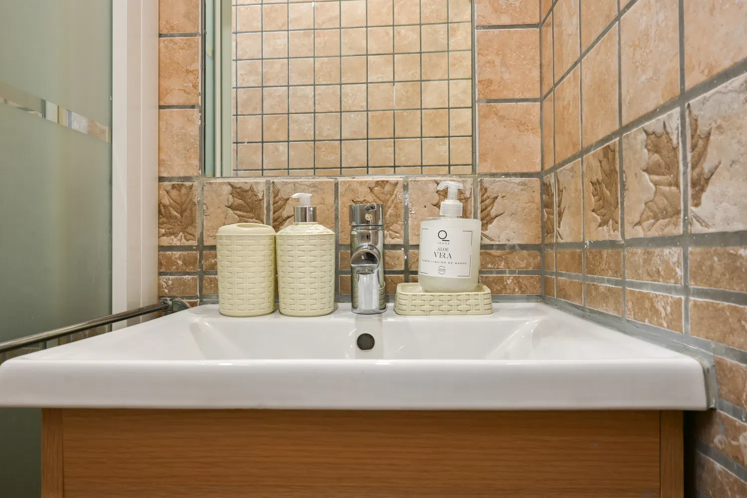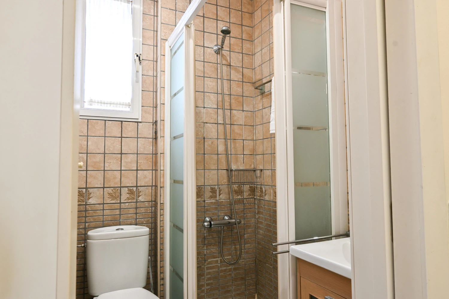 El baño completo, equipado con plato de ducha, te ofrece todo lo necesario para tu higiene personal.