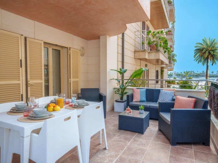 Port d'Alcúdia: Casa de apartamentos "Maritimo", muy amplio, bonito, confortable. En el centro de Port d'Alcúdia, lugar soleado, en el corazón de la ciudad, a 3 km de un bosque, a 50 m del mar, a, de la playa, cruzando la calle. Privado: terraza, muebles de jardín. En el inmueble: acceso a internet, Wifi, ascensor, aire acondicionado, lavadora. Parking público, posibilidad de aparcamiento en la calle. Tienda 10 m, supermercado 70 m, restaurante 10 m, bar 5 m, panadería 150 m, zona peatonal 50 m, alquiler de bicicletas 200 m, bar al aire libre 5 m, a 1 minutos del centro andando, parada autobús 250 m, playa de arena 50 m, playa rocosa 2 km. Puerto deportivo 150 m, puerto para yates, campo de golf (18 hoyos) 4 km. A tener en cuenta: adecuado para familias, adecuado para la tercera edad. Vivienda adecuada para 6 adultos. El propietario no acepta grupos de adolescentes/jóvenes. Vecindario muy sensible a ruidos. Se ruega respetar la tranquilidad y normas de buen comportamiento.