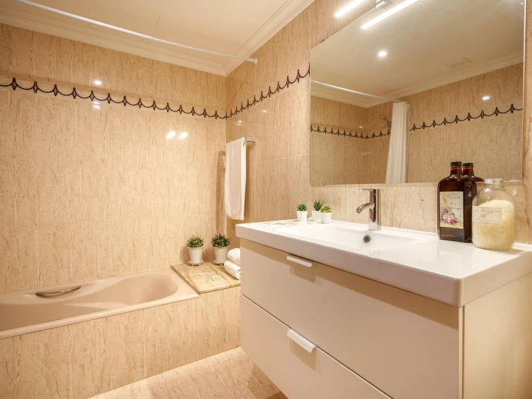 "Maritimo", apartamento de 4 estancias 160 m2 en el 1° piso. Vivienda adecuada para 6 adultos. Espacioso y luminoso, con mobiliario muy moderno y de buen gusto: salón-comedor grande con puerta corredera, ventanal con mesa de comedor, TV, pantalla plana, aire acondicionado y bomba de calor, caliente. Salida al balcón, a la terraza. 1 dorm. doble, grande con puerta corredera, ventanal con 1 cama de matrimonio, baño/ducha/WC, aire acondicionado y bomba de calor, caliente. Salida a la terraza. 2 dorm. dobles con ventanal, cada habitación con 2 camas (90 cm), aire acondicionado y bomba de calor, caliente. Cocina-comedor (horno, lavavajillas, 3 placas de vitrocerámica, tostadora, hervidor de agua eléctrico, microondas, congelador, cafetera eléctrica) con mesa de comedor, aire acondicionado y bomba de calor, caliente. Salida a la terraza. Baño/ducha/WC. Terraza grande 30 m2, terraza grande 55 m2, cenador. Muebles de terraza, muebles de balcón, tumbonas (2). Vista al mar y a la localidad. El alojamiento dispone de: lavadora, plancha, secador de pelo. Internet (Wifi, gratis). Adecuado para familias. ETVPL13576 // Reg. Nr.: ESFCTU0000070430002101880000000000000000ETVPL/135968