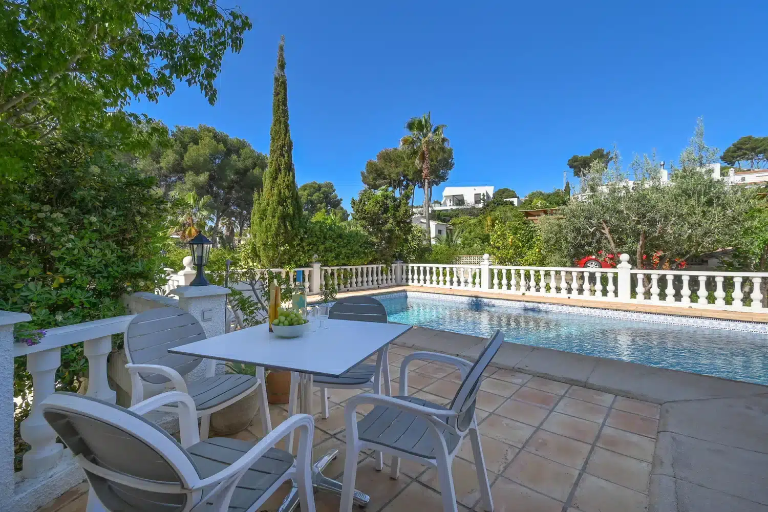 En las inmediaciones se encuentra el popular Bar Premium. El centro de Moraira y el supermercado "Pepe la Sal" están a aproximadamente un kilómetro de distancia. La fina playa de arena "Platja del Ampolla" se encuentra a unos dos kilómetros, y el campo de golf "Golf de Ifach" se puede alcanzar en pocos minutos en coche. También se pueden realizar excursiones a los parques de atracciones Terra Mítica y Aqualandia, que están a unos 35 kilómetros de distancia. Los aeropuertos de Alicante y Valencia están a 90 y 120 kilómetros, respectivamente.