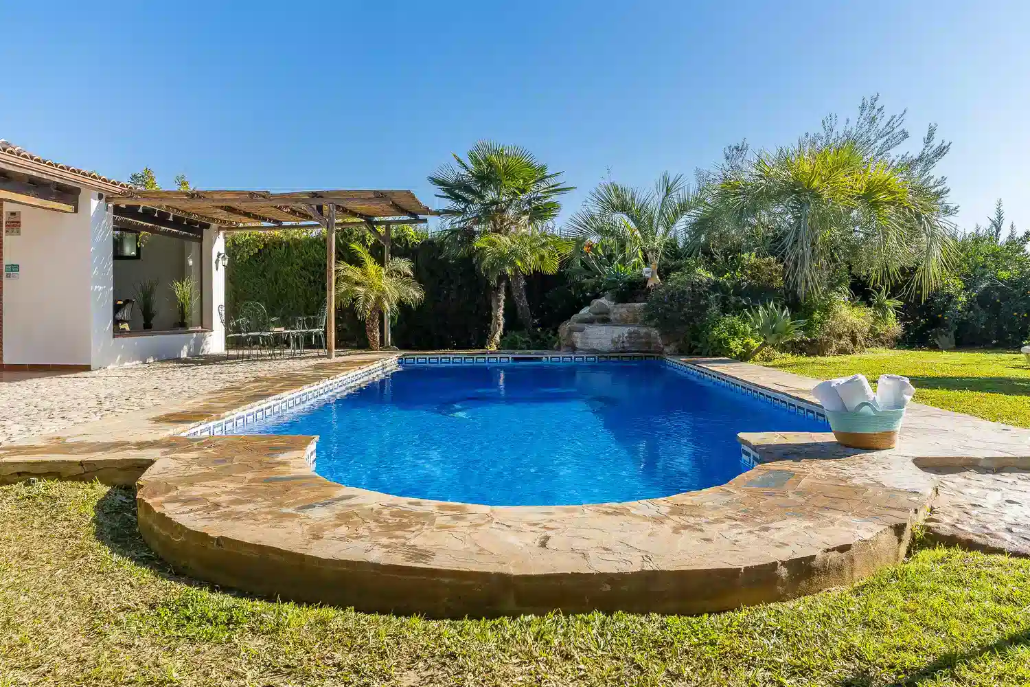 Disfruta de una escapada perfecta en esta elegante villa de 4 dormitorios, con capacidad para hasta 10 personas, situada en la tranquila y rural localidad de Alhaurín el Grande. Esta villa de 160 m² ofrece amplios espacios y vistas a la montaña y al jardín, ideal para quienes buscan comodidad y privacidad y también dispone de sistema de seguridad con alarma y cámara integrada.
